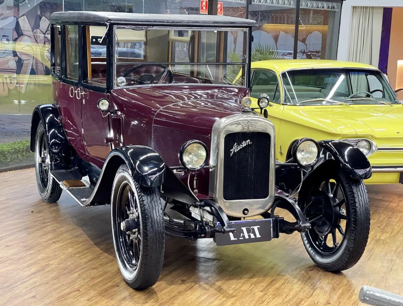 Automóvel britânico fabricado pela Austin a partir de 1927. Motor 4 cilindros em linha (original) e 36 HP. Caixa de câmbio (original) de 4 velocidades manual. Volante de direção na mão inglesa, todo original como saiu de fábrica e placa preta. Modelo exclusivo Red Salon com acabamento do interior em homenagem ao salão vermelho do castelo de Windsor na Inglaterra. Suas maçanetas, grade e relógios são banhados em prata. Automóvel raro até na Inglaterra.