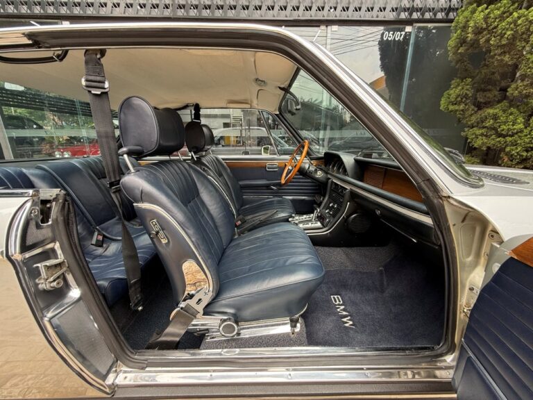 O modelo serviu de base para o lendário 3.0 CSL, que levou a BMW para as pistas e dominou o Campeonato Europeu de Turismo nos anos 70, ou seja, aqui tem DNA esportivo de verdade, e esse exemplar se destaca pelo ótimo estado geral, com interior azul bem conservado, painel em madeira e excelente originalidade.