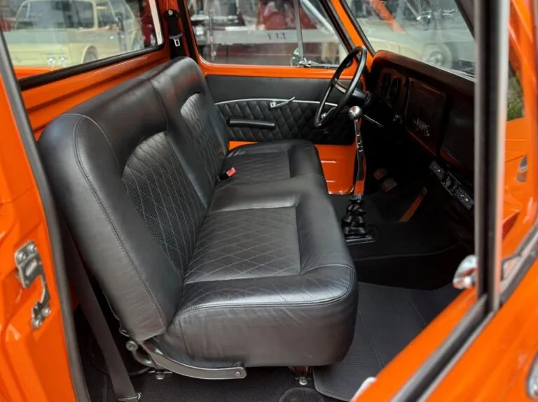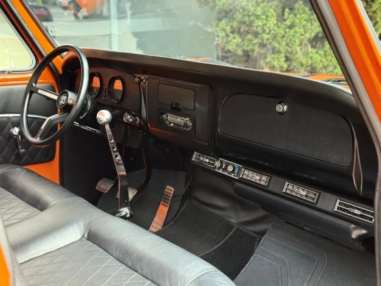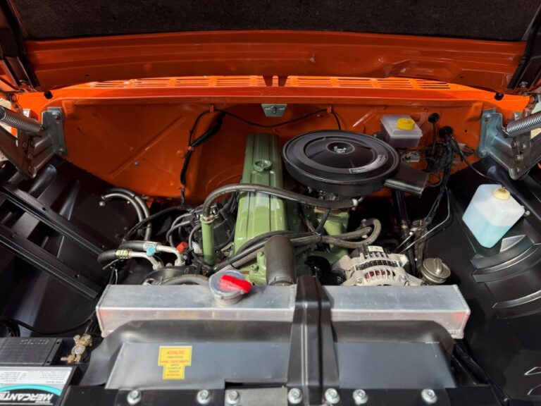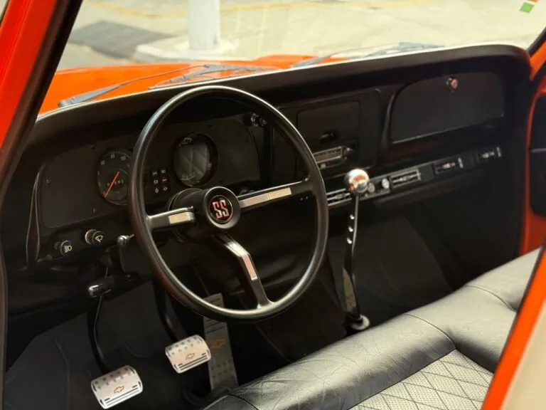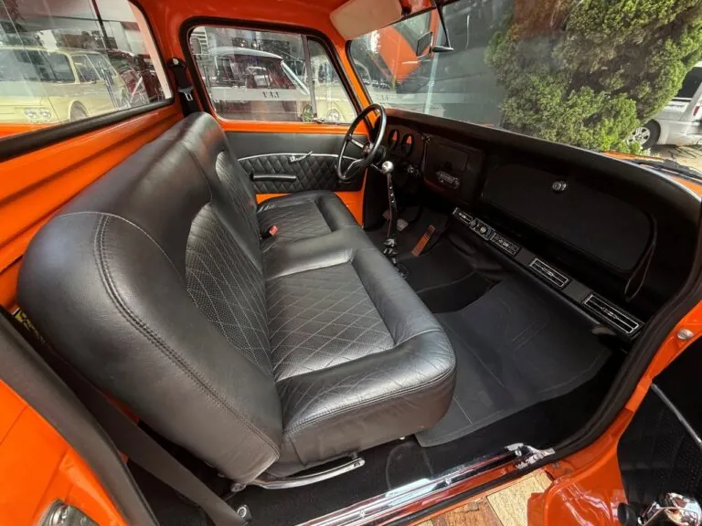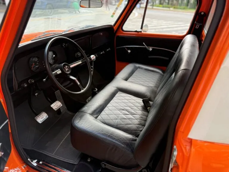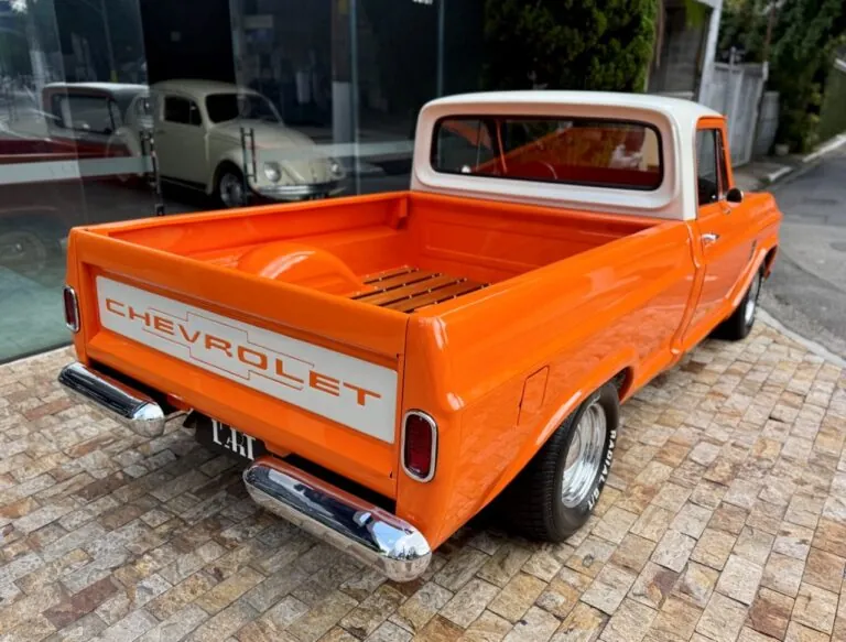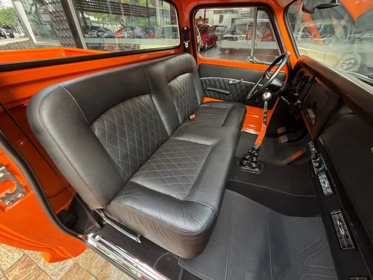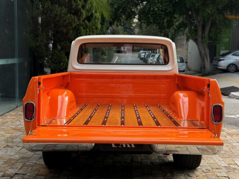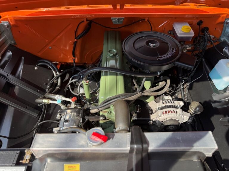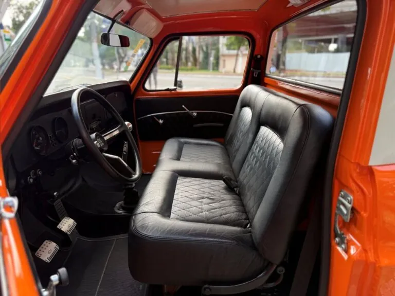 Nossa Chevrolet C10 está em excelente estado geral, com pintura impecável, caçamba de madeira muito bem executada e interior preto, tudo em um padrão realmente acima da média. É uma picape que impressiona tanto pela estética quanto pela presença. Equipada com o clássico motor 6 cilindros em linha 4.3 litros, 151 cv, e câmbio manual de 4 marchas no assoalho, esse exemplar passou por revisão mecânica completa, tem cofre muito bem apresentado e ainda conta com ar-condicionado.