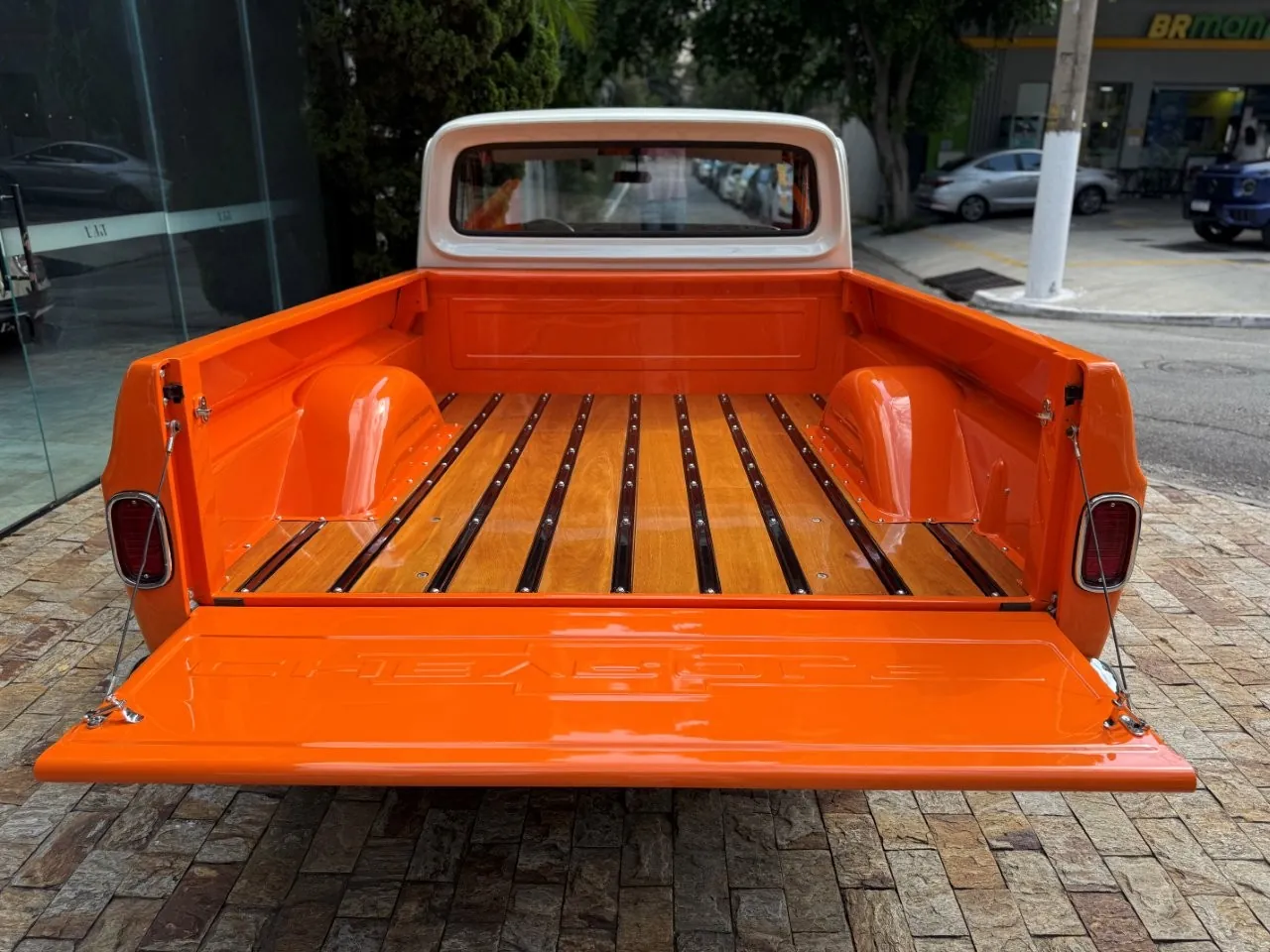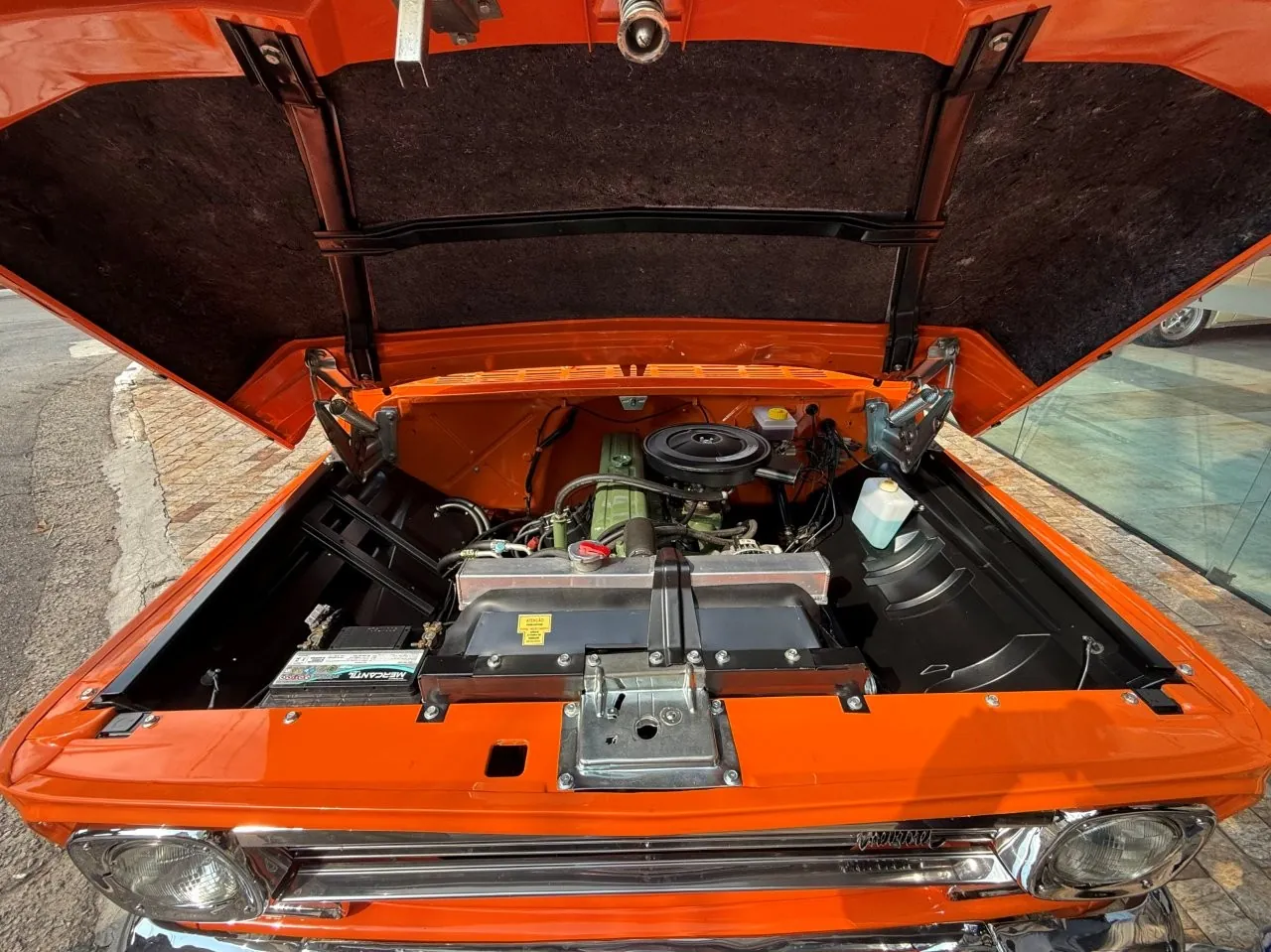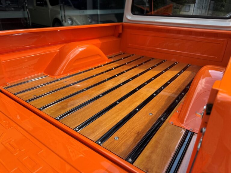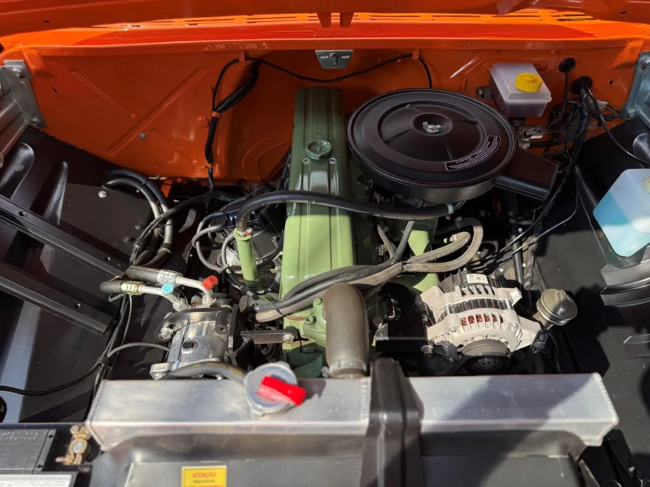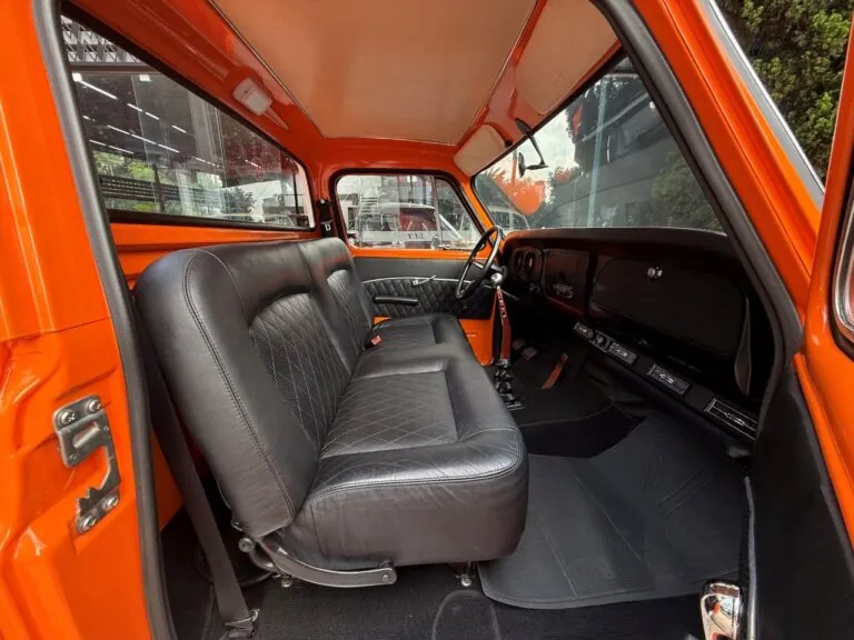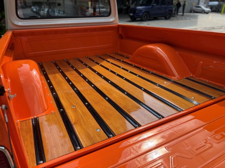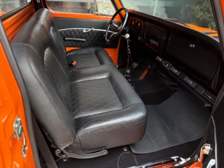 Nossa Chevrolet C10 está em excelente estado geral, com pintura impecável, caçamba de madeira muito bem executada e interior preto, tudo em um padrão realmente acima da média. É uma picape que impressiona tanto pela estética quanto pela presença. Equipada com o clássico motor 6 cilindros em linha 4.3 litros, 151 cv, e câmbio manual de 4 marchas no assoalho, esse exemplar passou por revisão mecânica completa, tem cofre muito bem apresentado e ainda conta com ar-condicionado.