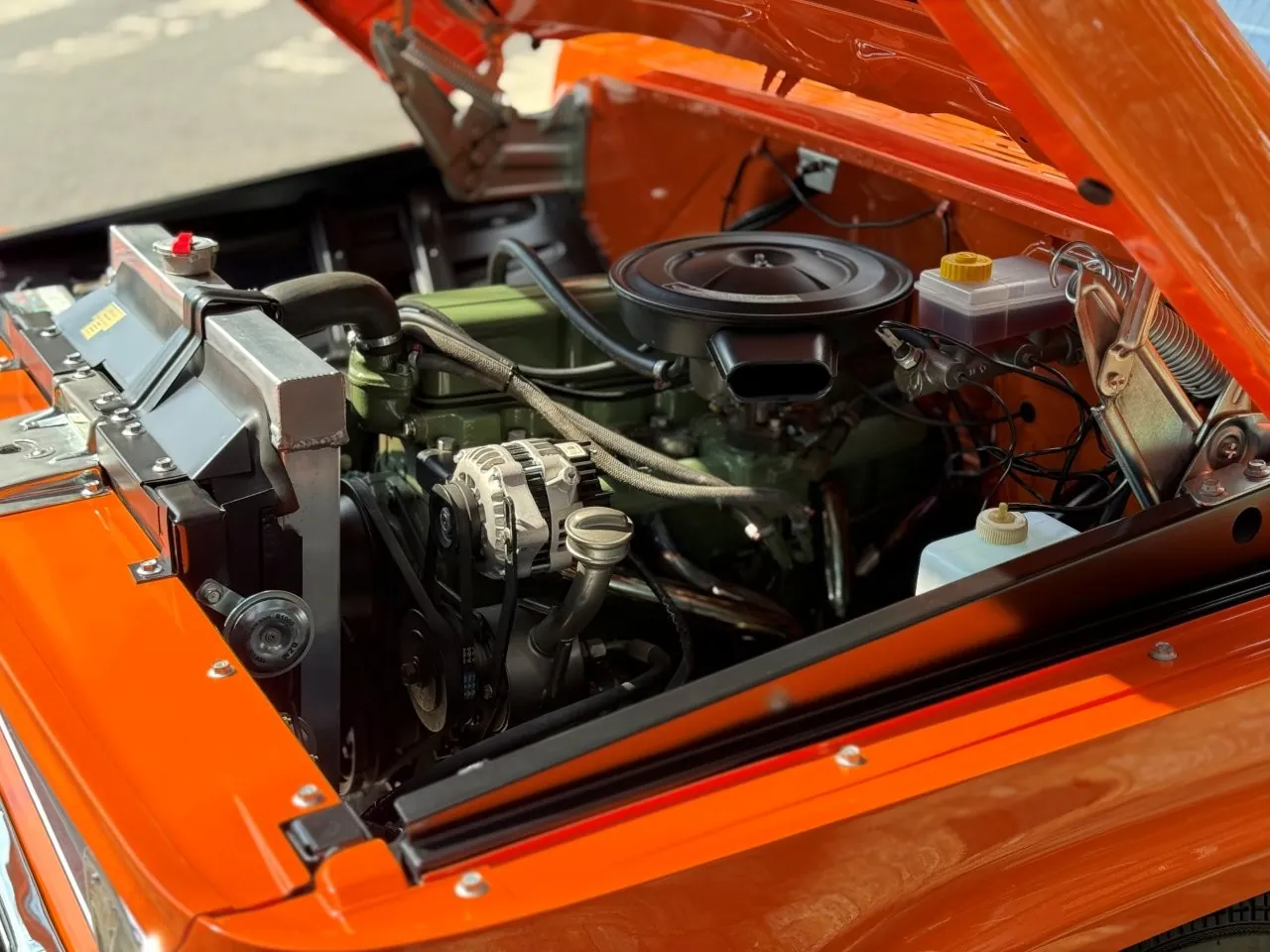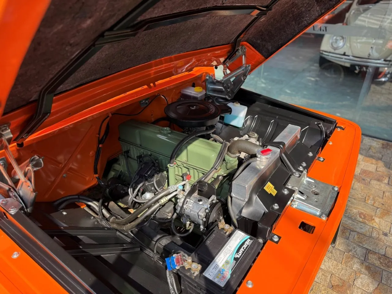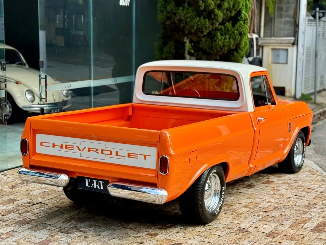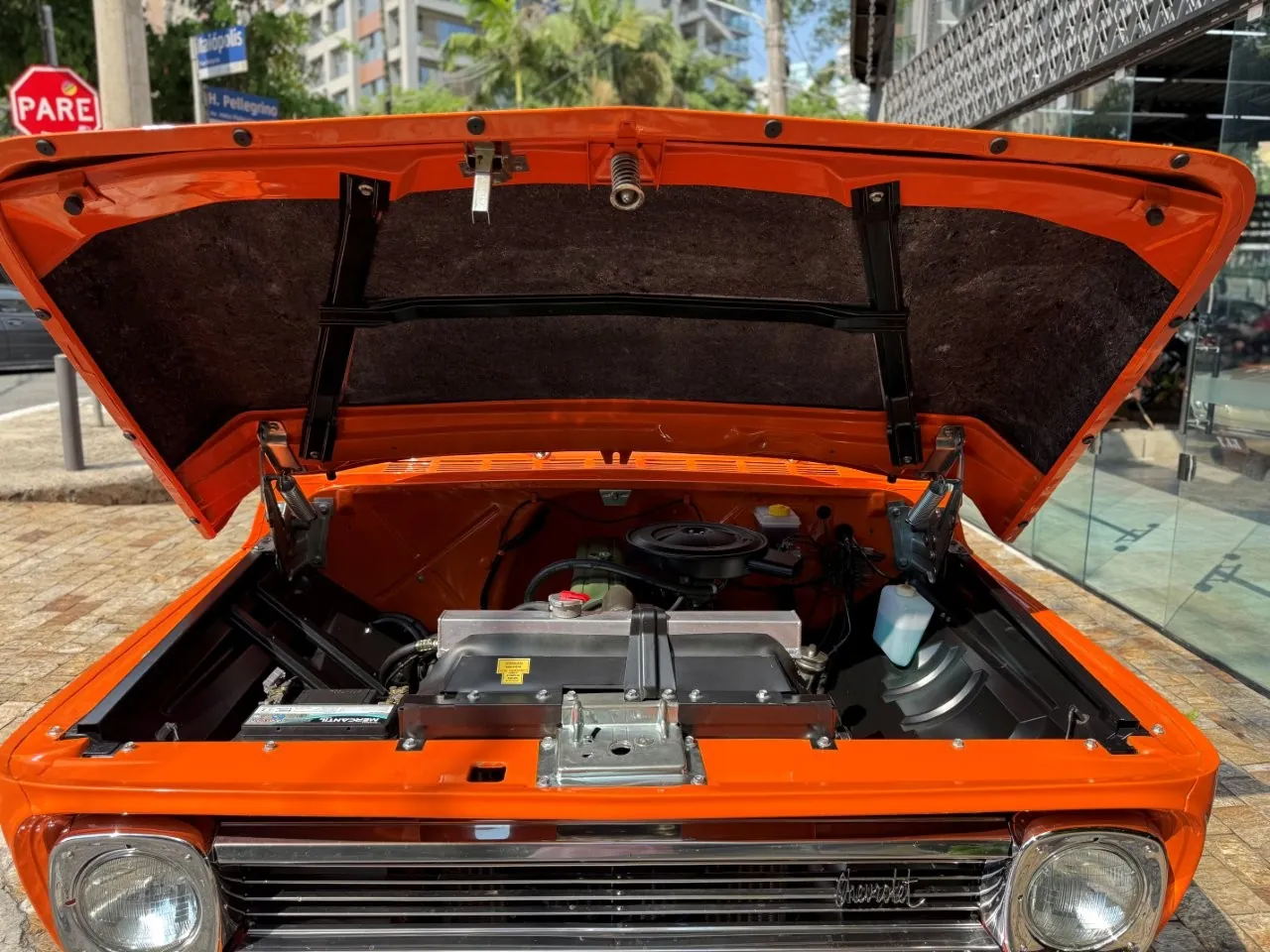 Nossa Chevrolet C10 está em excelente estado geral, com pintura impecável, caçamba de madeira muito bem executada e interior preto, tudo em um padrão realmente acima da média. É uma picape que impressiona tanto pela estética quanto pela presença. Equipada com o clássico motor 6 cilindros em linha 4.3 litros, 151 cv, e câmbio manual de 4 marchas no assoalho, esse exemplar passou por revisão mecânica completa, tem cofre muito bem apresentado e ainda conta com ar-condicionado.