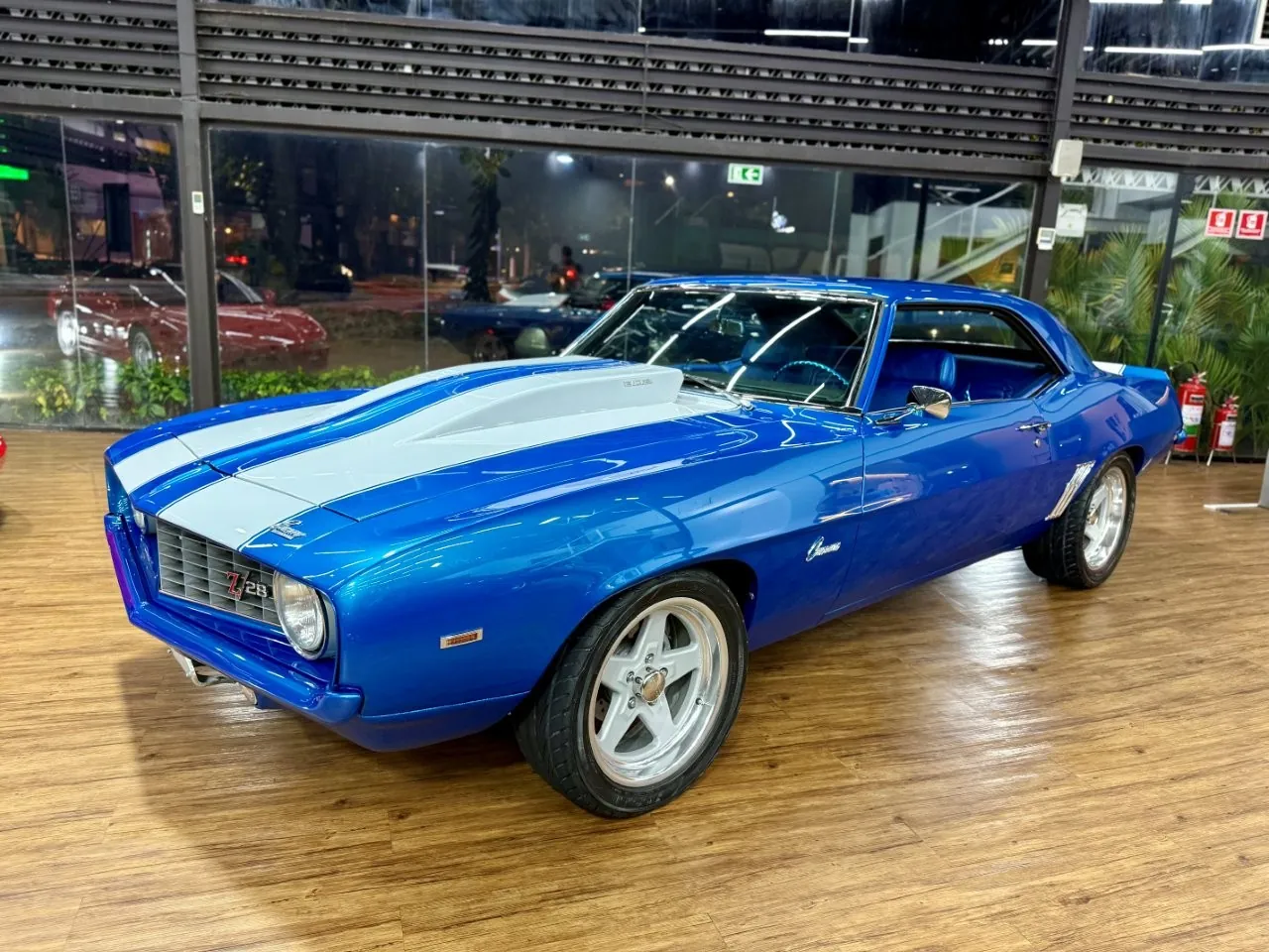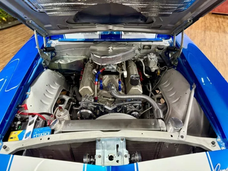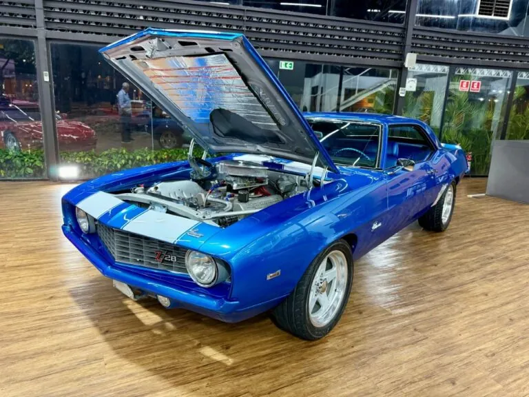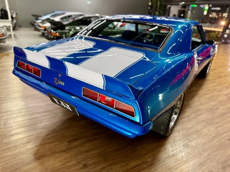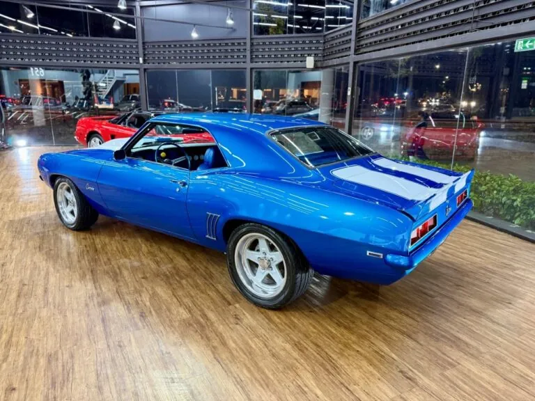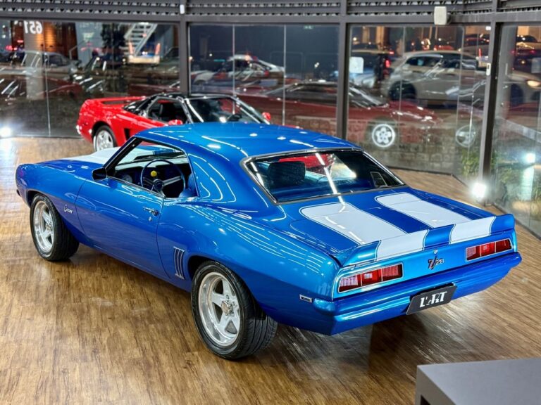 Um ícone das pistas, equipado com o raríssimo motor V8 302. O Camaro Z/28 1969 é a versão de alto desempenho da primeira geração, criado para homologação na classe Trans-Am da SCCA, onde obteve muito sucesso, com o modelo conquistando os campeonatos de 1968 e 1969. Tinha potência anunciada de 290 cv, mas na prática podia passar de 360 cv com o carburador original e mais de 400 cv com upgrades raros. Disponível apenas como coupé, vinha com câmbio manual de 4 marchas, além de suspensão reforçada para desempenho e dirigibilidade superiores. Muitos vinham com o pacote visual RS e as icônicas duas faixas de corrida. Nosso Camaro está simplesmente maravilhoso!