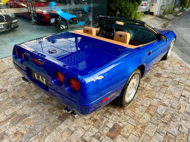 Marcando apenas 4 mil km, este Corvette impressiona pelo estado de conservação e originalidade, características raríssimas para um esportivo dessa época. Equipado com o clássico motor V8 5.7 litros, tração traseira e transmissão automática. A geração C4 trouxe avanços importantes em tecnologia e dirigibilidade, consolidando o Corvette como um dos grandes esportivos americanos de sua década. Na elegante configuração azul com interior em couro bege, este exemplar combina presença, esportividade e exclusividade. Um verdadeiro carro de coleção, especialmente pela baixíssima km e nível de originalidade. Além da capota conversível, acompanha também a capota rígida.