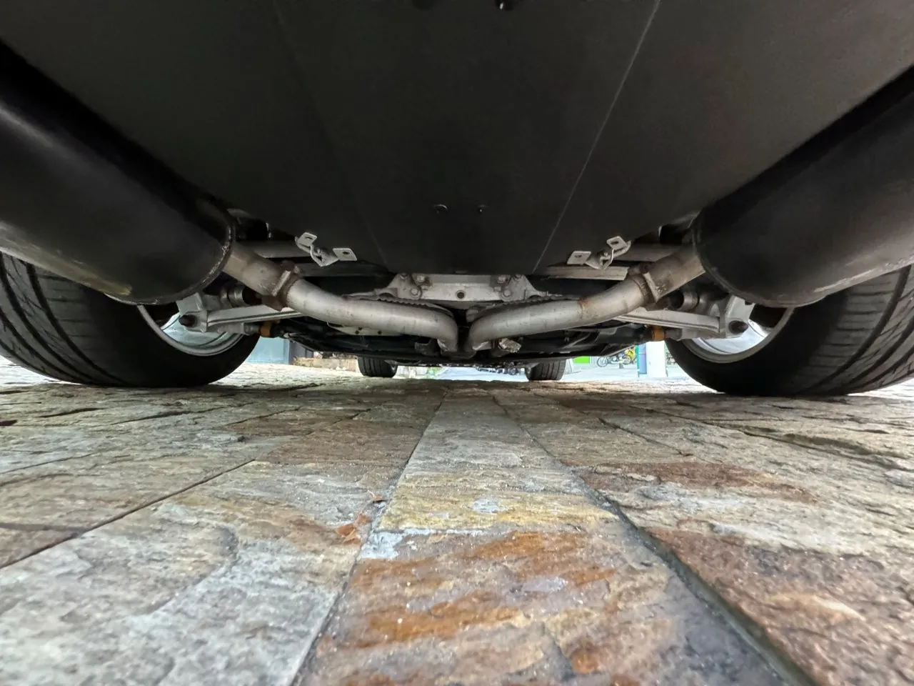 Equipada com o motor V8 5.5 litros de aproximadamente 275 cv, na elegante configuração cinza com interior em couro preto.