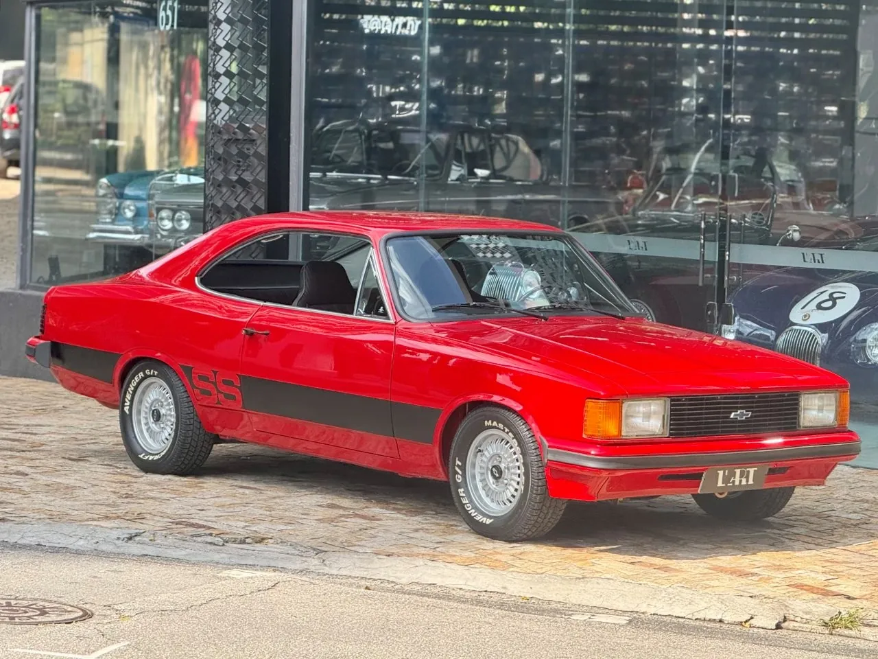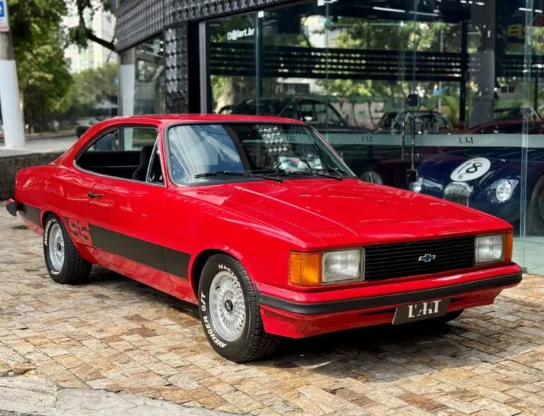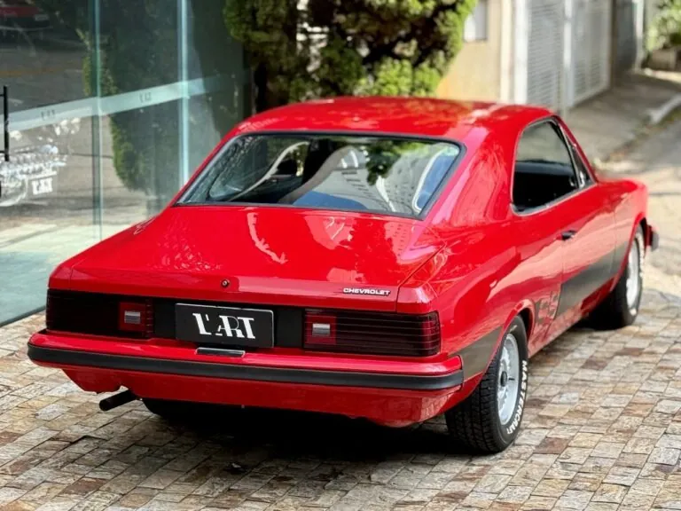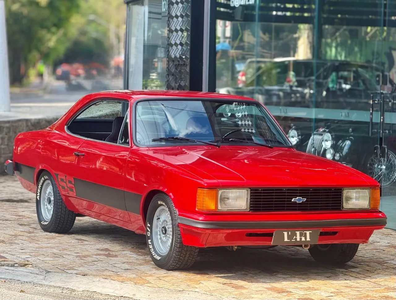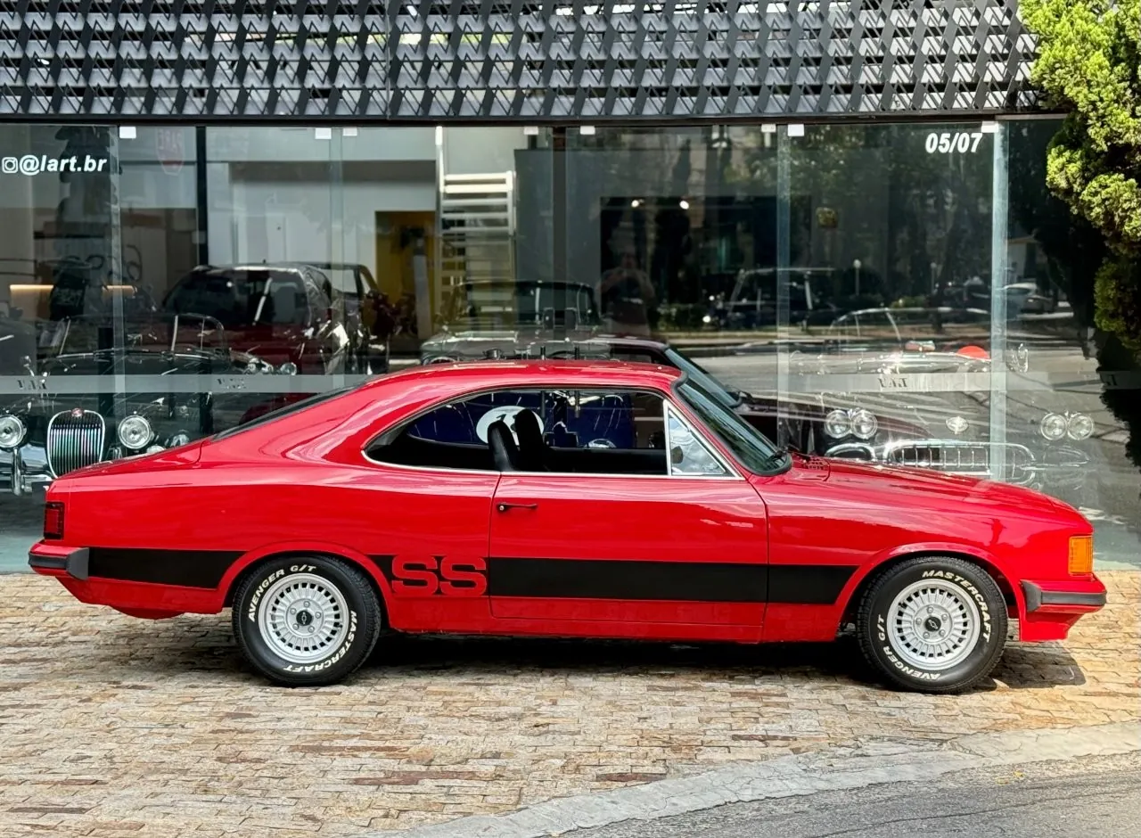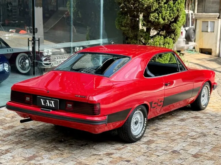 Chevrolet Opala SS na cor Vermelho Bonanza. Veículo de plaqueta 5R87E (SS4). Todo restaurado! O motor 4 cilindros foi substituído por um 6 Cilindros. Em excelente estado geral, o modelo 1980 se destaca ainda pela frente quadrada e pelas lanternas traseiras redesenhadas, características que marcaram a última fase do SS e hoje o colocam entre os Opalas mais desejados e colecionáveis do Brasil.