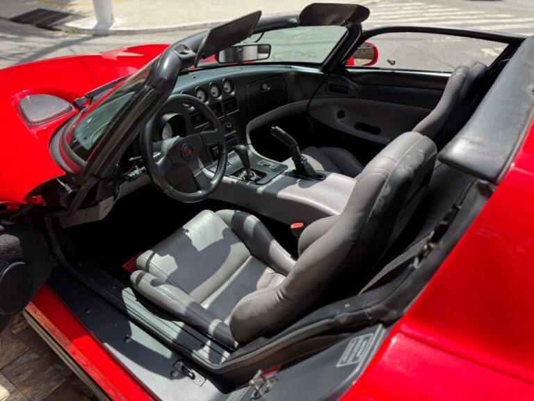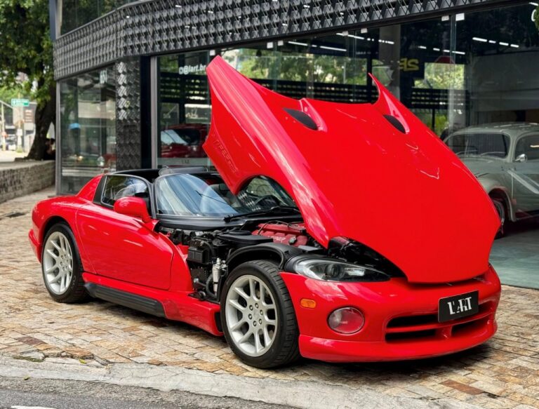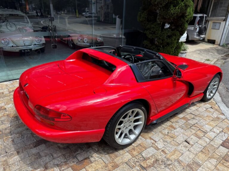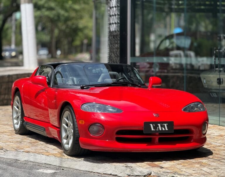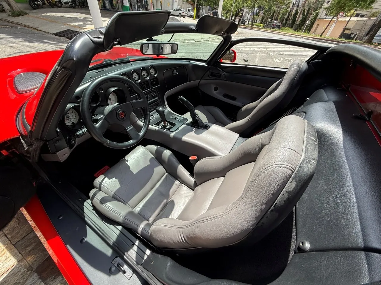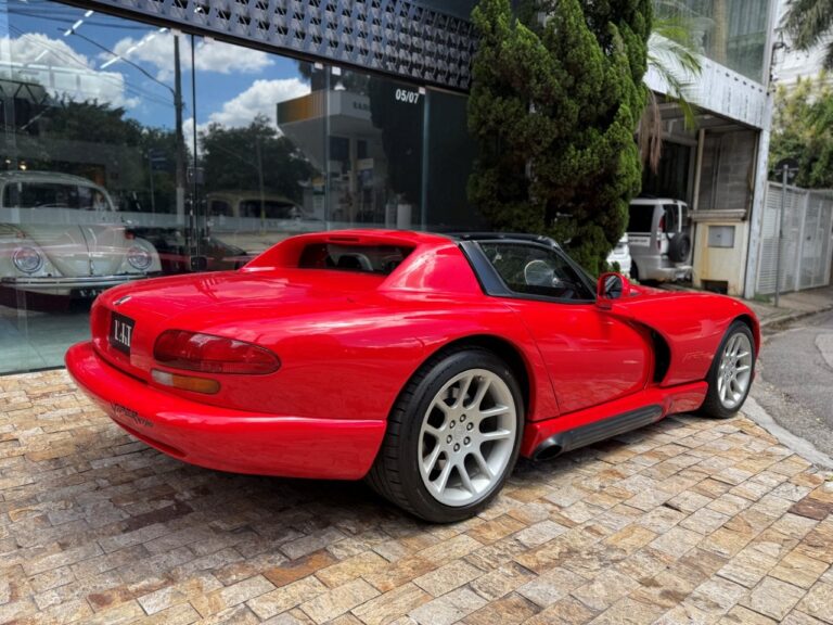 Super esportivo fabricado pela divisão Dodge da Chrysler. O Viper foi concebido para assumir o lugar do clássico americano Cobra. Uma equipe de 85 engenheiros denominada ''Equipe Viper'' foi escolhida para desenvolver o Dodge Viper, em janeiro de 1992 iniciou a venda do primeiro RT 10 roadster. A peça central era seu poderoso motor V10 de 8.0 litros, 406 HP com tração traseira e câmbio manual de 6 velocidades. Seu 63 kgfm de torque assustam pela excelente força e brutalidade nas acelerações. Suspensão dianteira e traseira independentes e freios a disco ventilados nas 4 rodas. Nosso Dodge Viper está em excelente estado geral e com apenas 24 mil milhas.