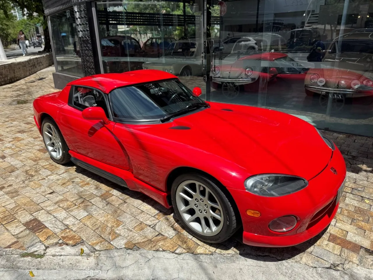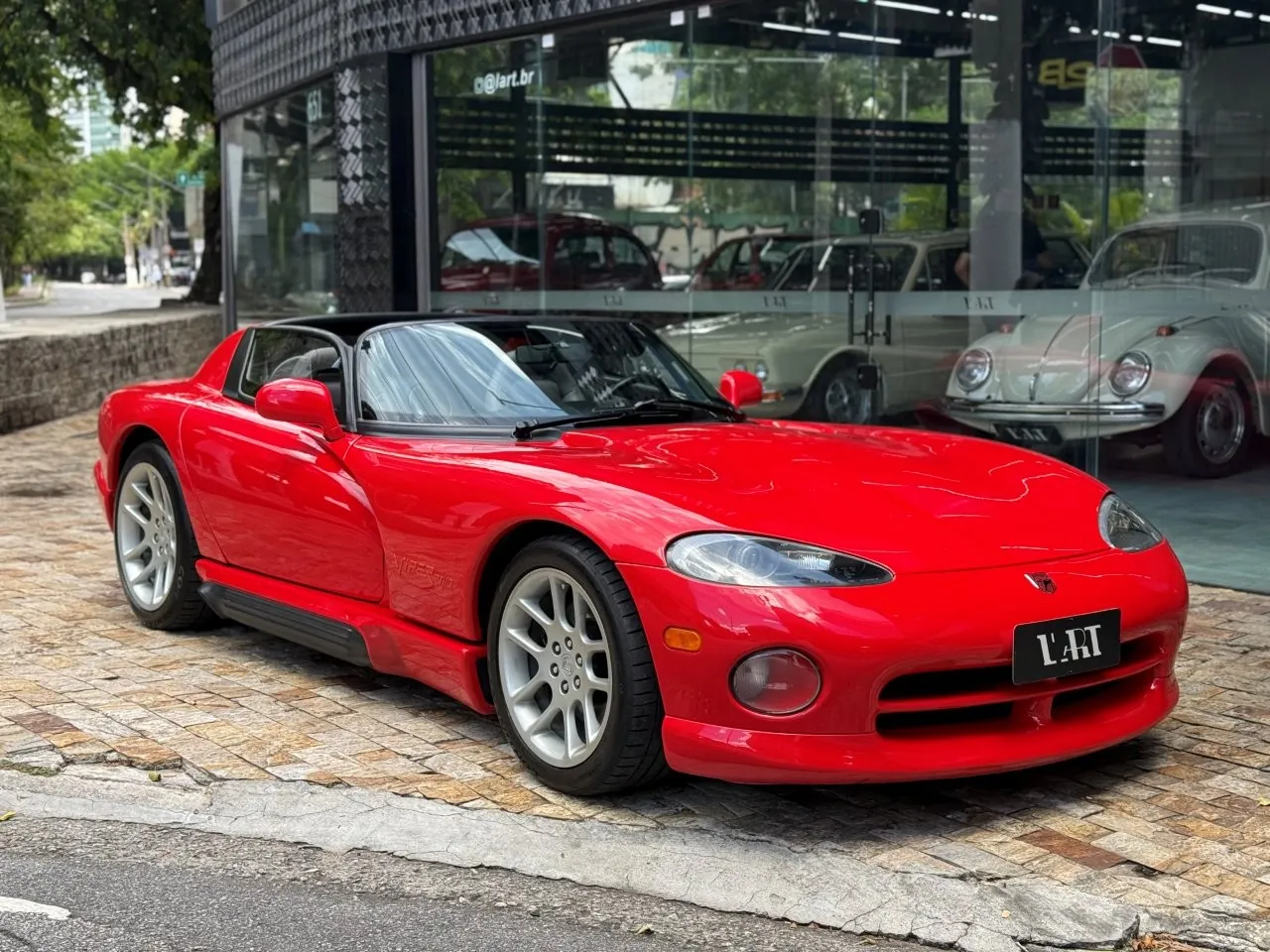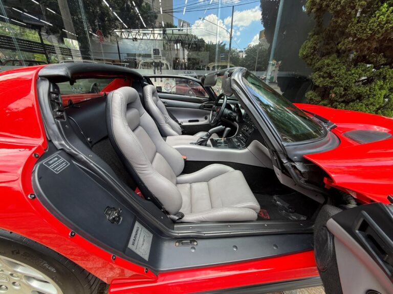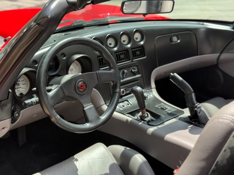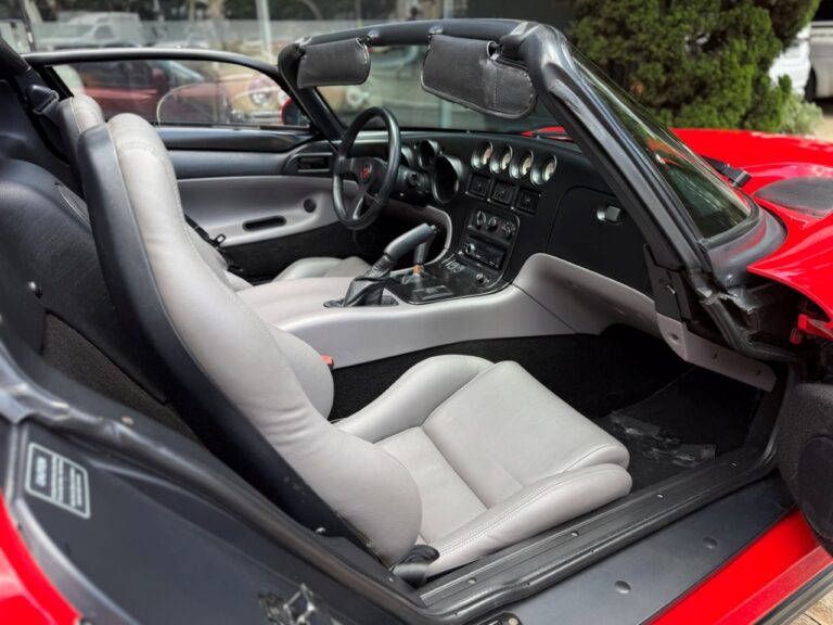 Super esportivo fabricado pela divisão Dodge da Chrysler. O Viper foi concebido para assumir o lugar do clássico americano Cobra. Uma equipe de 85 engenheiros denominada ''Equipe Viper'' foi escolhida para desenvolver o Dodge Viper, em janeiro de 1992 iniciou a venda do primeiro RT 10 roadster. A peça central era seu poderoso motor V10 de 8.0 litros, 406 HP com tração traseira e câmbio manual de 6 velocidades. Seu 63 kgfm de torque assustam pela excelente força e brutalidade nas acelerações. Suspensão dianteira e traseira independentes e freios a disco ventilados nas 4 rodas. Nosso Dodge Viper está em excelente estado geral e com apenas 24 mil milhas.
