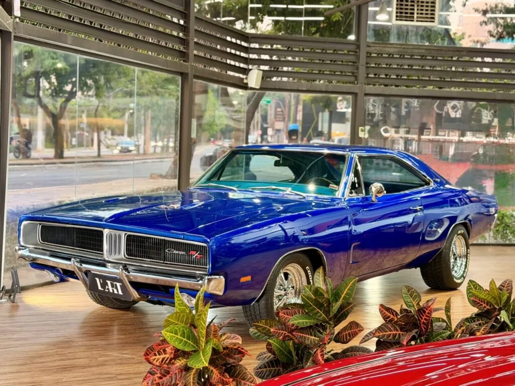 Esse é um R/T de plaqueta. Ícone absoluto dos muscle cars americanos, esse Charger R/T impressiona em cada detalhe. Na clássica cor B7 Blue, com interior em vinil azul, traz uma combinação elegante. Equipado com motor 440 V8 de plaqueta. Conta ainda com câmbio manual A833 original Dodge, além de upgrades que elevam a dirigibilidade, como suspensão com coilover e reforço estrutural. Rodas Cragar e pneus Cooper Cobra completam o visual perfeito de época.