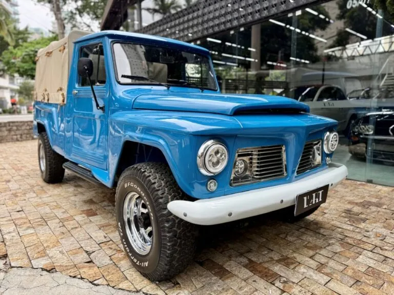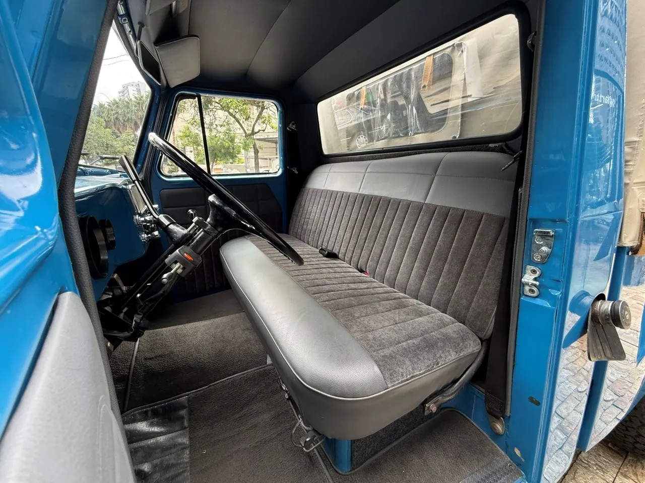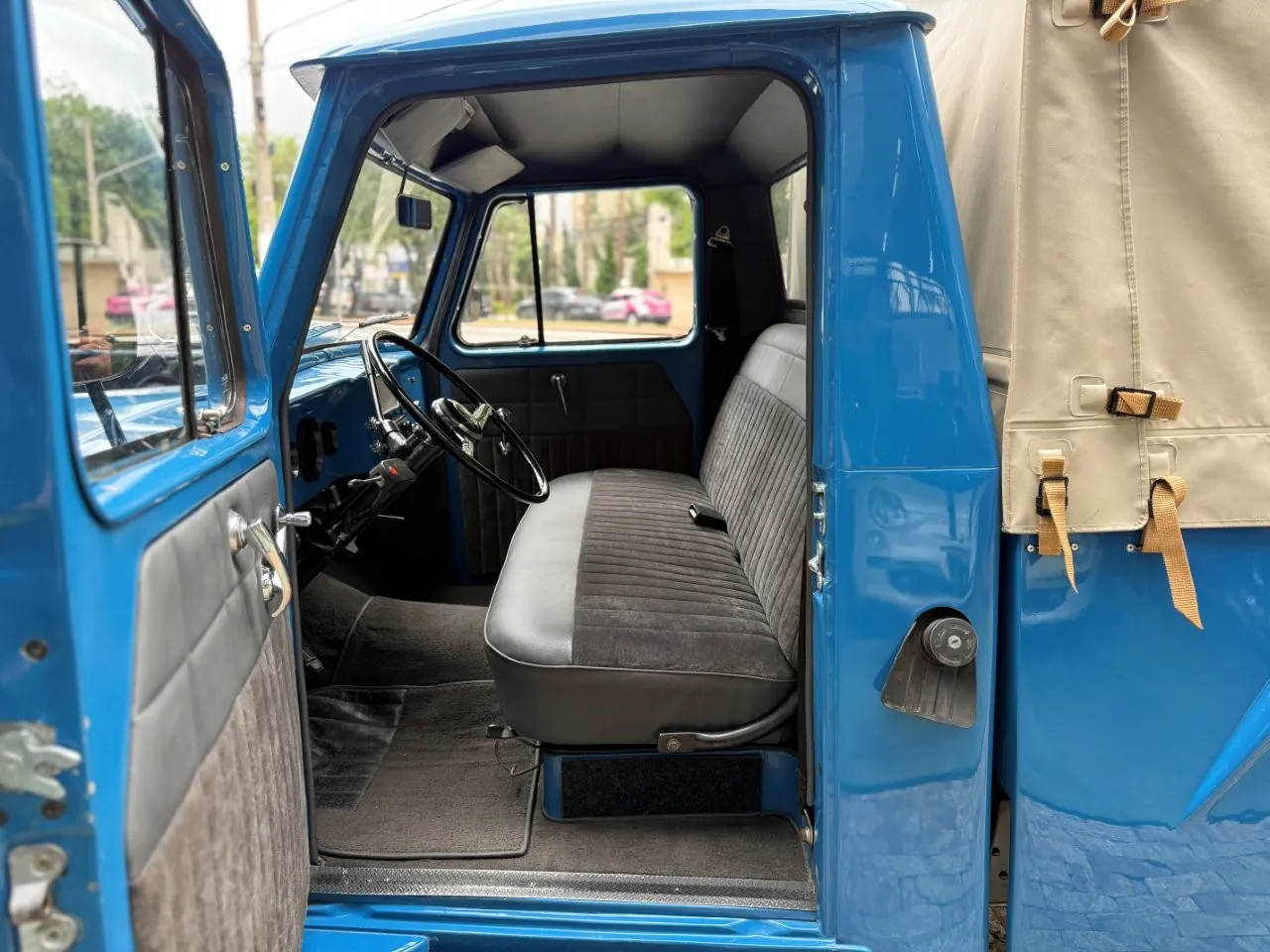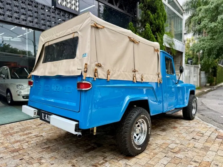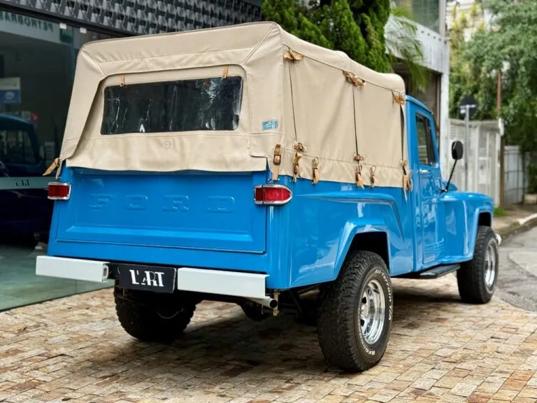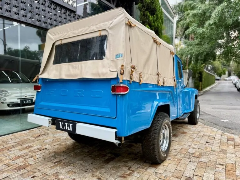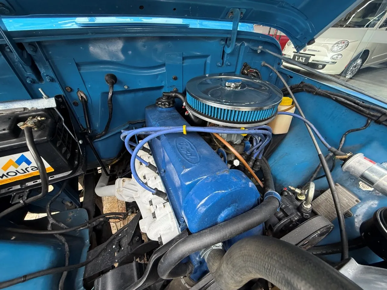 Derivada do Willys Rural, ela manteve a robustez da linhagem original com ares mais utilitários. Essa nossa F-75 chama atenção pela pintura azul vibrante e pela lona de cobertura na caçamba, que dá um charme rústico, quase militar, sem esconder o propósito funcional da carroceria. Motor 2.3 - 4 cilindros em linha OHC com câmbio mecânico de 4 velocidades na coluna. Pneus BF Goodrich.