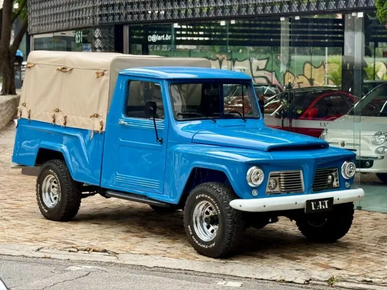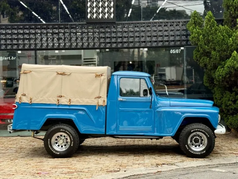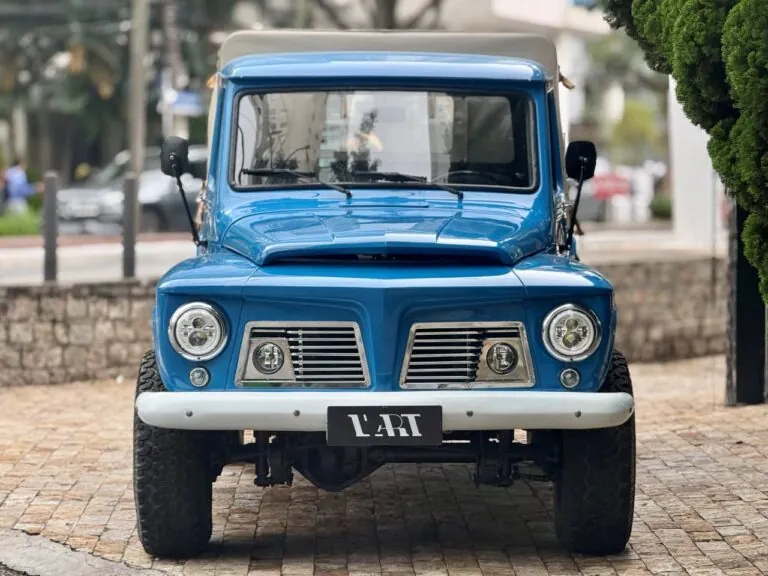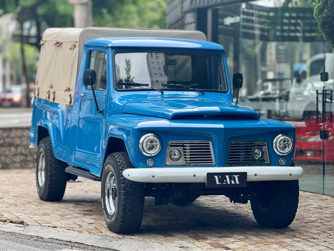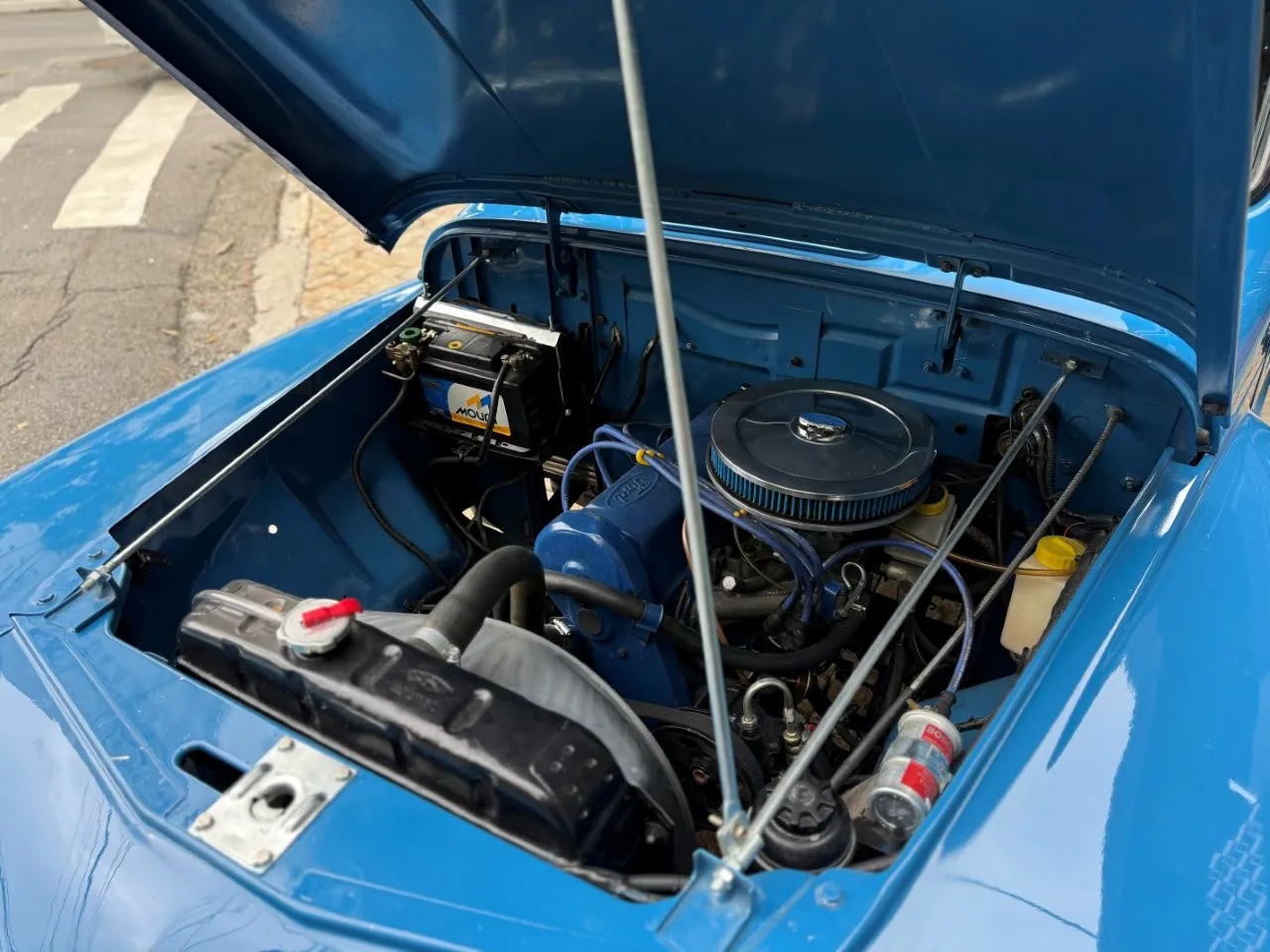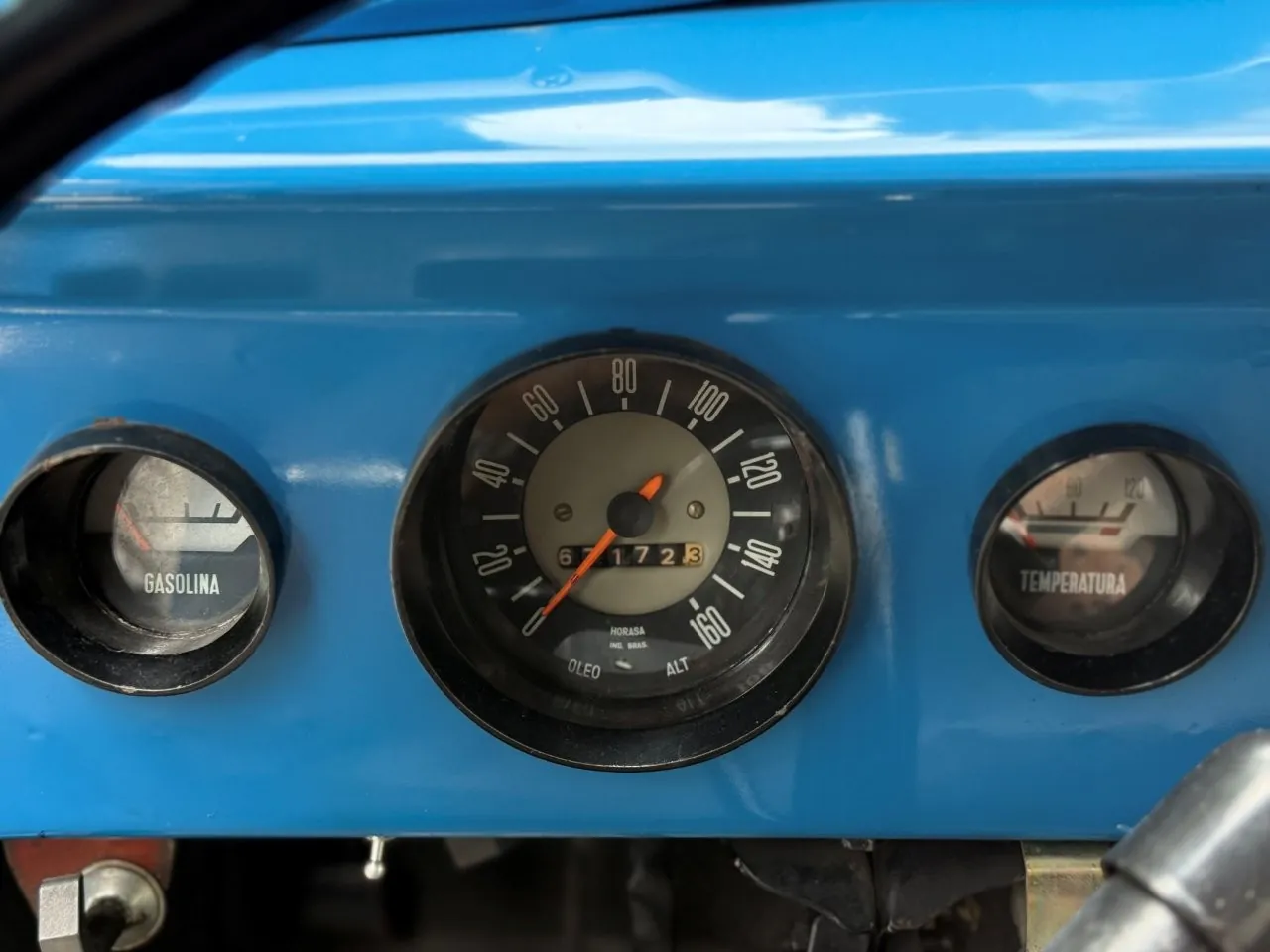 Derivada do Willys Rural, ela manteve a robustez da linhagem original com ares mais utilitários. Essa nossa F-75 chama atenção pela pintura azul vibrante e pela lona de cobertura na caçamba, que dá um charme rústico, quase militar, sem esconder o propósito funcional da carroceria. Motor 2.3 - 4 cilindros em linha OHC com câmbio mecânico de 4 velocidades na coluna. Pneus BF Goodrich.