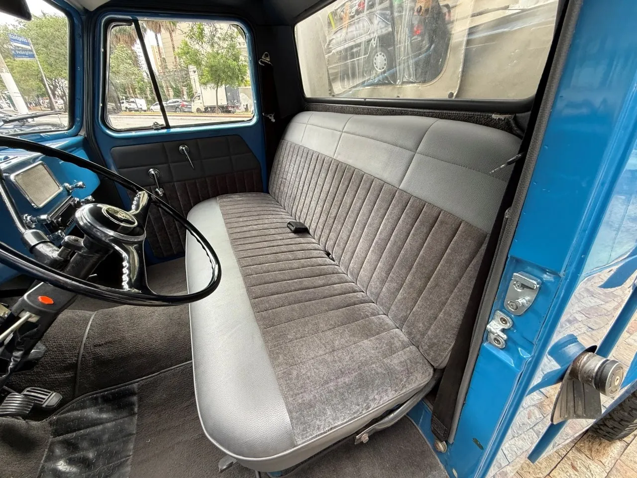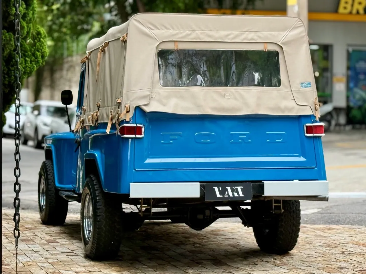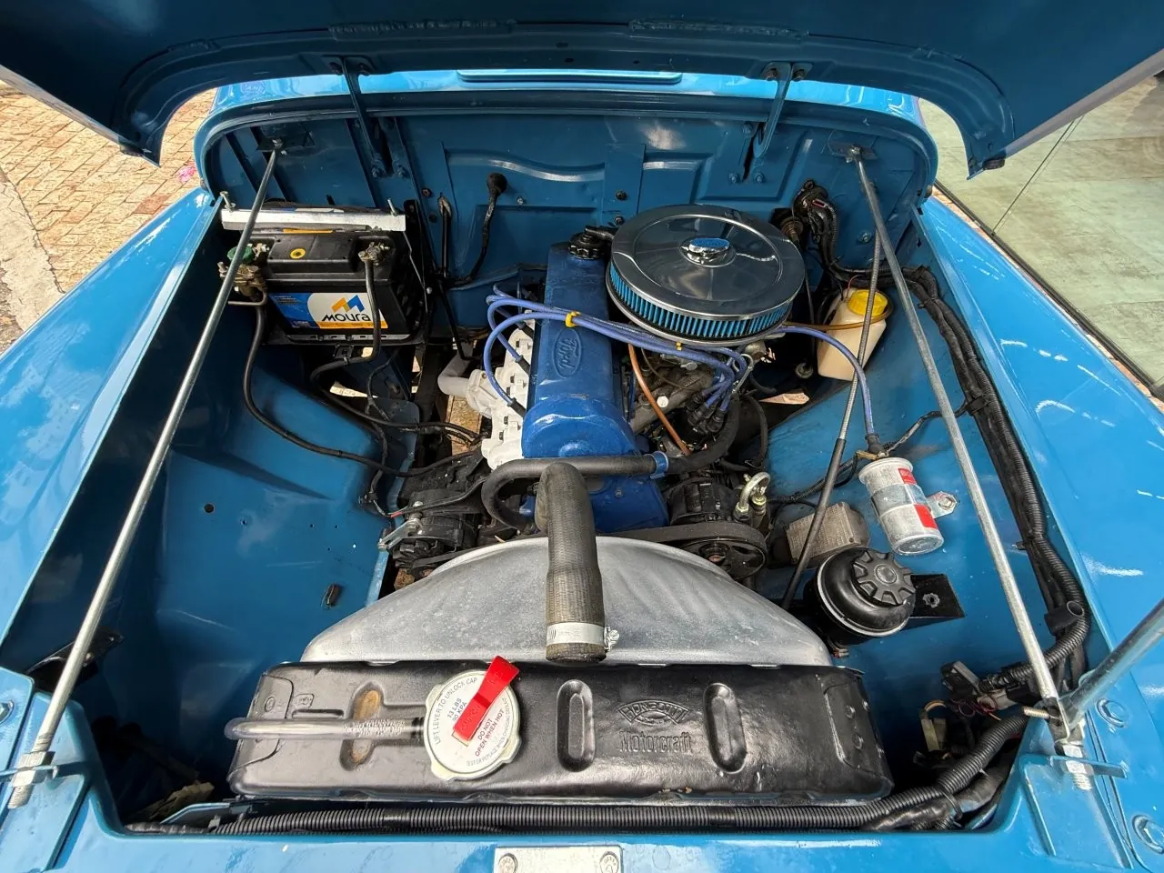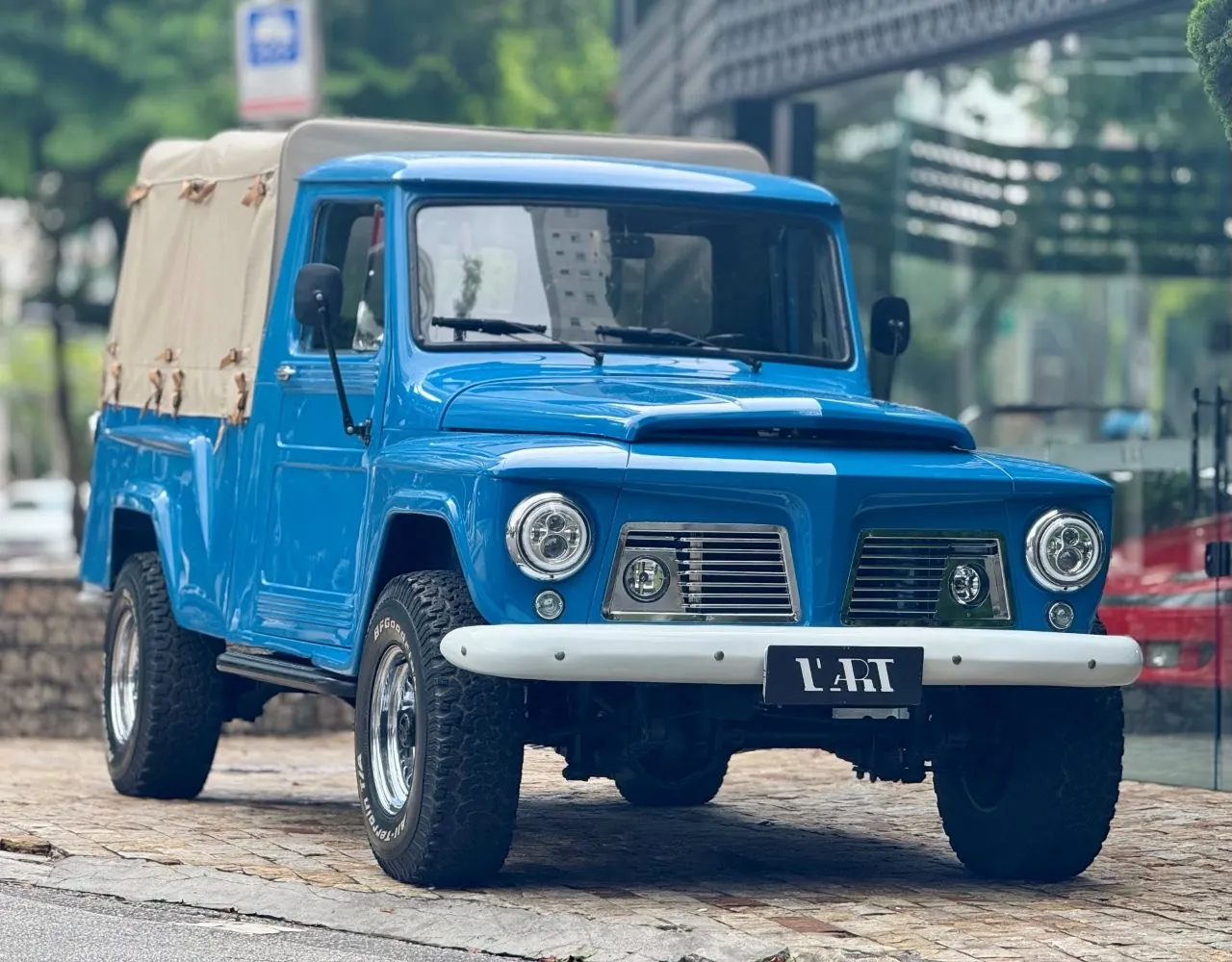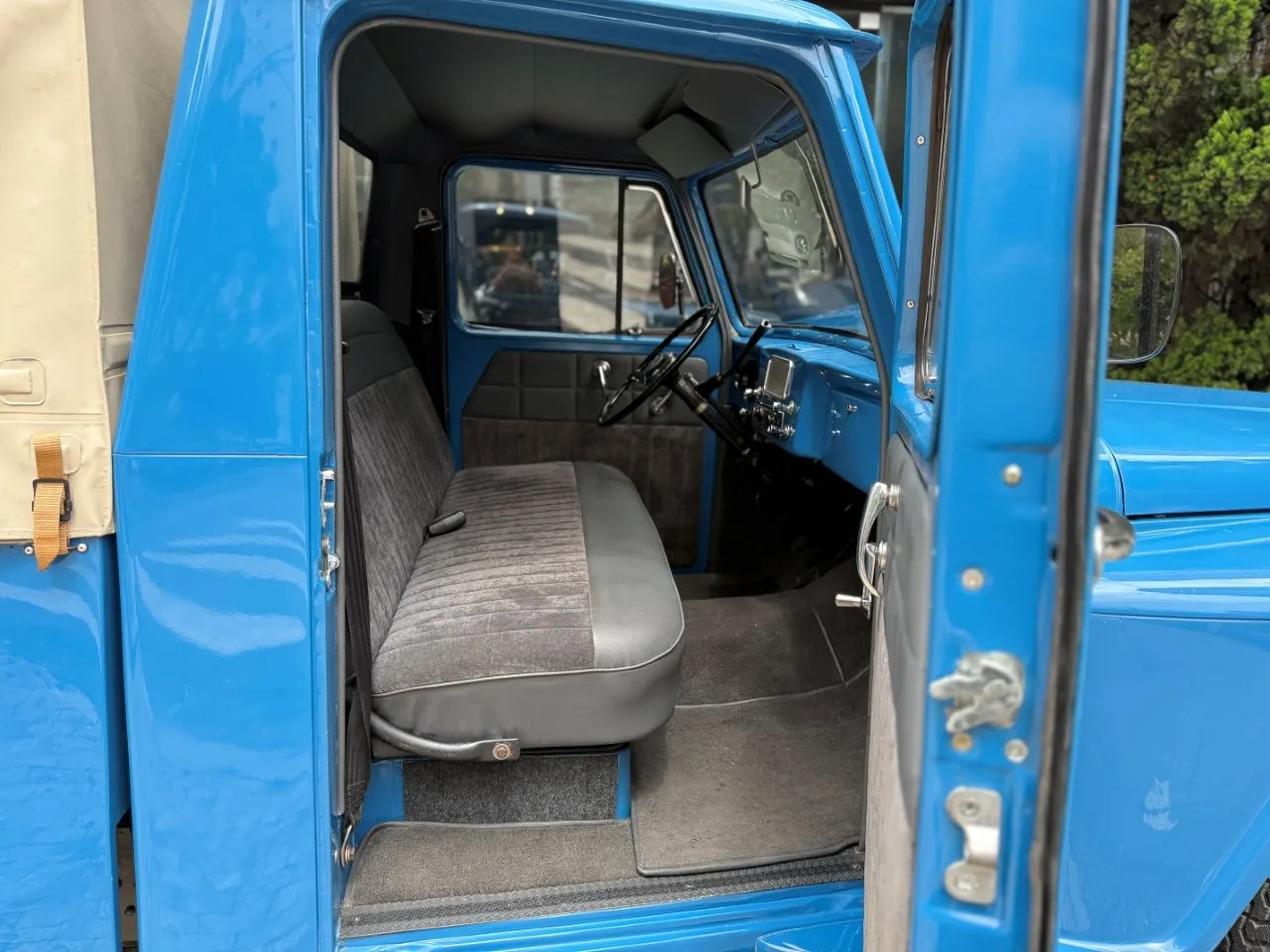 Derivada do Willys Rural, ela manteve a robustez da linhagem original com ares mais utilitários. Essa nossa F-75 chama atenção pela pintura azul vibrante e pela lona de cobertura na caçamba, que dá um charme rústico, quase militar, sem esconder o propósito funcional da carroceria. Motor 2.3 - 4 cilindros em linha OHC com câmbio mecânico de 4 velocidades na coluna. Pneus BF Goodrich.