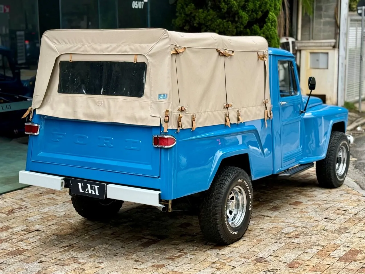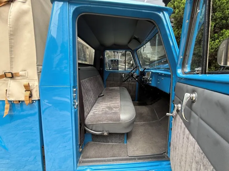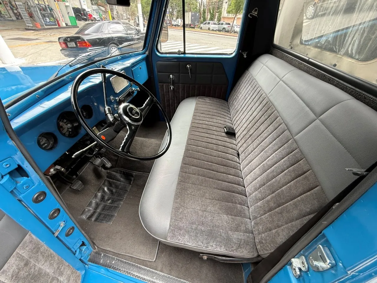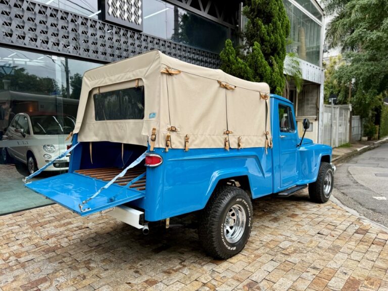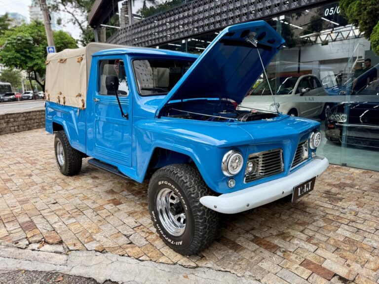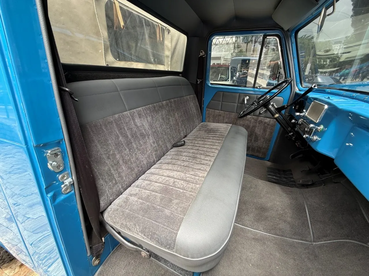 Derivada do Willys Rural, ela manteve a robustez da linhagem original com ares mais utilitários. Essa nossa F-75 chama atenção pela pintura azul vibrante e pela lona de cobertura na caçamba, que dá um charme rústico, quase militar, sem esconder o propósito funcional da carroceria. Motor 2.3 - 4 cilindros em linha OHC com câmbio mecânico de 4 velocidades na coluna. Pneus BF Goodrich.