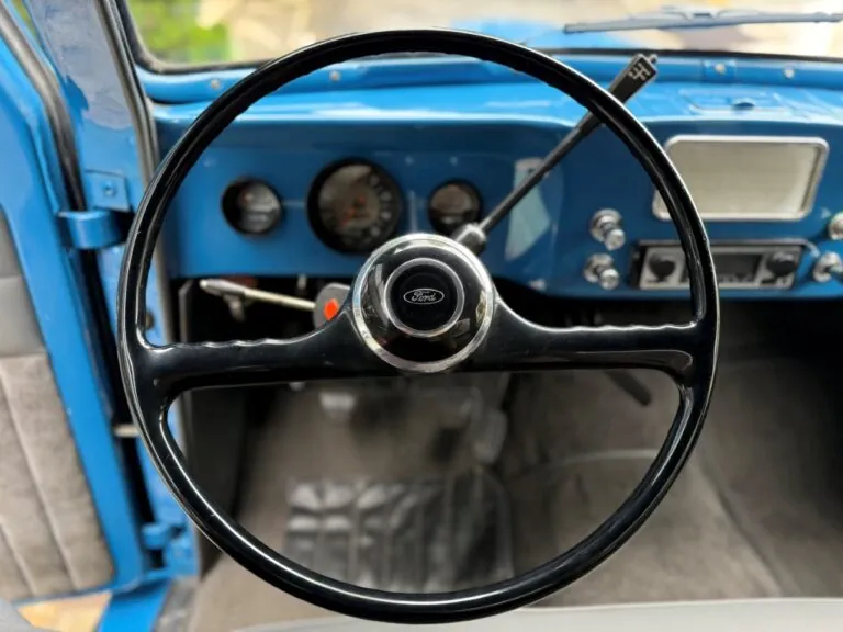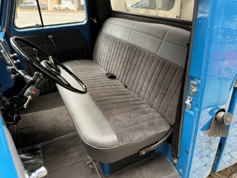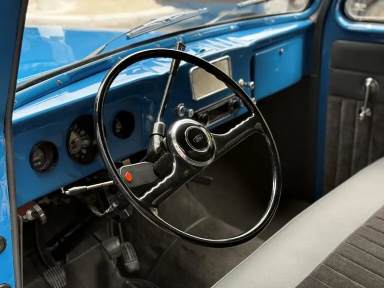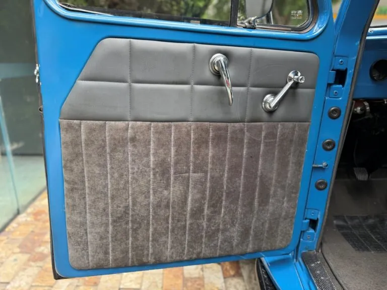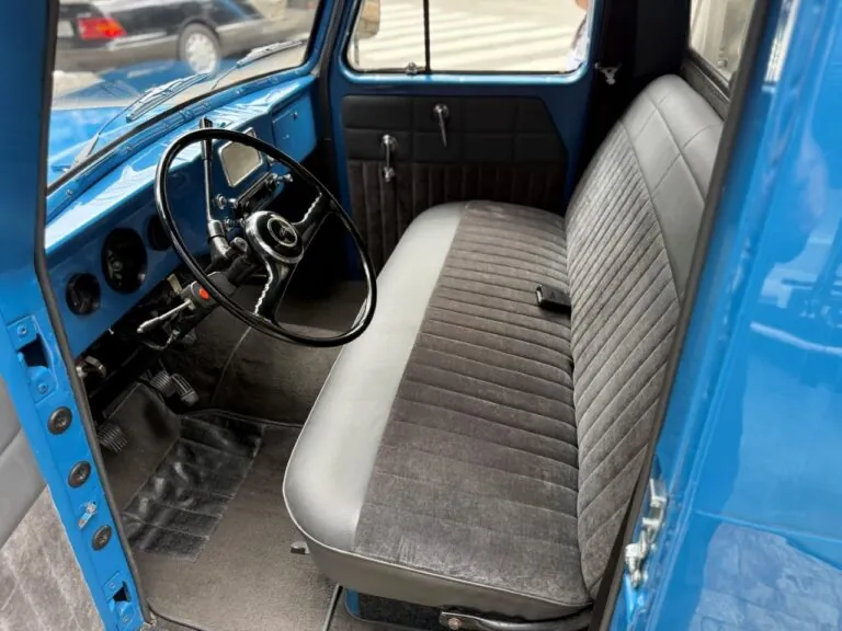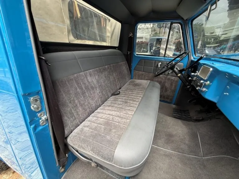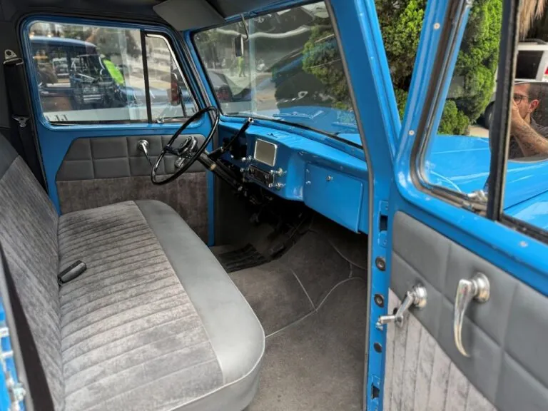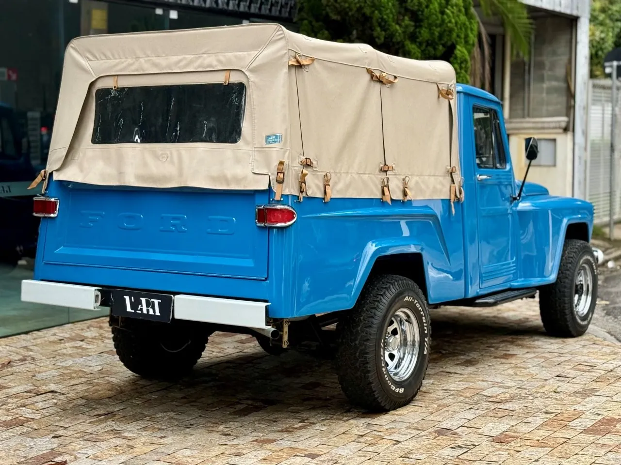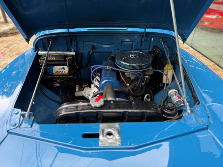 Derivada do Willys Rural, ela manteve a robustez da linhagem original com ares mais utilitários. Essa nossa F-75 chama atenção pela pintura azul vibrante e pela lona de cobertura na caçamba, que dá um charme rústico, quase militar, sem esconder o propósito funcional da carroceria. Motor 2.3 - 4 cilindros em linha OHC com câmbio mecânico de 4 velocidades na coluna. Pneus BF Goodrich.