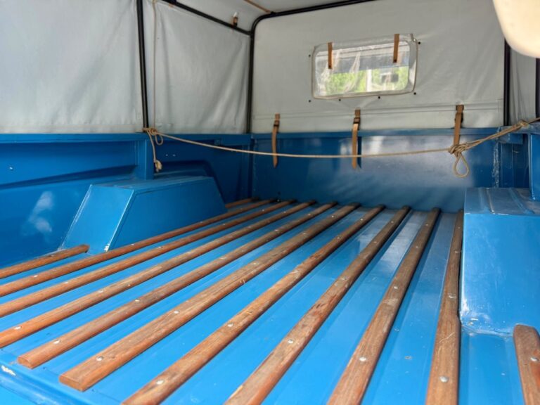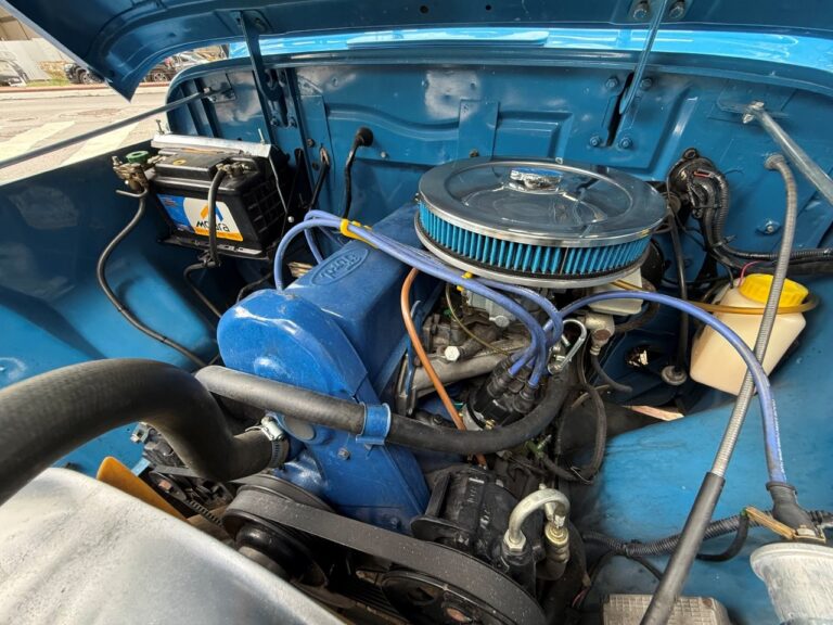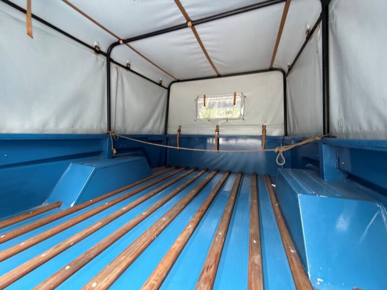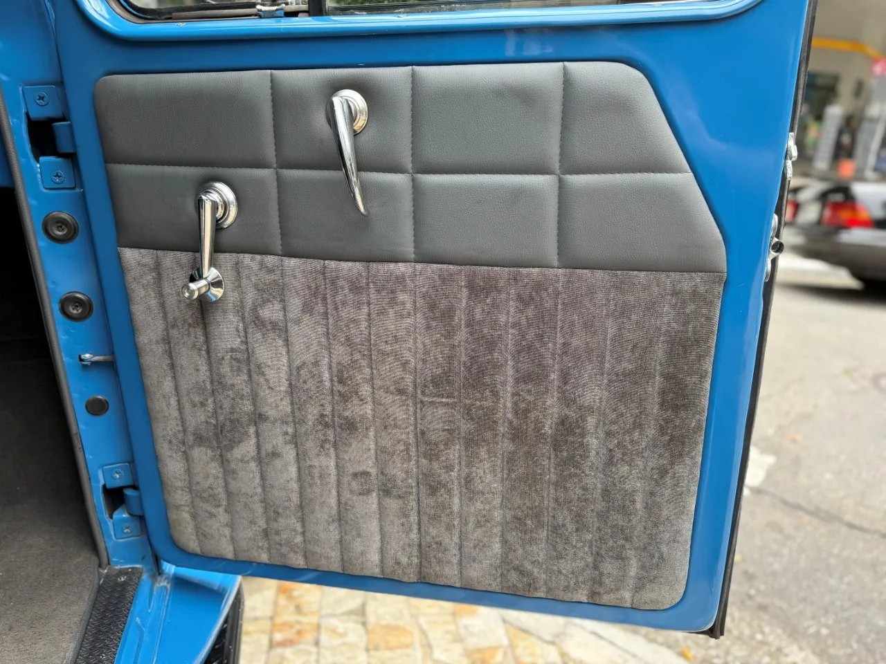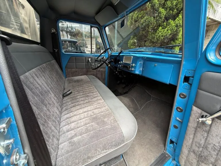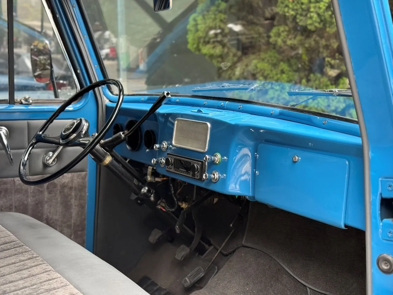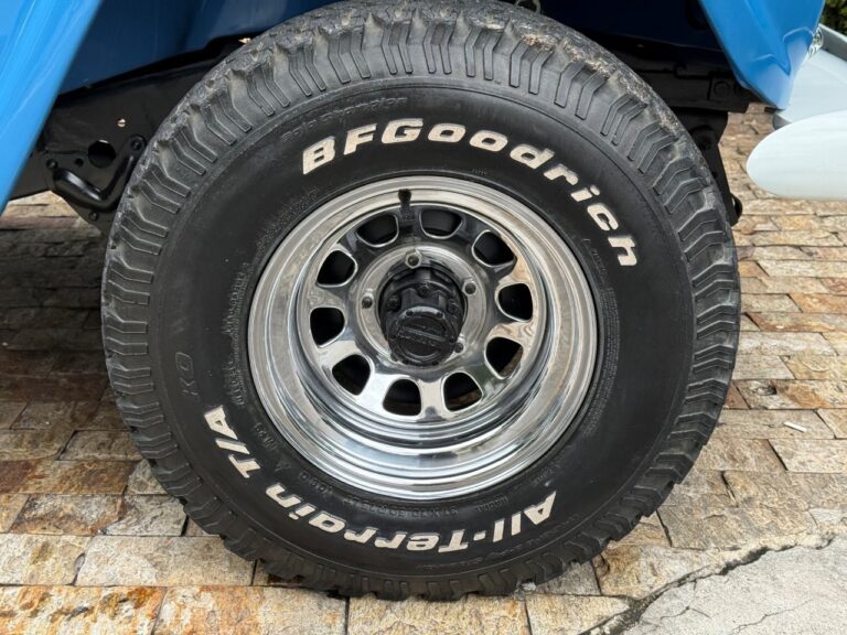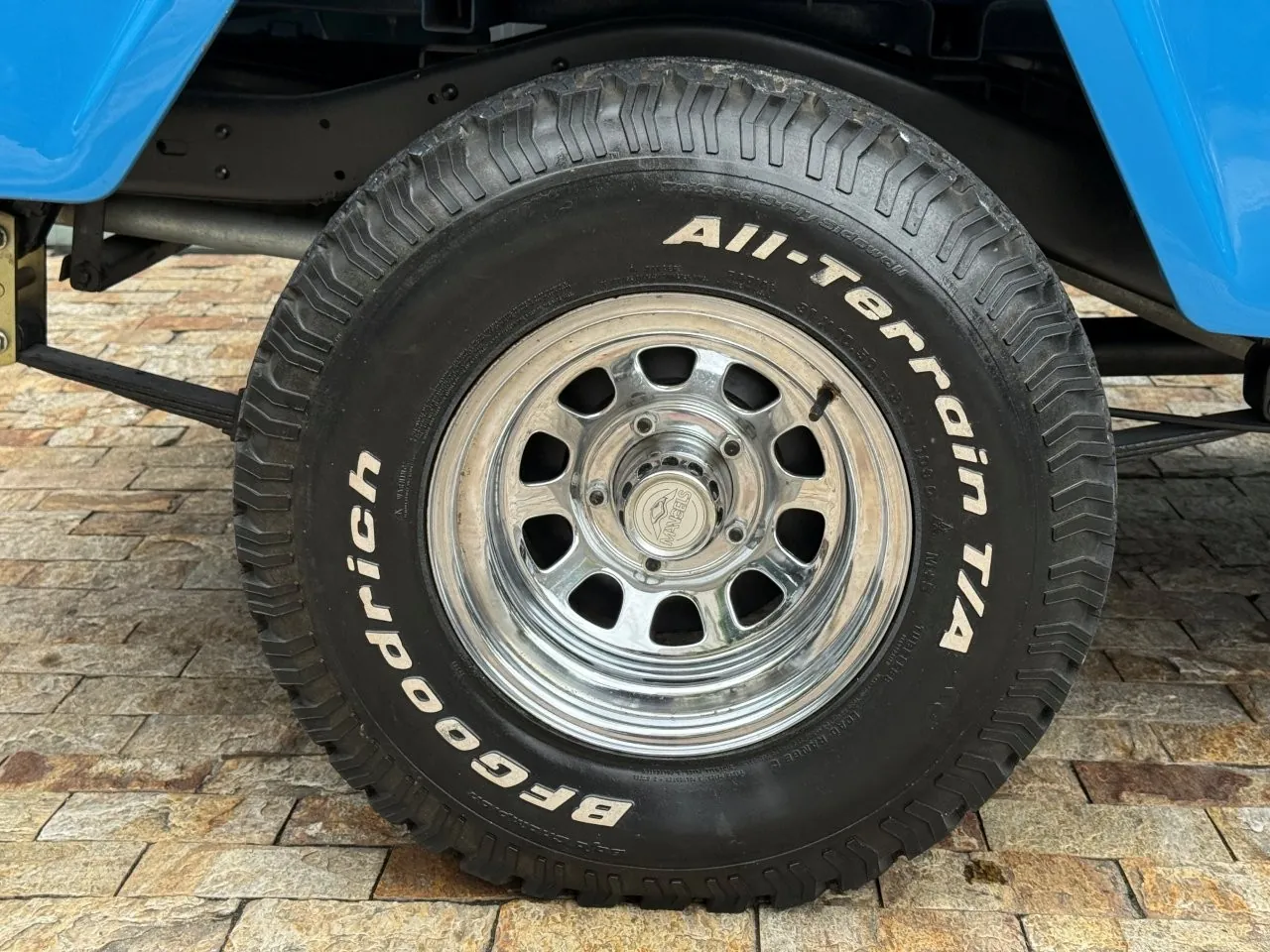 Derivada do Willys Rural, ela manteve a robustez da linhagem original com ares mais utilitários. Essa nossa F-75 chama atenção pela pintura azul vibrante e pela lona de cobertura na caçamba, que dá um charme rústico, quase militar, sem esconder o propósito funcional da carroceria. Motor 2.3 - 4 cilindros em linha OHC com câmbio mecânico de 4 velocidades na coluna. Pneus BF Goodrich.