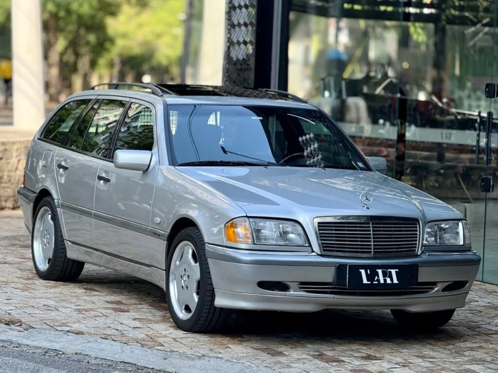 Essa C280 Touring S202 é um ótimo exemplo da Mercedes-Benz dos anos 90. Equipada com motor 2.8 V6 (M112) de 197 cv e câmbio automático 5G-Tronic, entrega rodar macio, silencioso e muito confortável. O carro é prata com interior preto, está com 129 mil km e se apresenta muito bem conservado. Conta com teto solar, piloto automático Tempomat, bancos elétricos, volante em madeira, som original com Bluetooth e subwoofer, além de tela divisória de carga e tampa do porta-malas. As rodas monoblock aro 17”, adicionam ainda mais elegância ao conjunto, valorizando o visual clássico da perua.