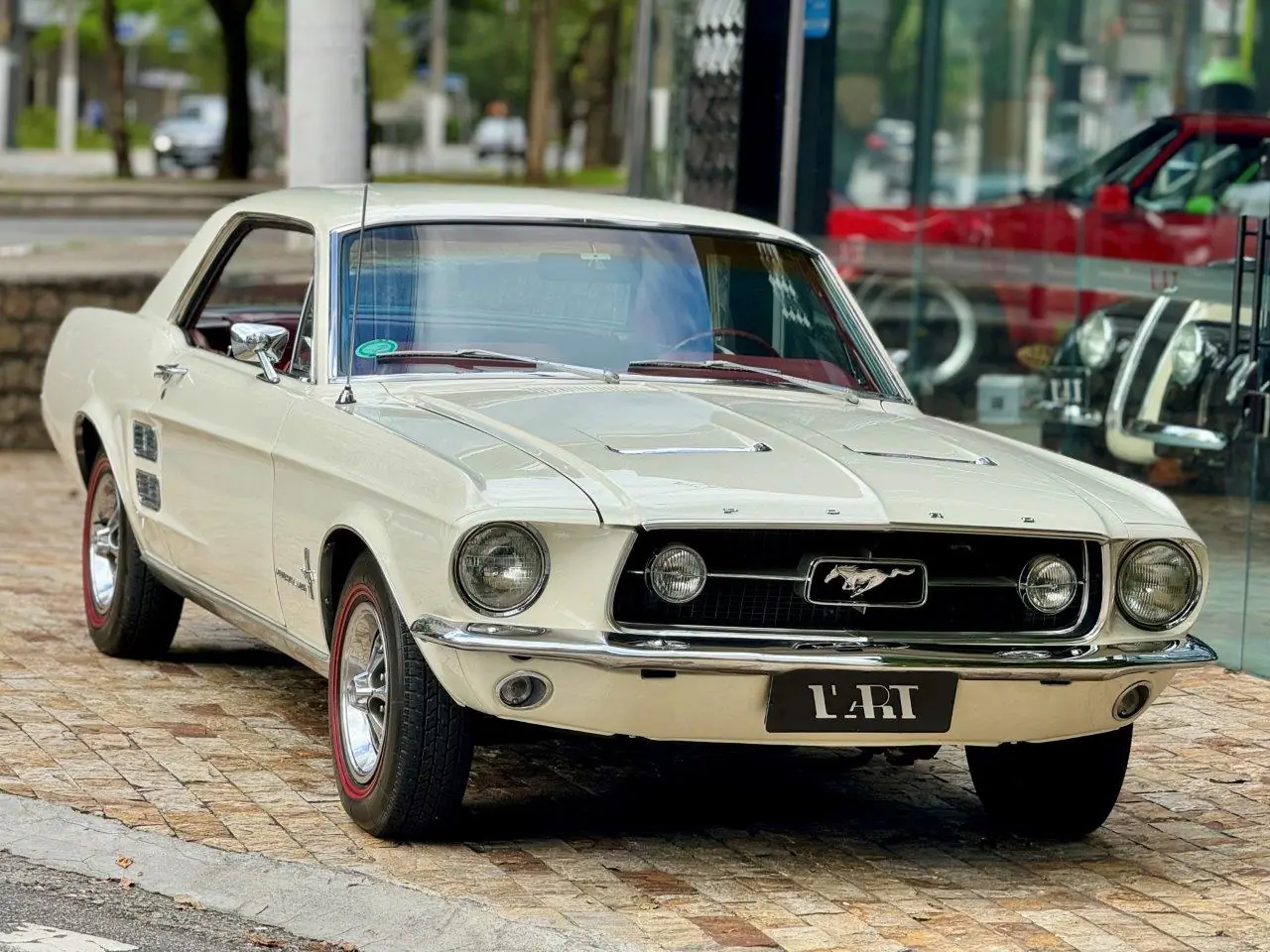 Automóvel muito íntegro e em excelente estado geral de preservação. Mecânica original e toda revisada, motor V8 - 289 com câmbio automático. Possui vidros verdes, console central em aço inox e volante e direção original. Interior vermelho original impecável. Essa combinação de cores branco com interior vermelho dá um toque especial neste Muscle Car.