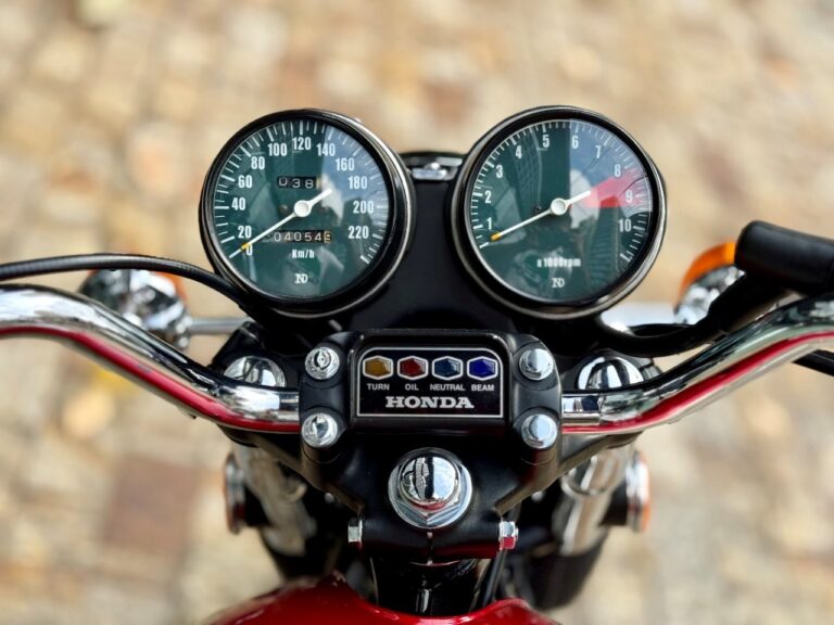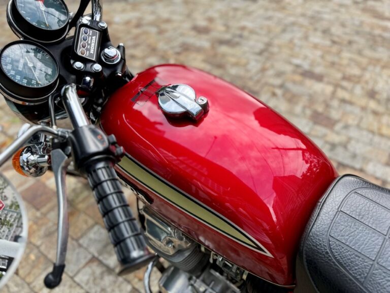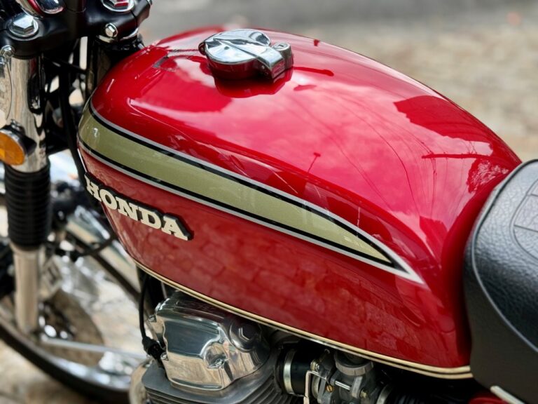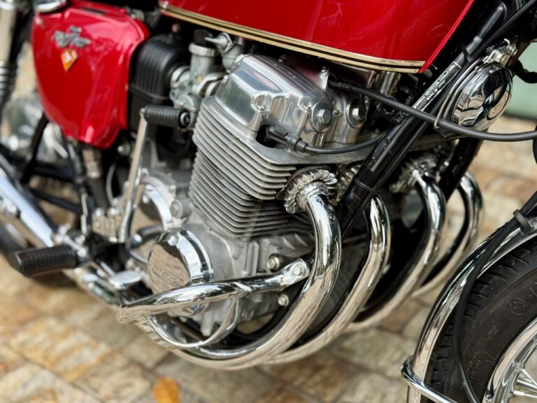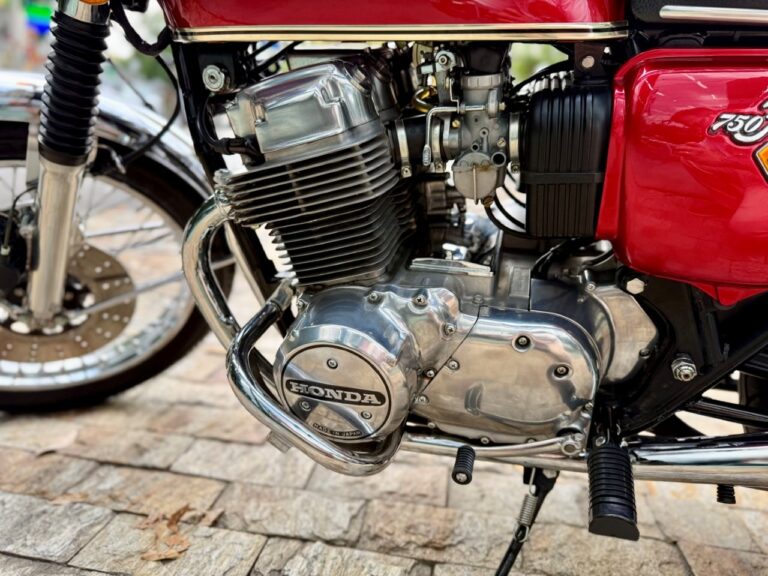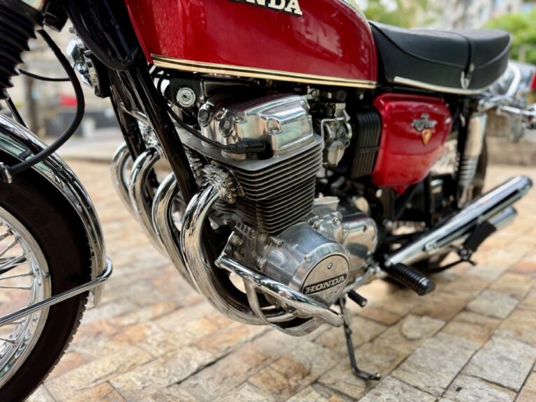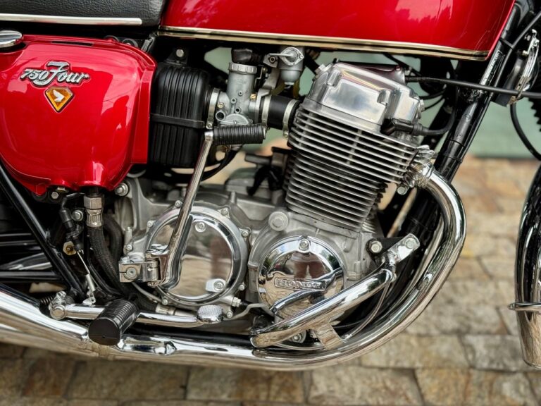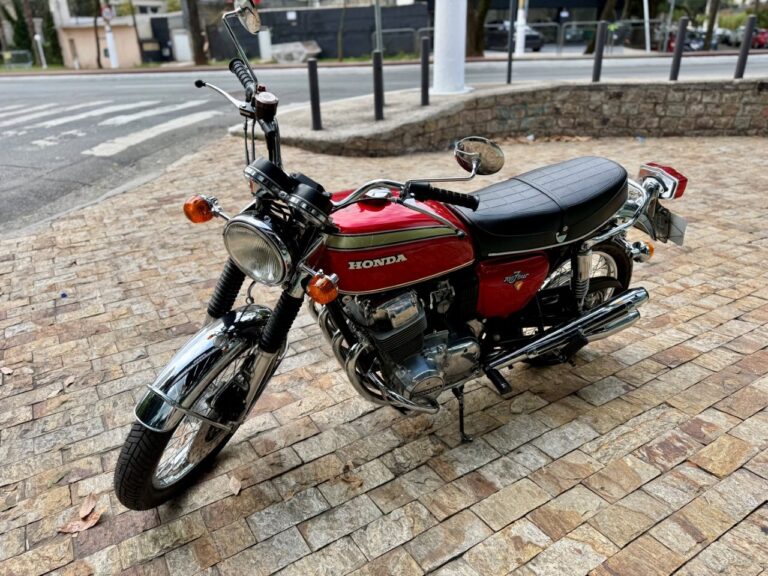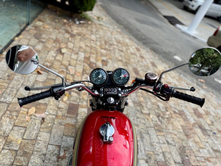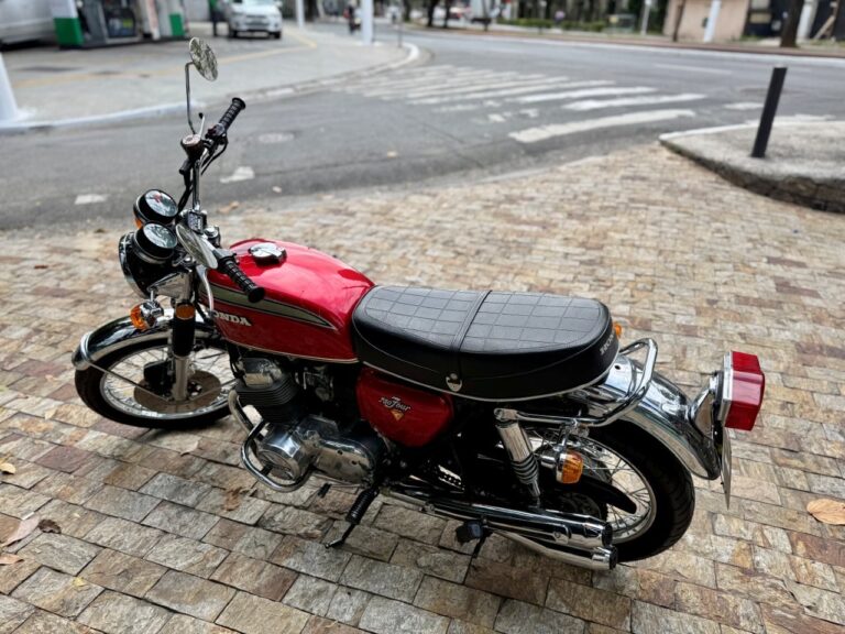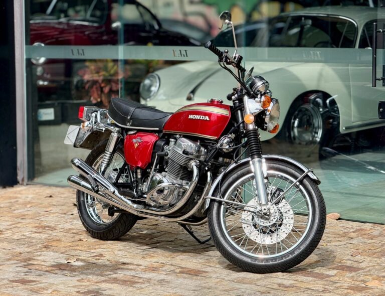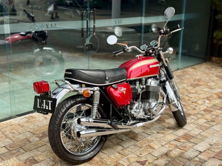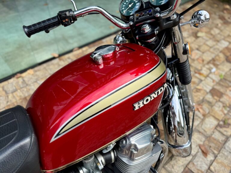 A Honda CB 750 Four é uma motocicleta icônica, equipada com motor quatro cilindros em linha, refrigerado a ar e transversal, capaz de entregar desempenho surpreendente para a época. Lançada em 1969, ela é considerada a “Moto do Século” pela revista americana Motorcyclist, por revolucionar o conceito de motocicletas de alta performance e confiabilidade. Design clássico, a CB 750 combinava potência, estabilidade e conforto. Nossa CB 750 está simplesmente maravilhosa em todos os detalhes.