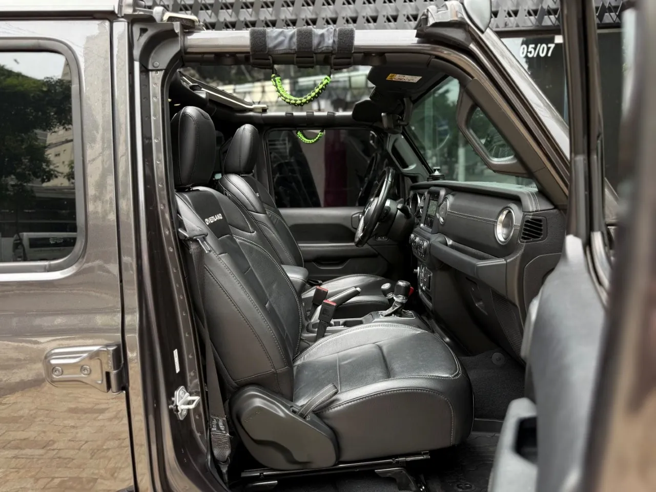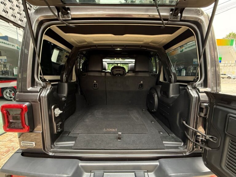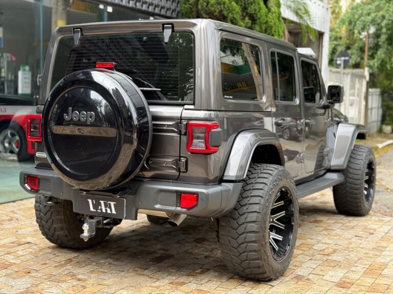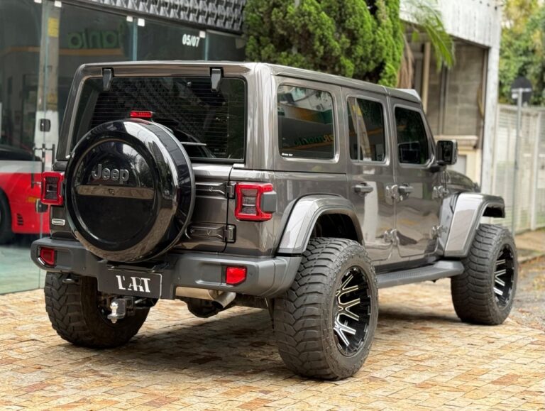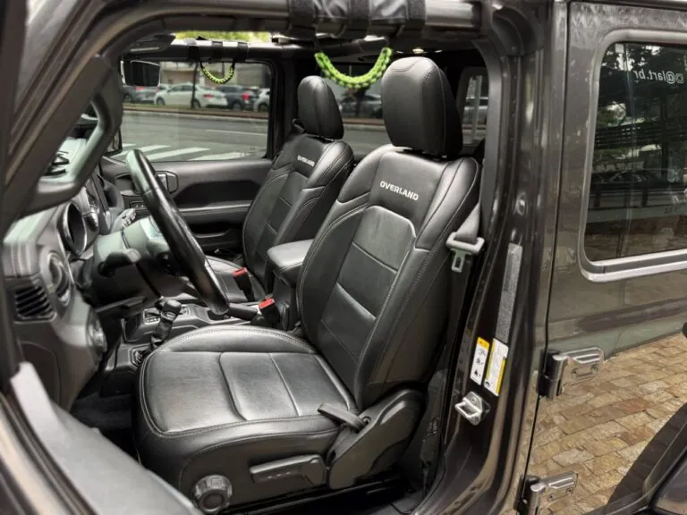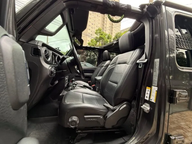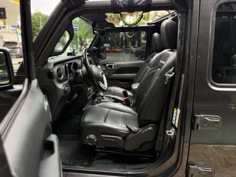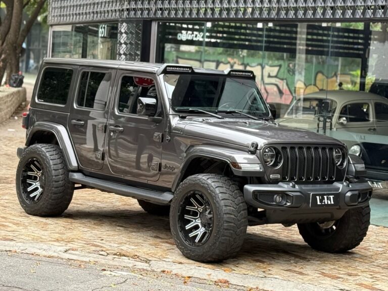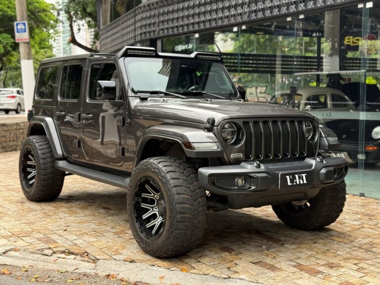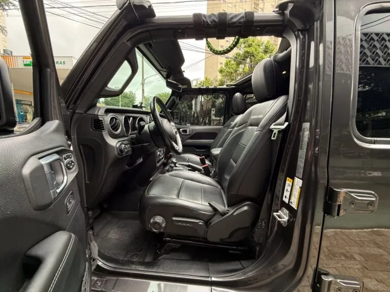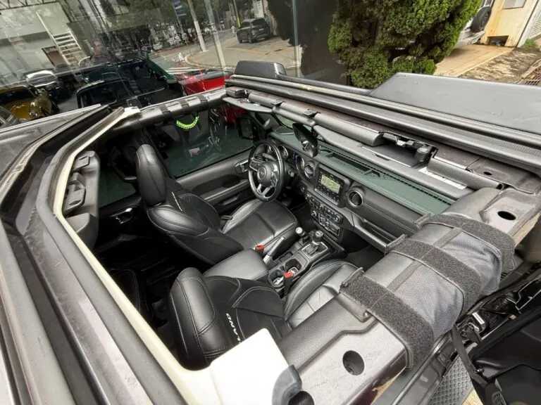 Na elegante cor granite cristal metálico com interior em couro e apenas 37 mil km. Esse exemplar recebeu customização com estilo off road, incluindo rodas, pneus e lift. Equipado com motor 2.0 turbo a gasolina e câmbio AT8. Capota e portas removíveis, multimídia integrada com áudio Alpine e bancos em couro com inscrição Overland. Completo de acessórios como rodas aro 20 com pneus Maxxis, lift de 3”, estribos, engate removível, acabamentos externos em preto brilhante, farol de milha em LED no teto e película 3M. Um Wrangler pronto para quem quer presença, conforto e espírito off road em um único carro.