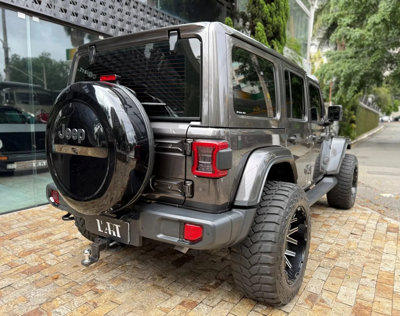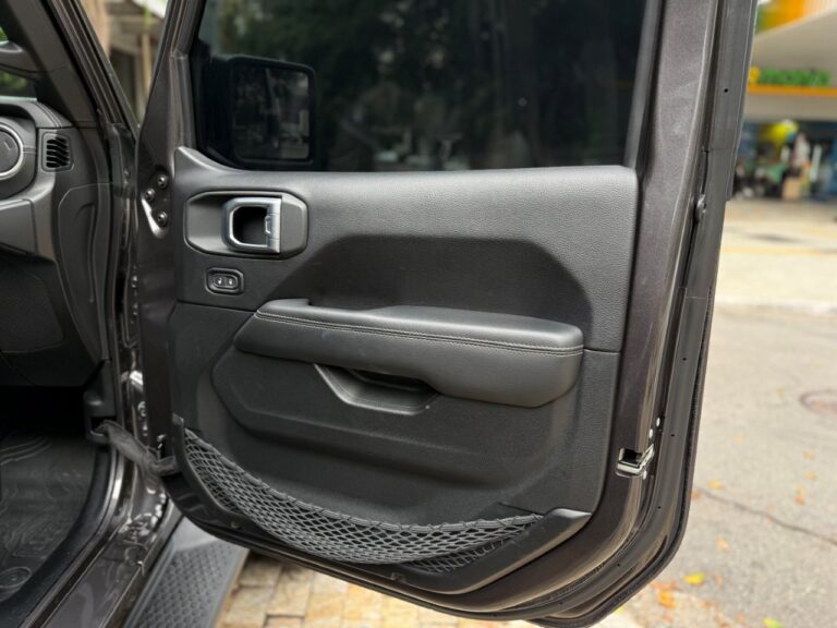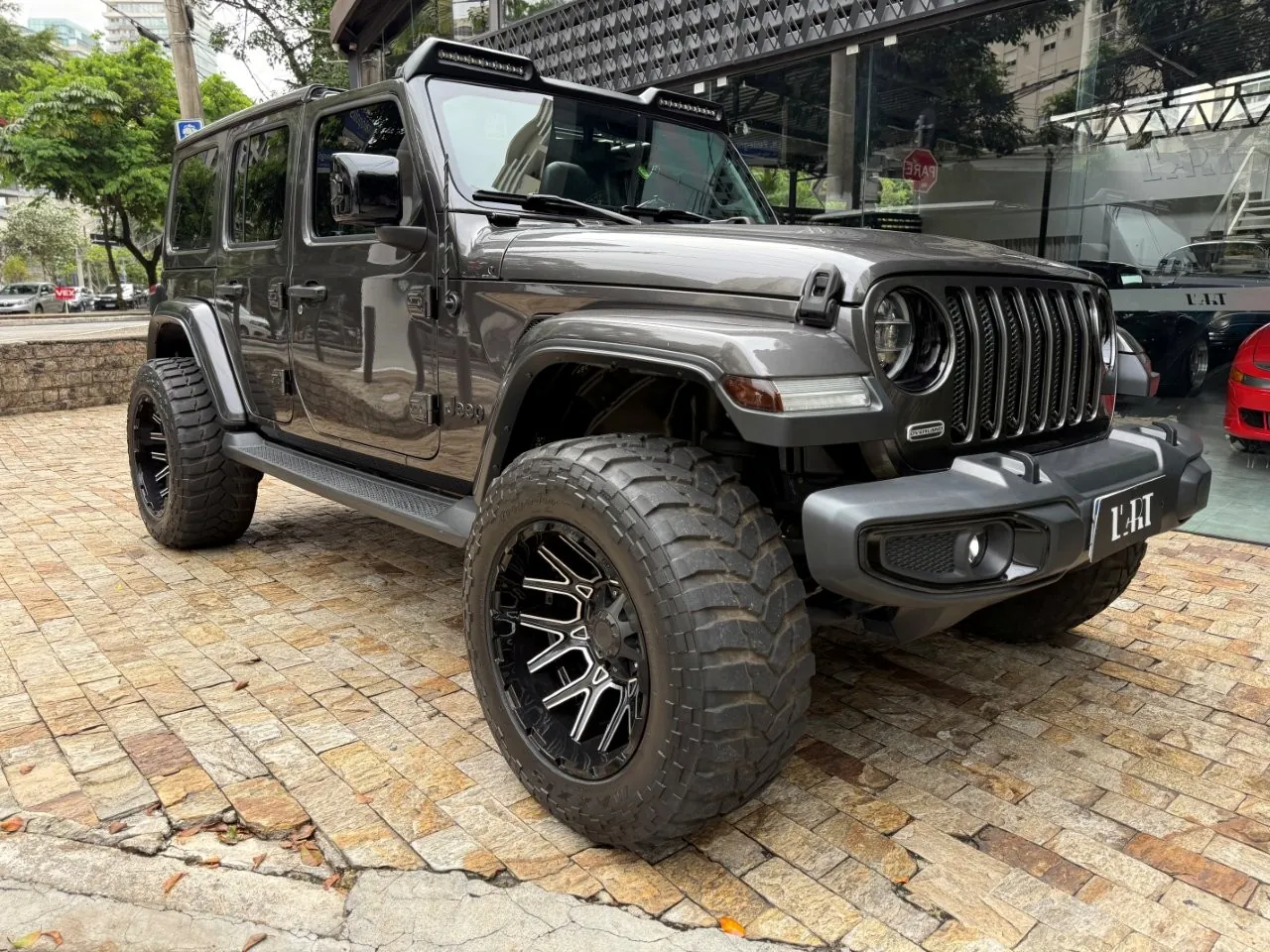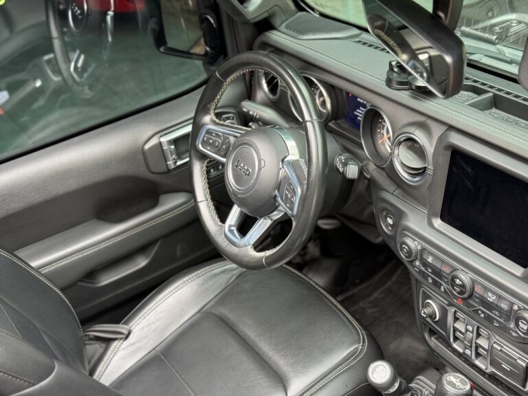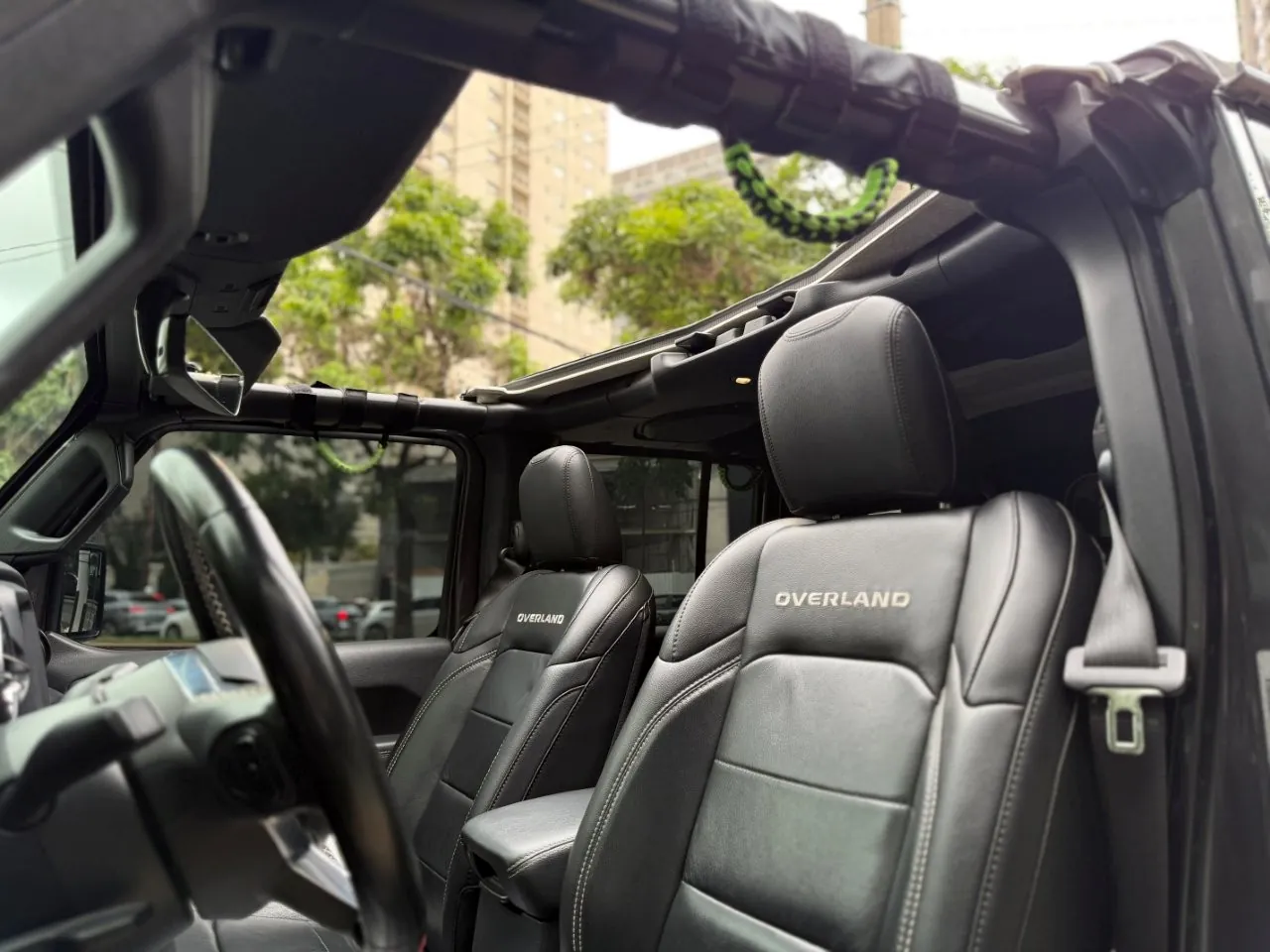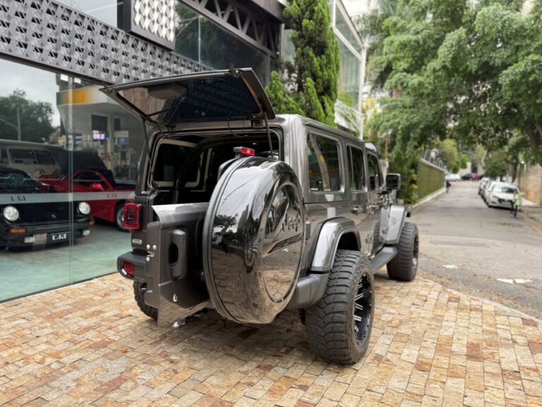 Na elegante cor granite cristal metálico com interior em couro e apenas 37 mil km. Esse exemplar recebeu customização com estilo off road, incluindo rodas, pneus e lift. Equipado com motor 2.0 turbo a gasolina e câmbio AT8. Capota e portas removíveis, multimídia integrada com áudio Alpine e bancos em couro com inscrição Overland. Completo de acessórios como rodas aro 20 com pneus Maxxis, lift de 3”, estribos, engate removível, acabamentos externos em preto brilhante, farol de milha em LED no teto e película 3M. Um Wrangler pronto para quem quer presença, conforto e espírito off road em um único carro.