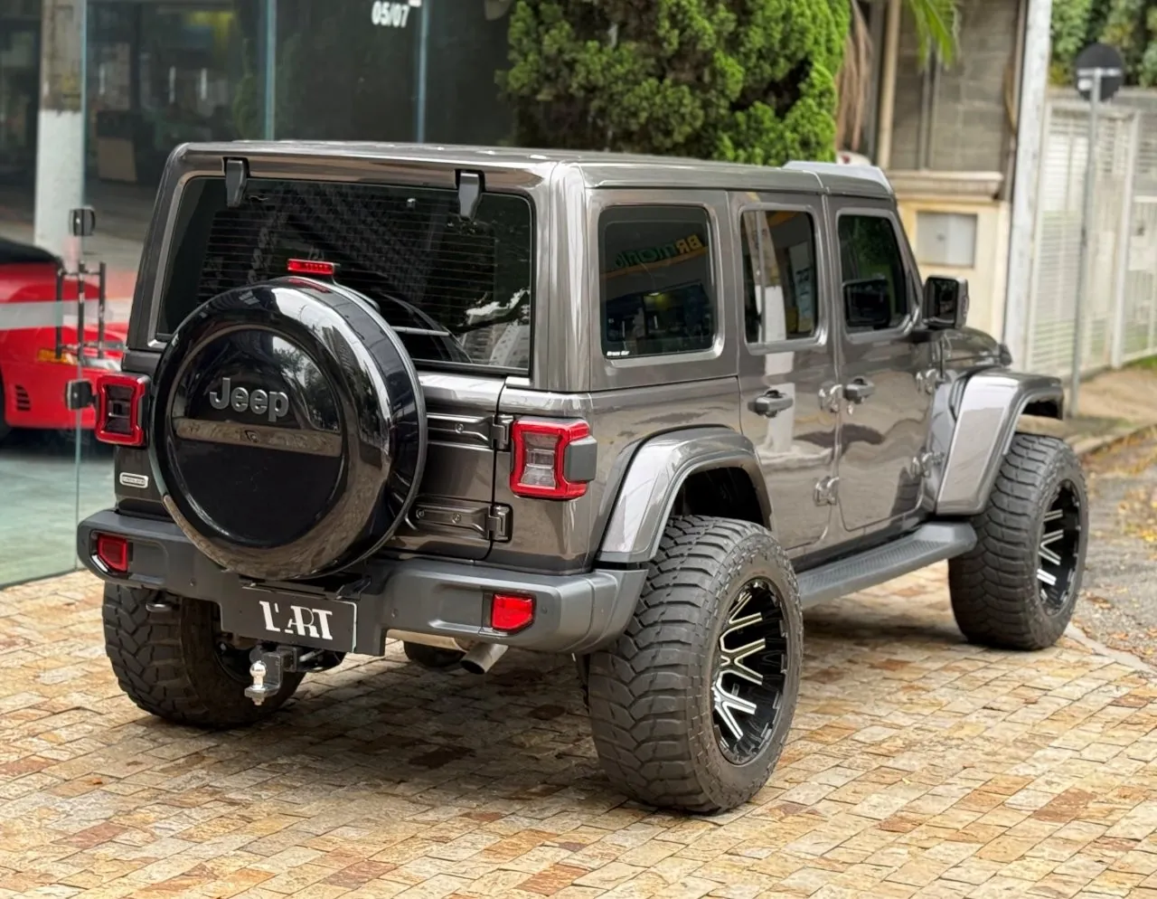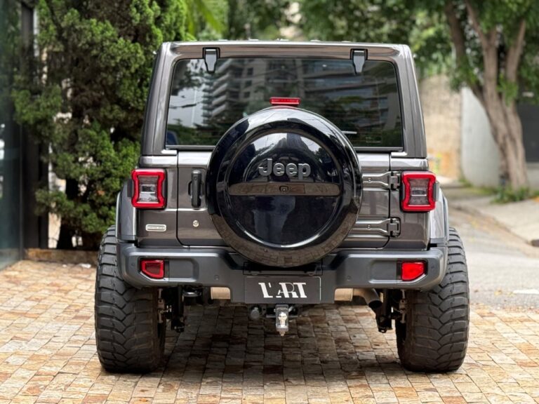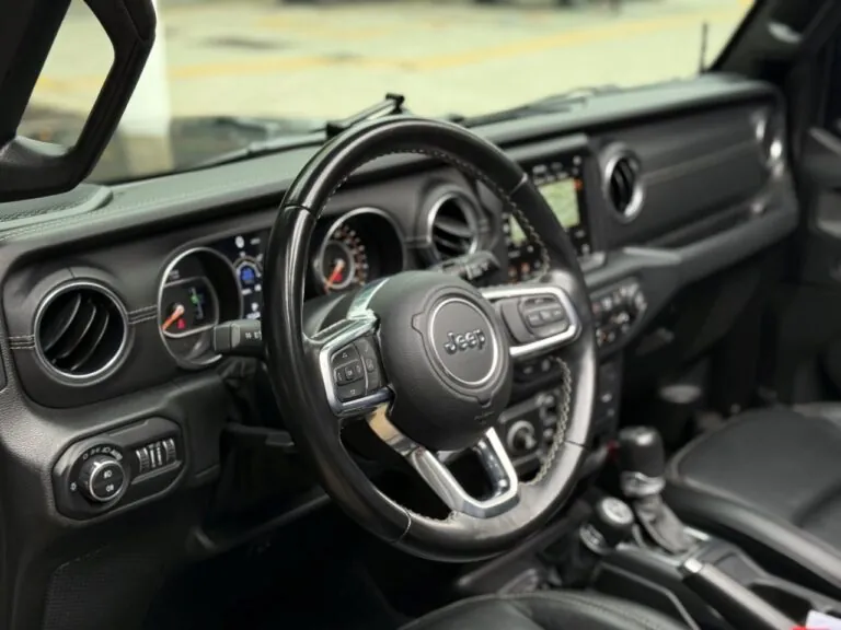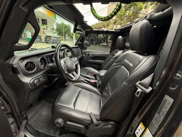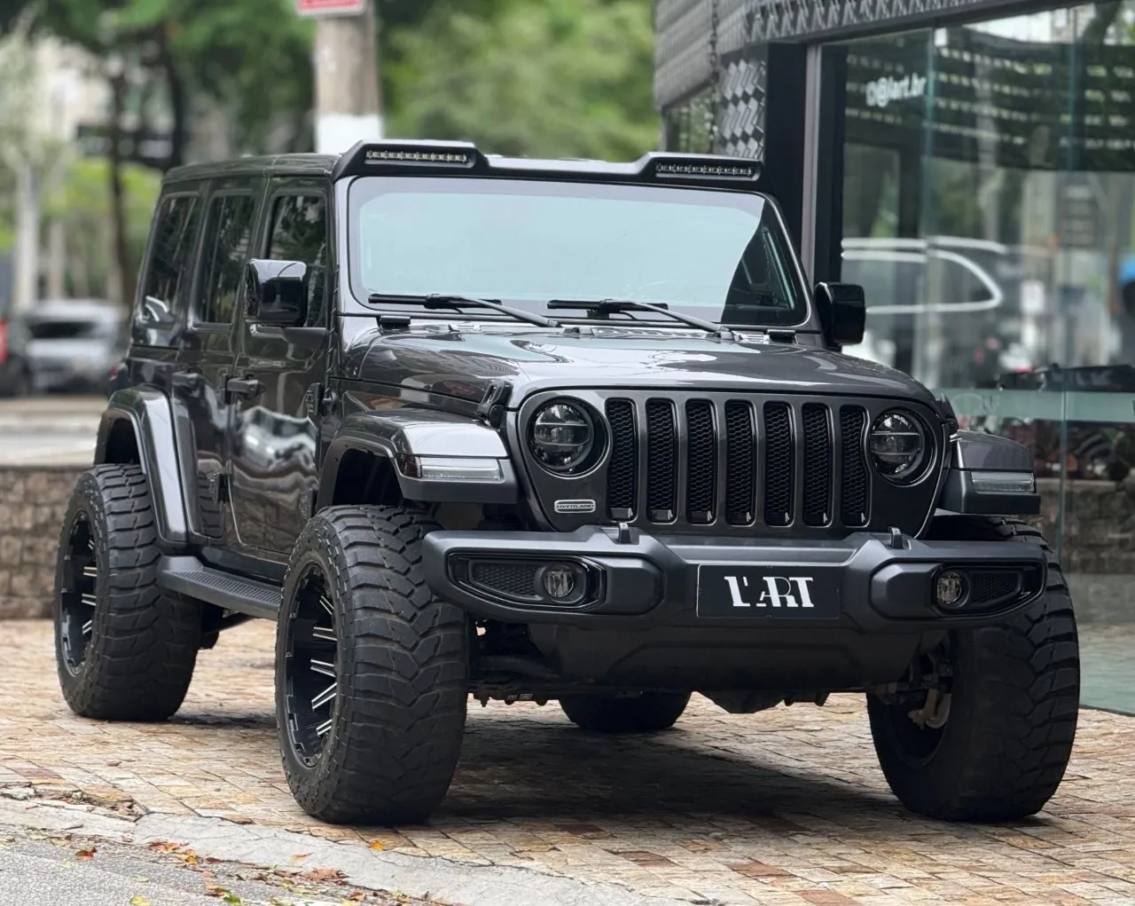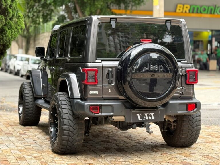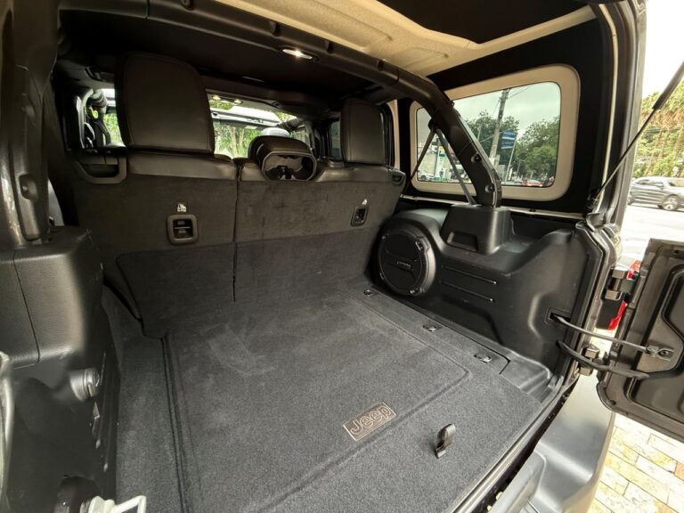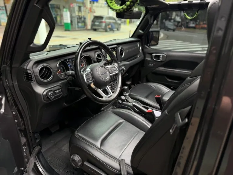 Na elegante cor granite cristal metálico com interior em couro e apenas 37 mil km. Esse exemplar recebeu customização com estilo off road, incluindo rodas, pneus e lift. Equipado com motor 2.0 turbo a gasolina e câmbio AT8. Capota e portas removíveis, multimídia integrada com áudio Alpine e bancos em couro com inscrição Overland. Completo de acessórios como rodas aro 20 com pneus Maxxis, lift de 3”, estribos, engate removível, acabamentos externos em preto brilhante, farol de milha em LED no teto e película 3M. Um Wrangler pronto para quem quer presença, conforto e espírito off road em um único carro.