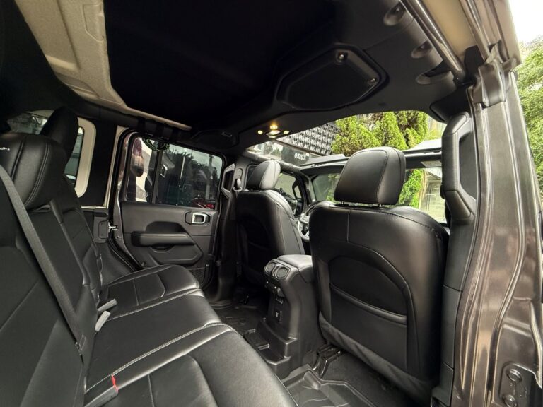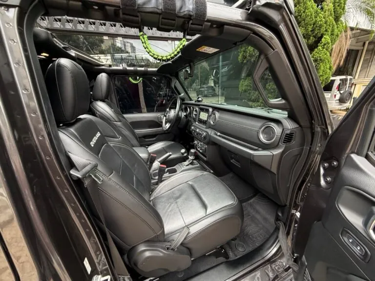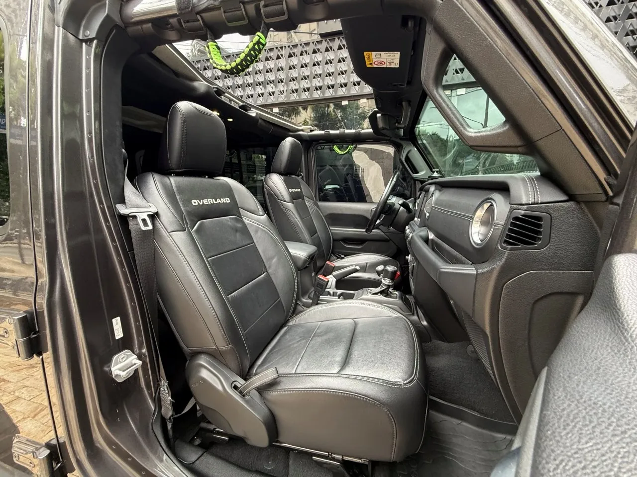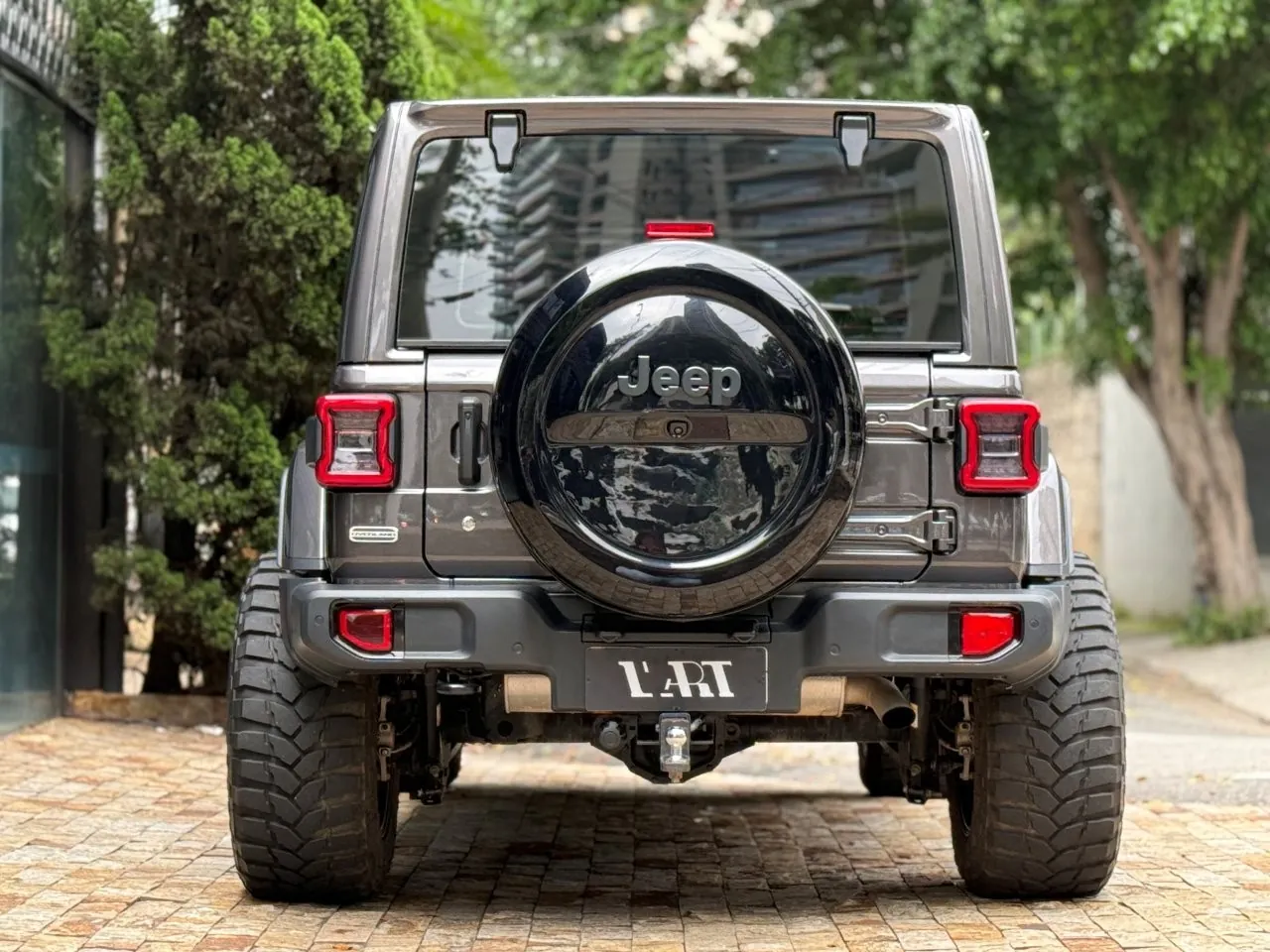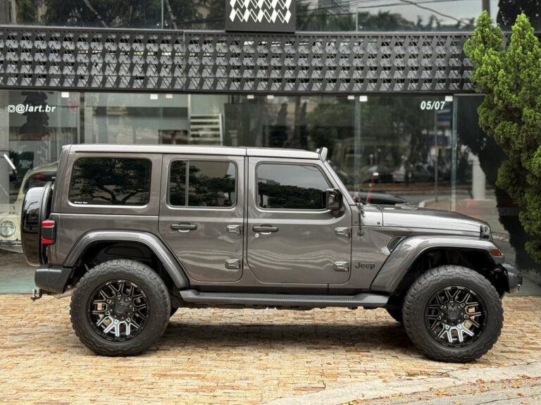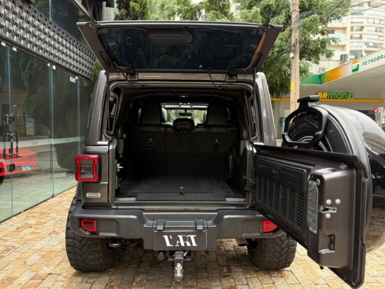 Na elegante cor granite cristal metálico com interior em couro e apenas 37 mil km. Esse exemplar recebeu customização com estilo off road, incluindo rodas, pneus e lift. Equipado com motor 2.0 turbo a gasolina e câmbio AT8. Capota e portas removíveis, multimídia integrada com áudio Alpine e bancos em couro com inscrição Overland. Completo de acessórios como rodas aro 20 com pneus Maxxis, lift de 3”, estribos, engate removível, acabamentos externos em preto brilhante, farol de milha em LED no teto e película 3M. Um Wrangler pronto para quem quer presença, conforto e espírito off road em um único carro.
