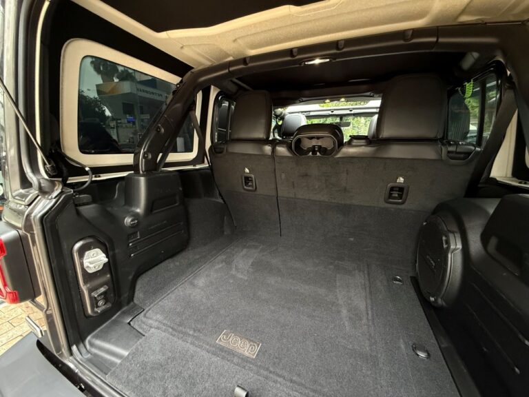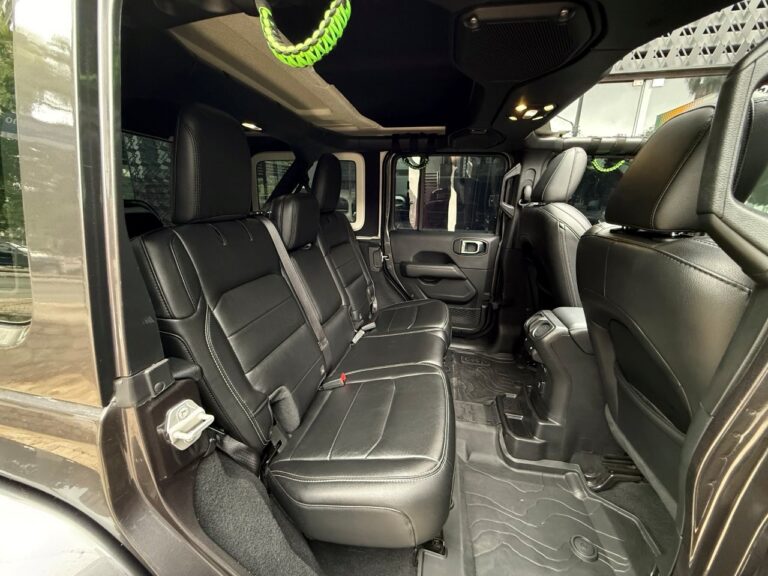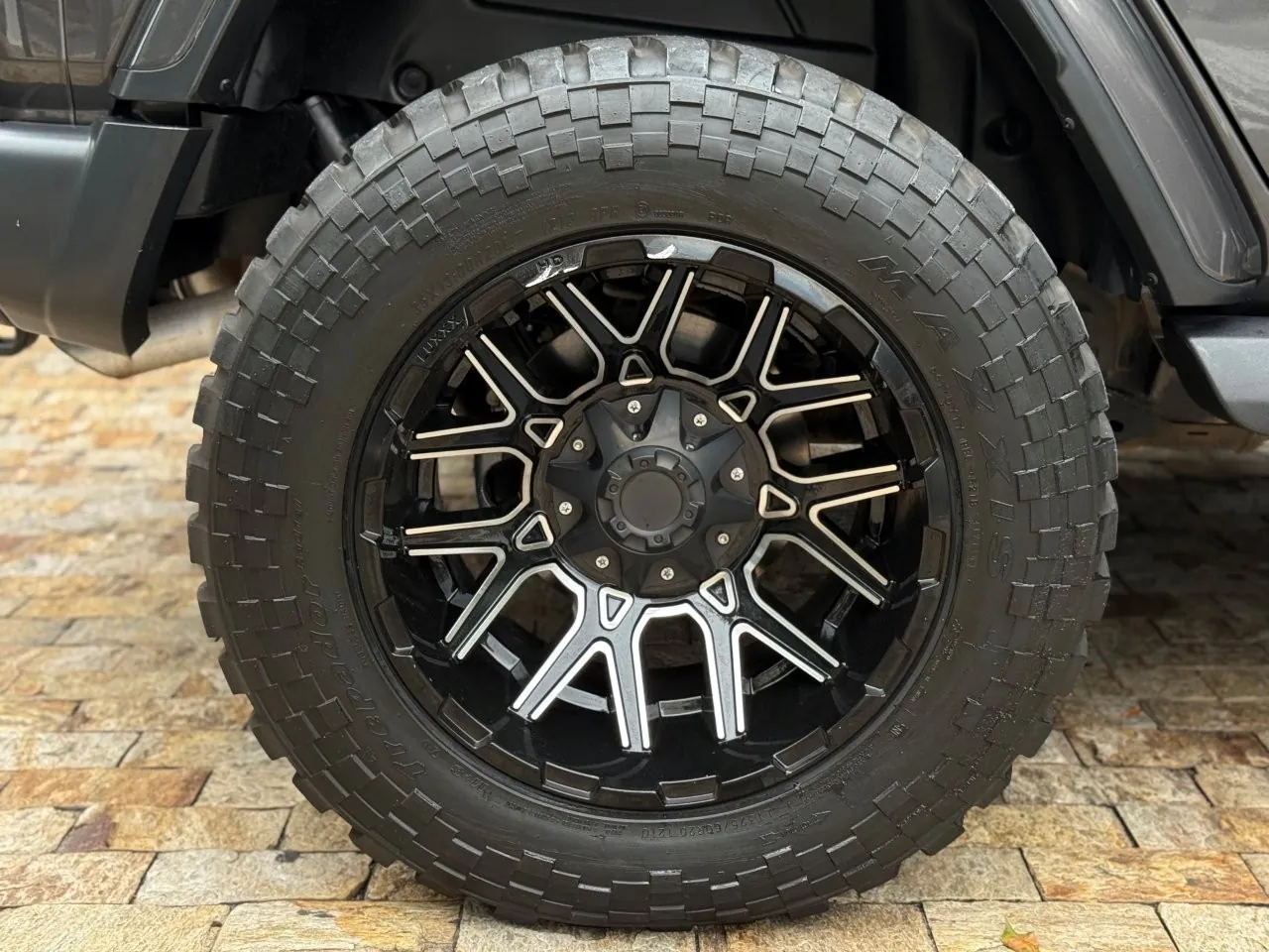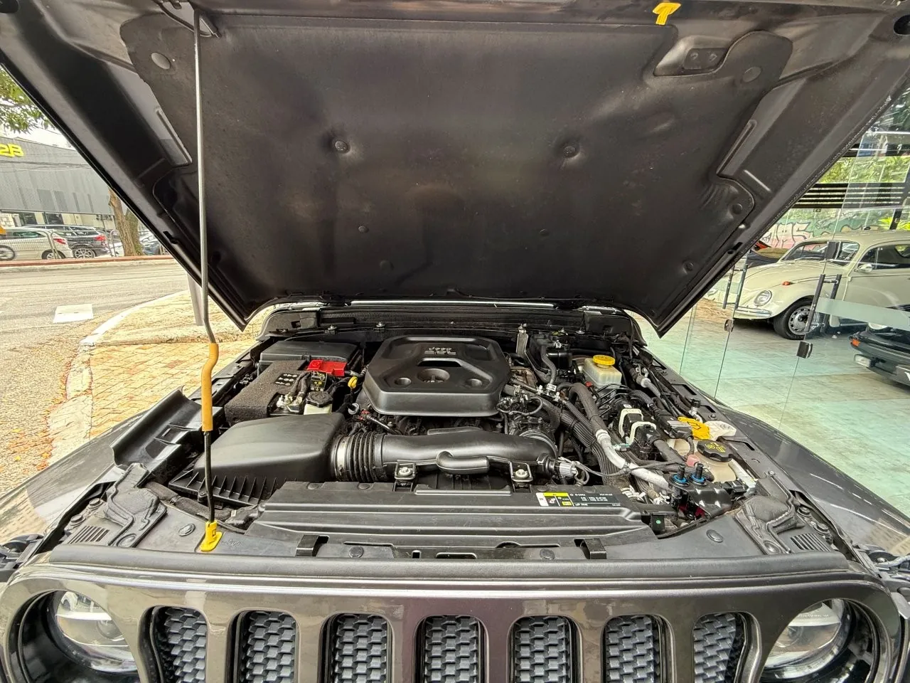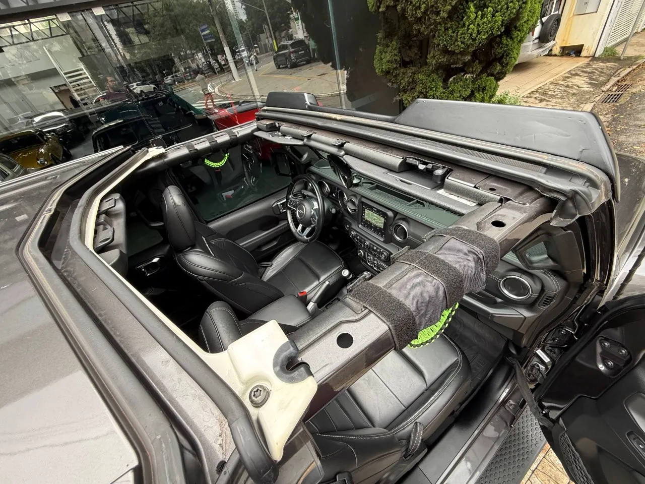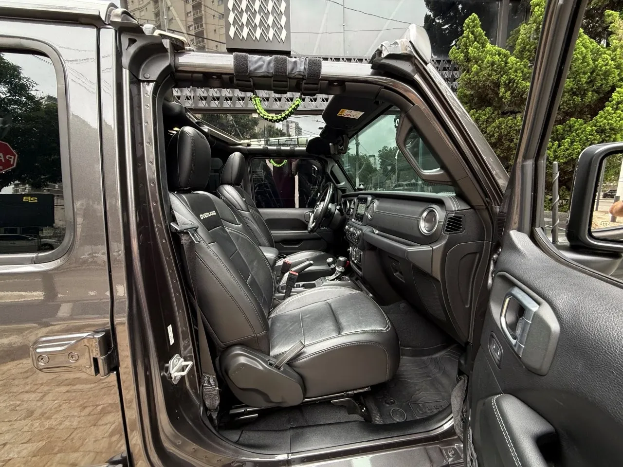 Na elegante cor granite cristal metálico com interior em couro e apenas 37 mil km. Esse exemplar recebeu customização com estilo off road, incluindo rodas, pneus e lift. Equipado com motor 2.0 turbo a gasolina e câmbio AT8. Capota e portas removíveis, multimídia integrada com áudio Alpine e bancos em couro com inscrição Overland. Completo de acessórios como rodas aro 20 com pneus Maxxis, lift de 3”, estribos, engate removível, acabamentos externos em preto brilhante, farol de milha em LED no teto e película 3M. Um Wrangler pronto para quem quer presença, conforto e espírito off road em um único carro.