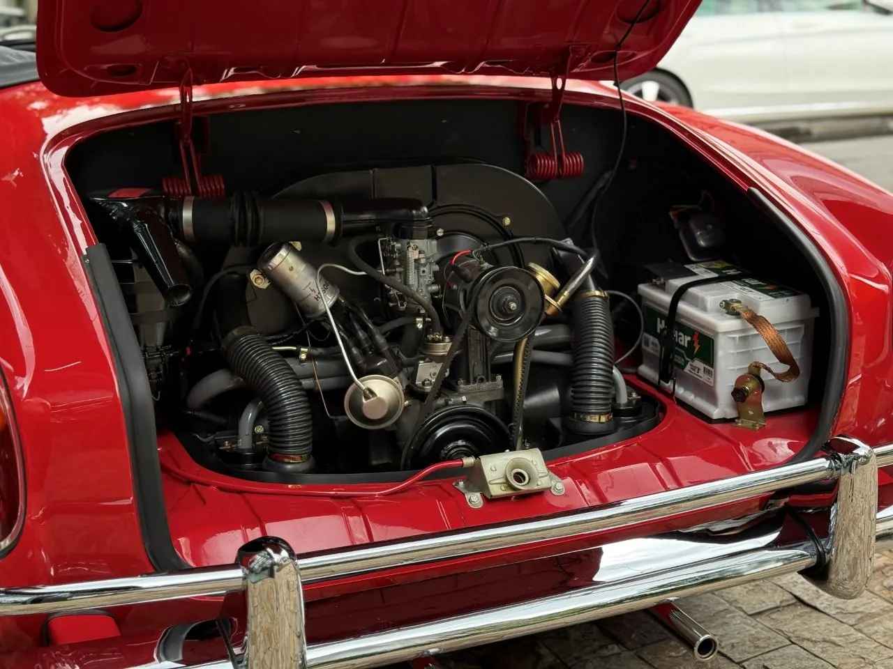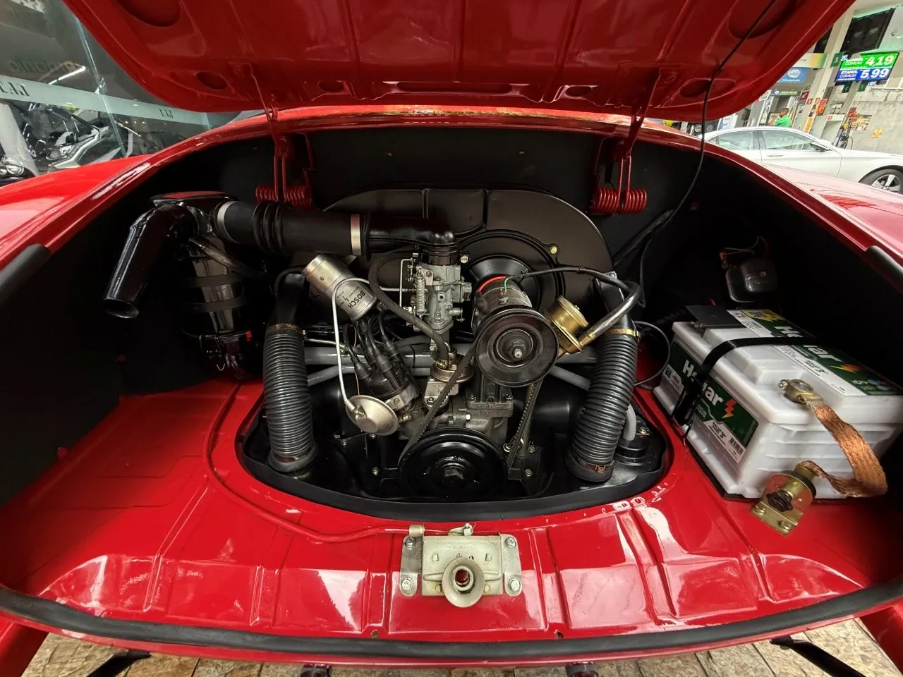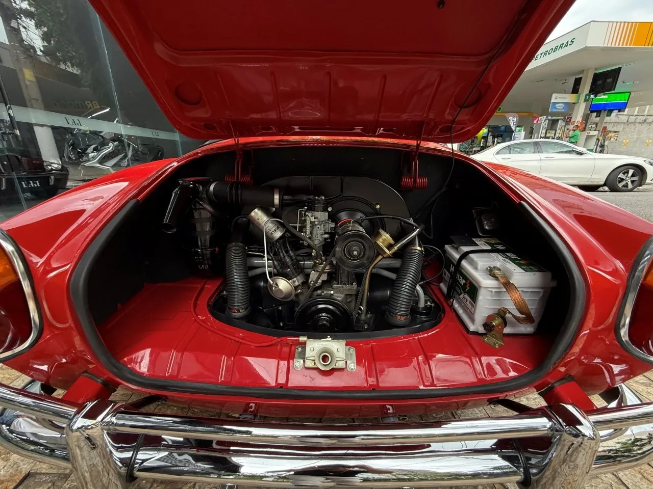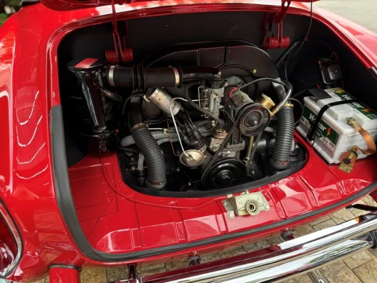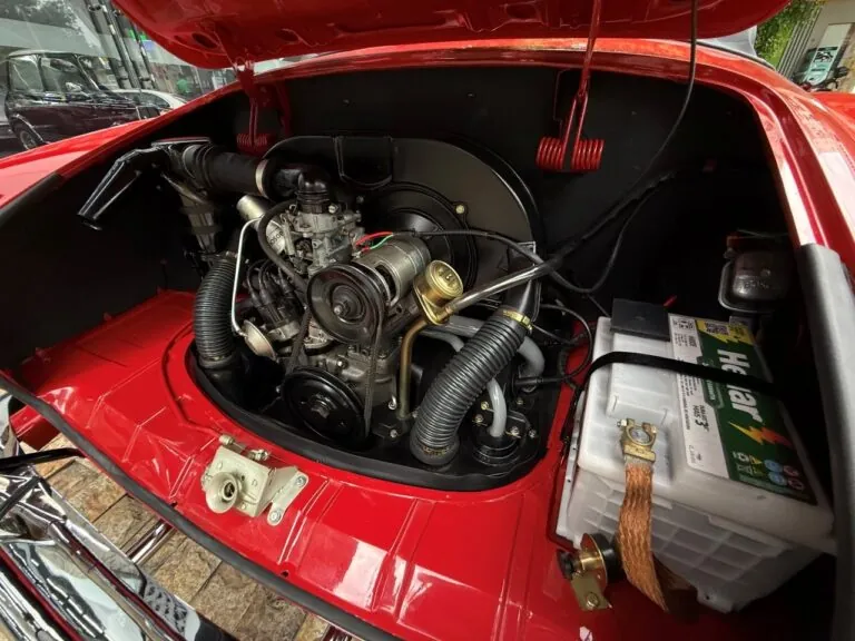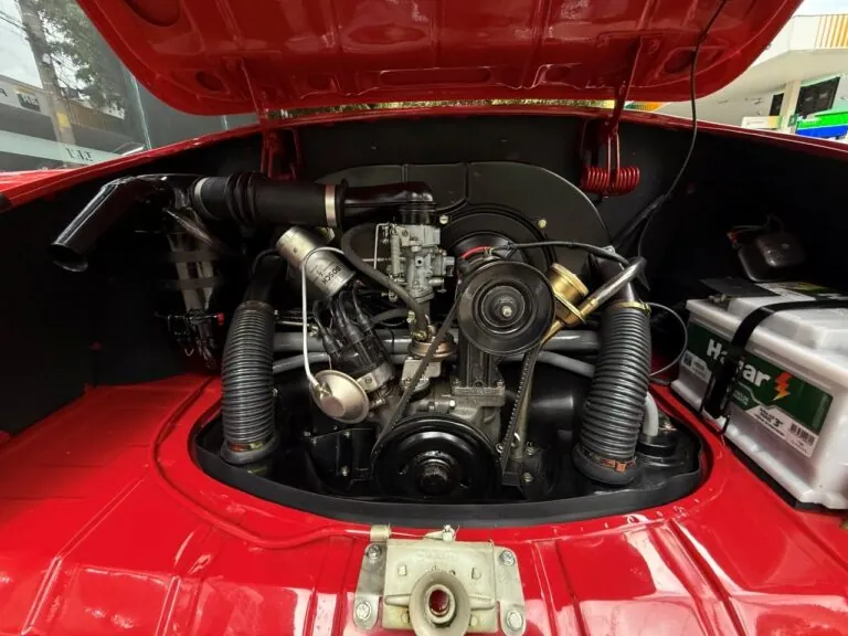 O Super Fuscão 1600 S, o famoso Bizorrão, um dos Fuscas mais ousados que a Volkswagen já produziu no Brasil. Motor 1.6 com dupla carburação, cerca de 65 cv e entrada de ar exclusiva na tampa. No interior volante de três raios, bancos reclináveis, carpete no assoalho e um painel que parecia ter saído de um carro de categoria superior, com relógio, conta-giros, amperímetro e termômetro de óleo. Para um Fusca, isso era praticamente luxo. Outra assinatura do modelo era o escapamento deslocado para o lado esquerdo. Rápido para a época, ganhou fama nas ruas e foi produzido por poucos meses entre 1974 e 1975, virou raridade absoluta. Um Fusca que nasceu para ser diferente e é justamente isso que o tornou lendário.