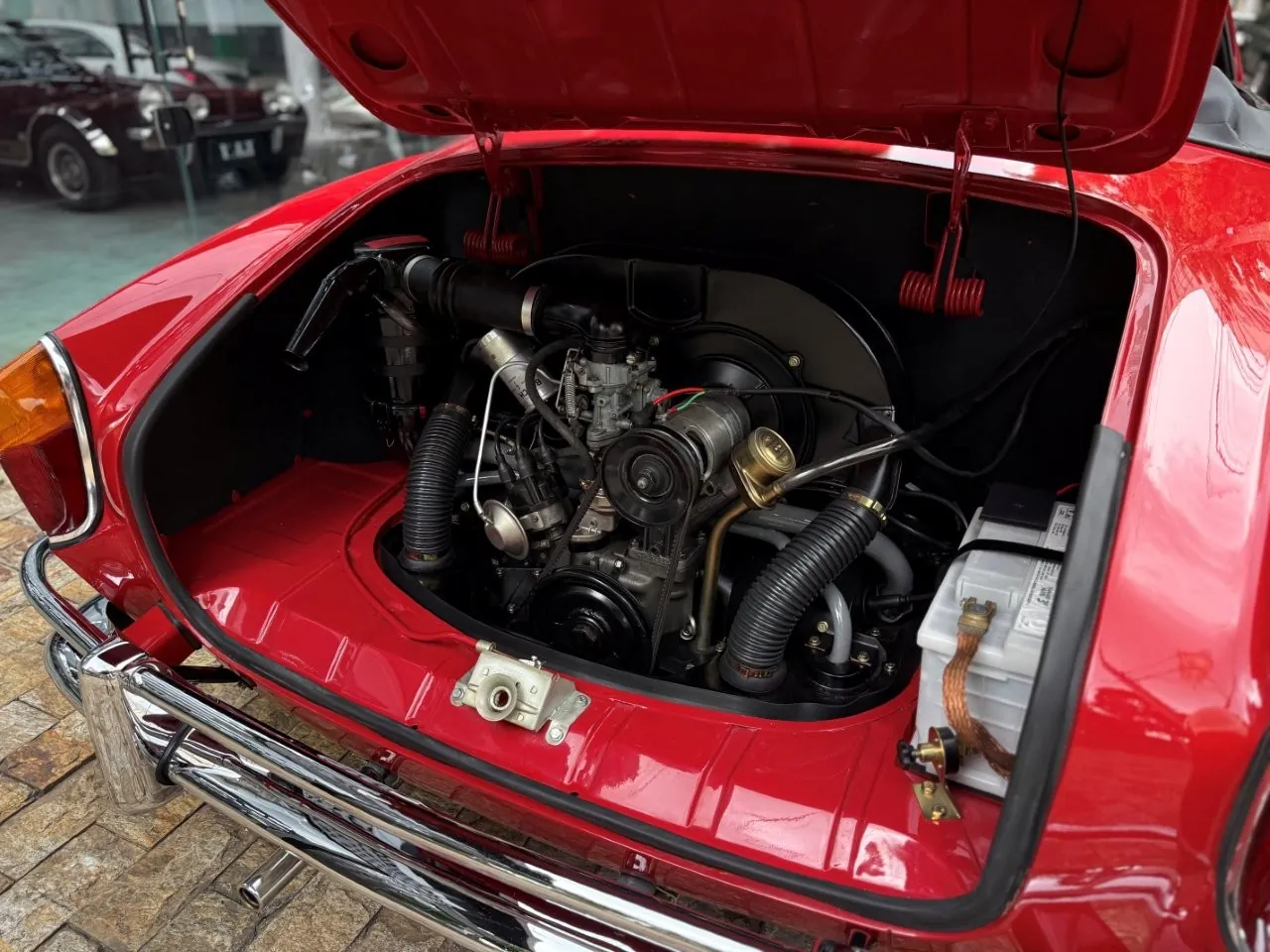 Automóvel totalmente restaurado, em estado impecável, com padrão nível de concurso. O Karmann-Ghia Conversível chegou no mercado brasileiro em 1967. Nosso Karmann é o número 005/177 original de fábrica. O projeto foi um verdadeiro marco da indústria Automobilística Brasileira, o segundo carro conversível produzido em solo nacional. Este Karmann está em perfeito estado geral e muito bem preservado na sua originalidade. Motor com bloco original, mantendo carcaça e base originais, porém preparado com pistões e cabeçote 1600 cc. Possui manual e 5 pneus Firestone novos. Simplesmente maravilhoso!