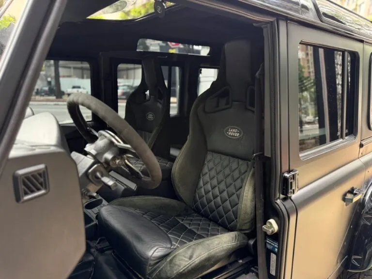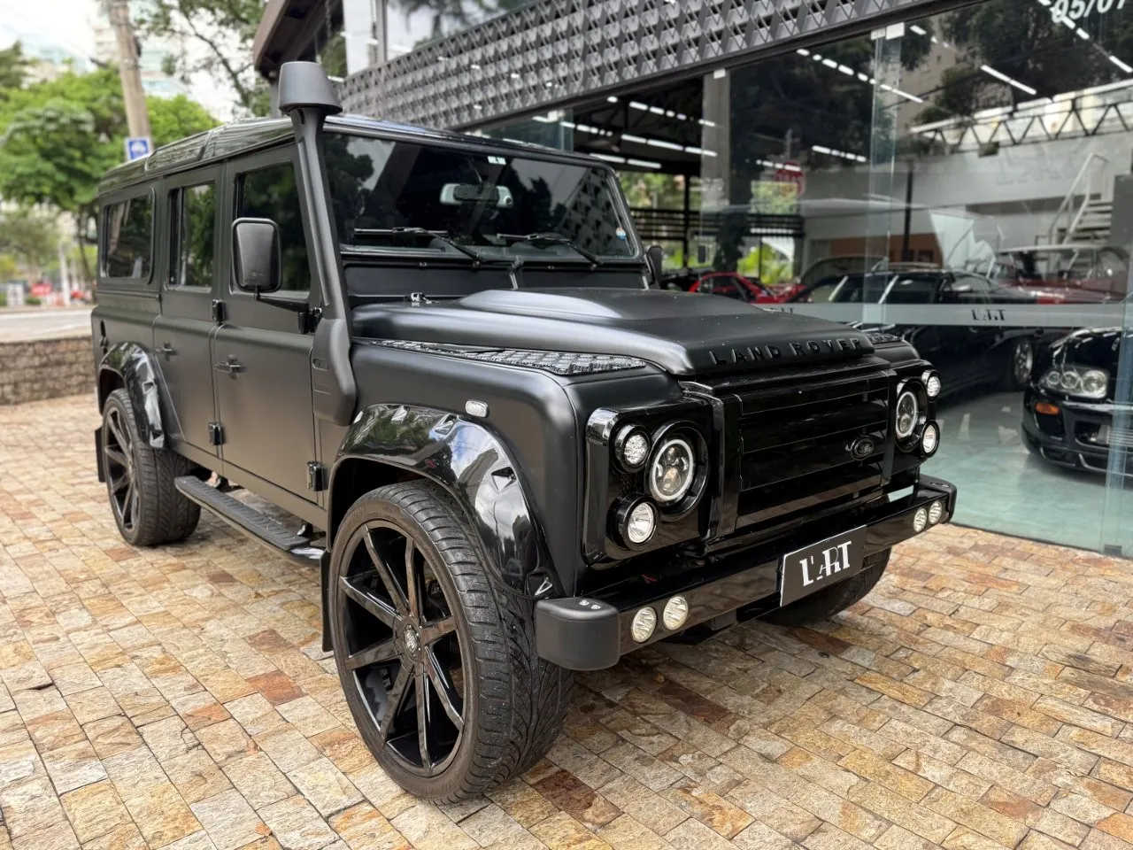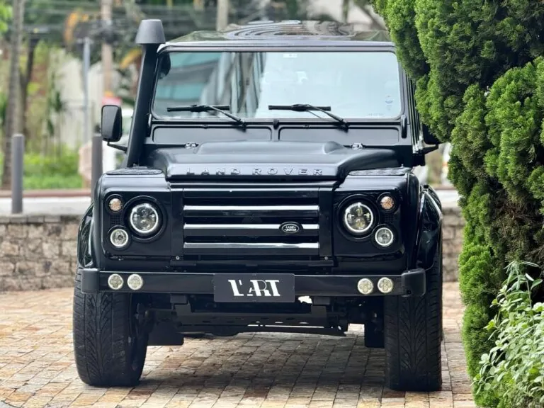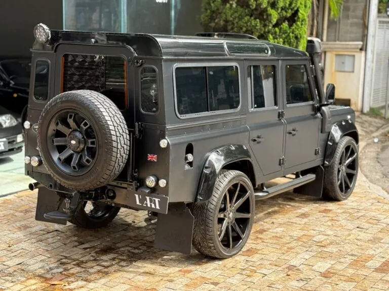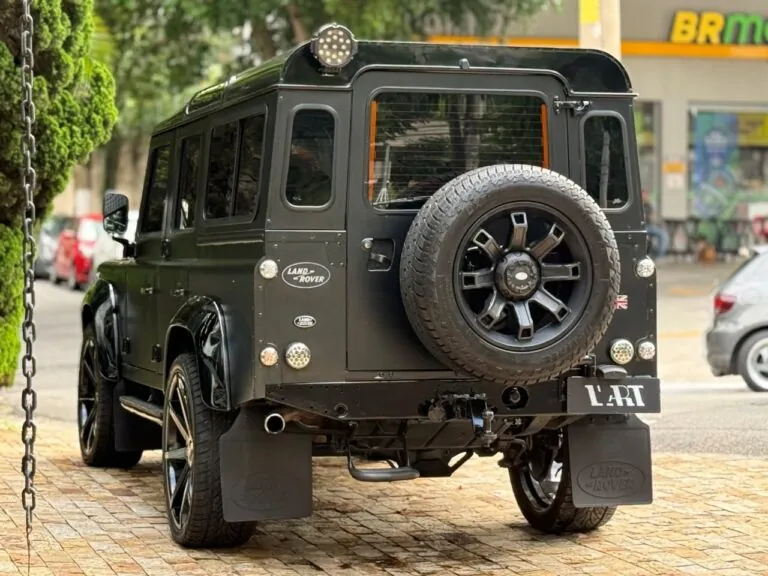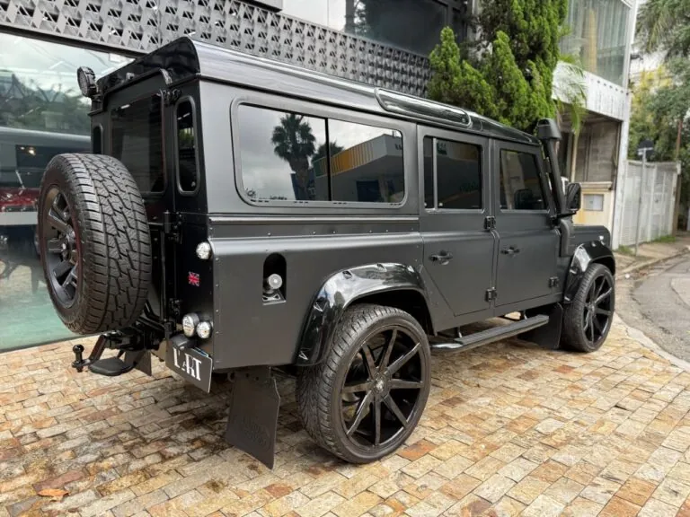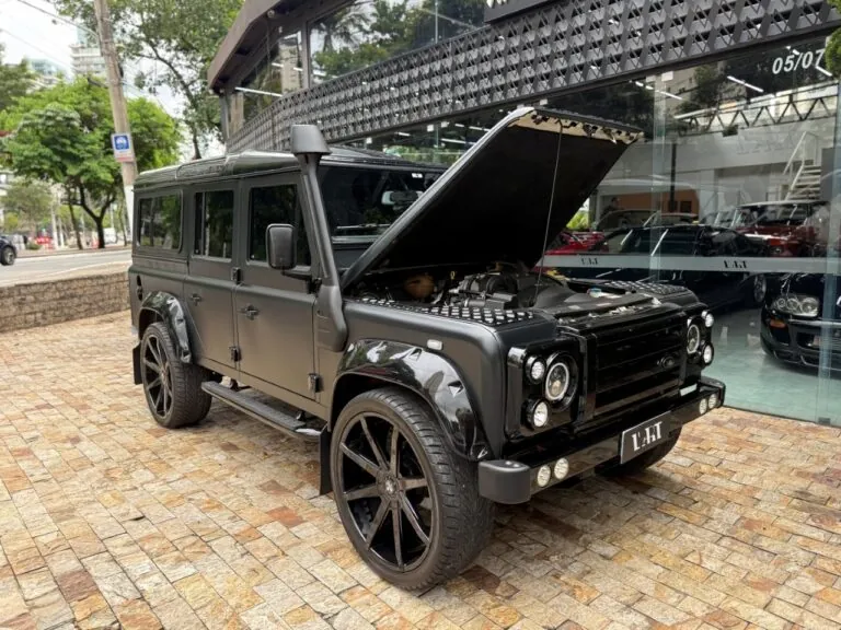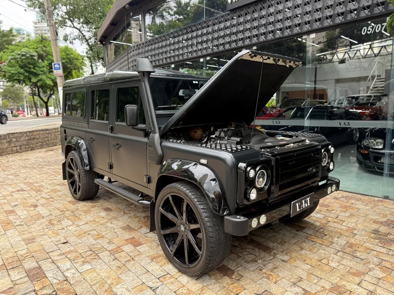 Motor 2.4 turbo diesel, quatro cilindros, 122 cv e câmbio manual de 6 marchas. Está com com 193 mil km. Um clássico utilitário britânico conhecido pela robustez mecânica e construção. Este exemplar recebeu facelift frontal com nova grade e para-choque, além de faróis e milhas atualizados. Os piscas e setas do facelift são em LED. Os fenders originais foram pintados em black piano e o carro recebeu envelopamento completo em adesivo premium Avery Black Satin. Conta ainda com rodas aro 22”, bancos concha originais Land Rover revestidos em Alcântara, volante Land Rover em inox com Alcântara, sistema multimídia Pioneer com espelhamento Apple CarPlay e subwoofer. Todas as peças substituídas são originais Land Rover e as peças originais do carro estão guardadas.