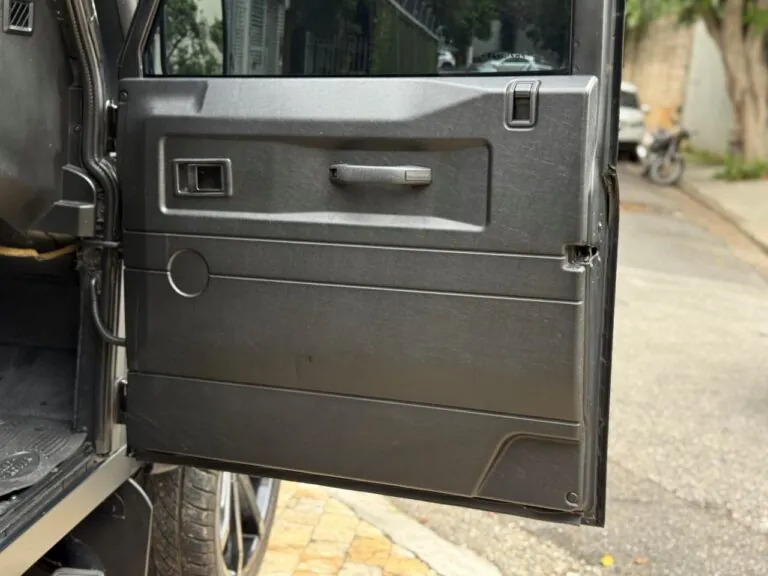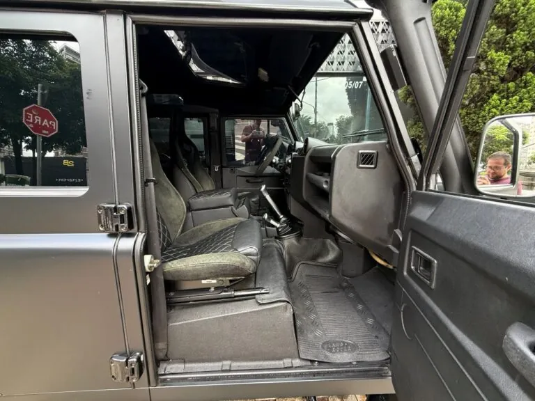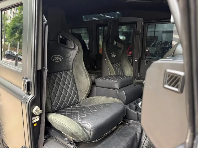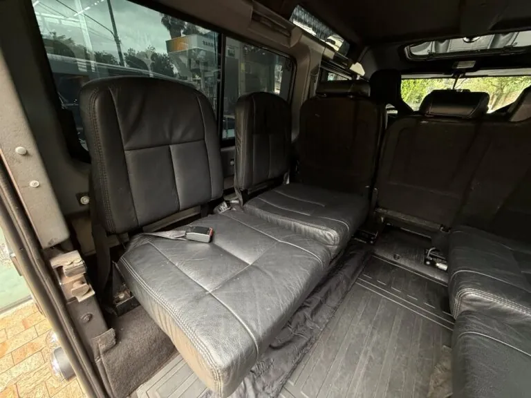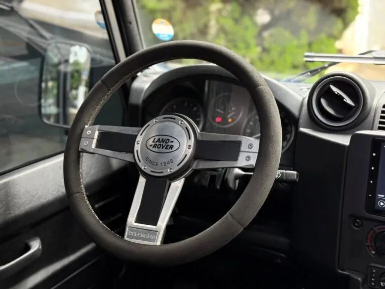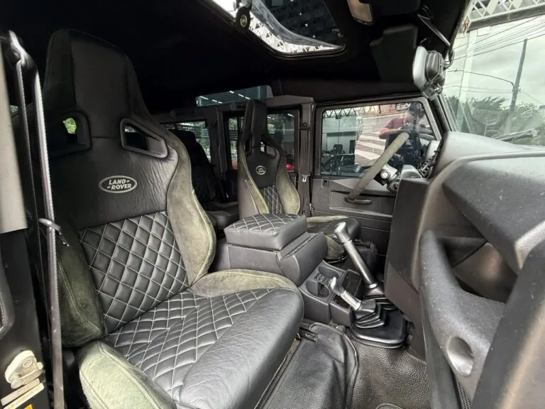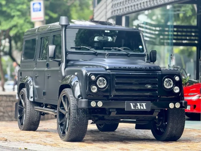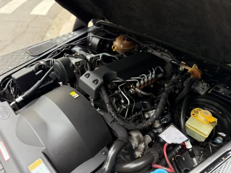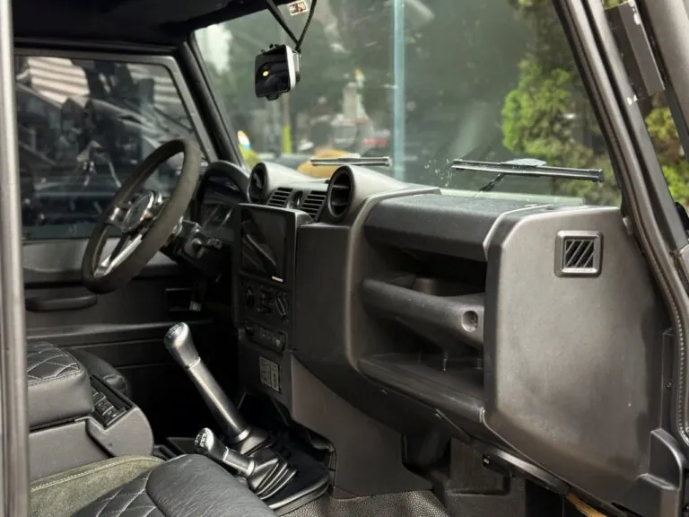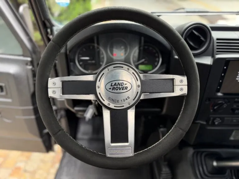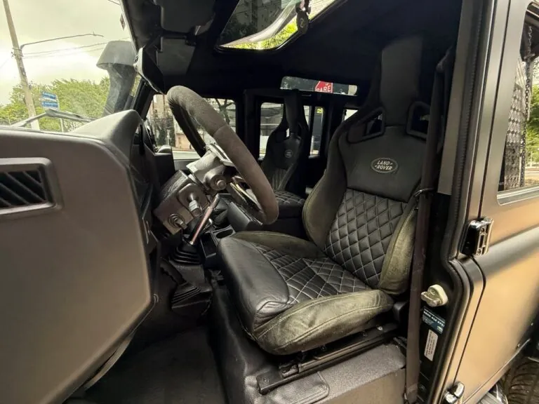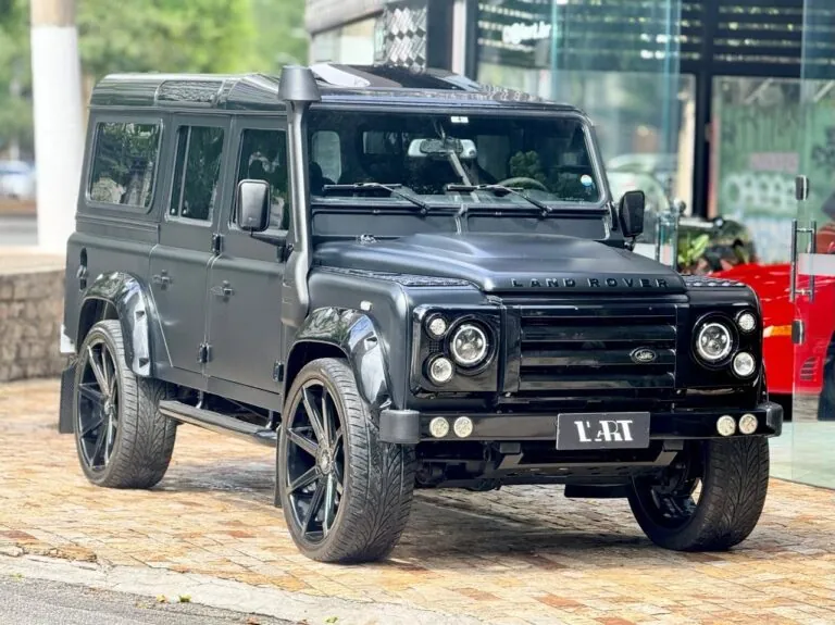 Motor 2.4 turbo diesel, quatro cilindros, 122 cv e câmbio manual de 6 marchas. Está com com 193 mil km. Um clássico utilitário britânico conhecido pela robustez mecânica e construção. Este exemplar recebeu facelift frontal com nova grade e para-choque, além de faróis e milhas atualizados. Os piscas e setas do facelift são em LED. Os fenders originais foram pintados em black piano e o carro recebeu envelopamento completo em adesivo premium Avery Black Satin. Conta ainda com rodas aro 22”, bancos concha originais Land Rover revestidos em Alcântara, volante Land Rover em inox com Alcântara, sistema multimídia Pioneer com espelhamento Apple CarPlay e subwoofer. Todas as peças substituídas são originais Land Rover e as peças originais do carro estão guardadas.