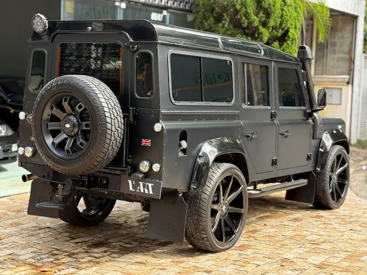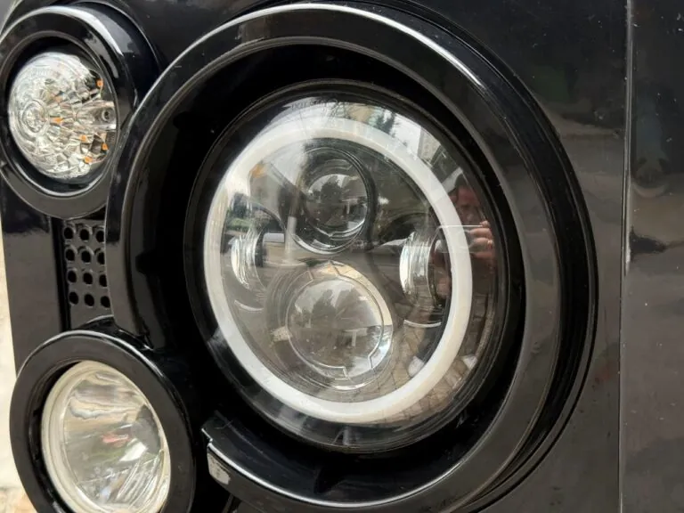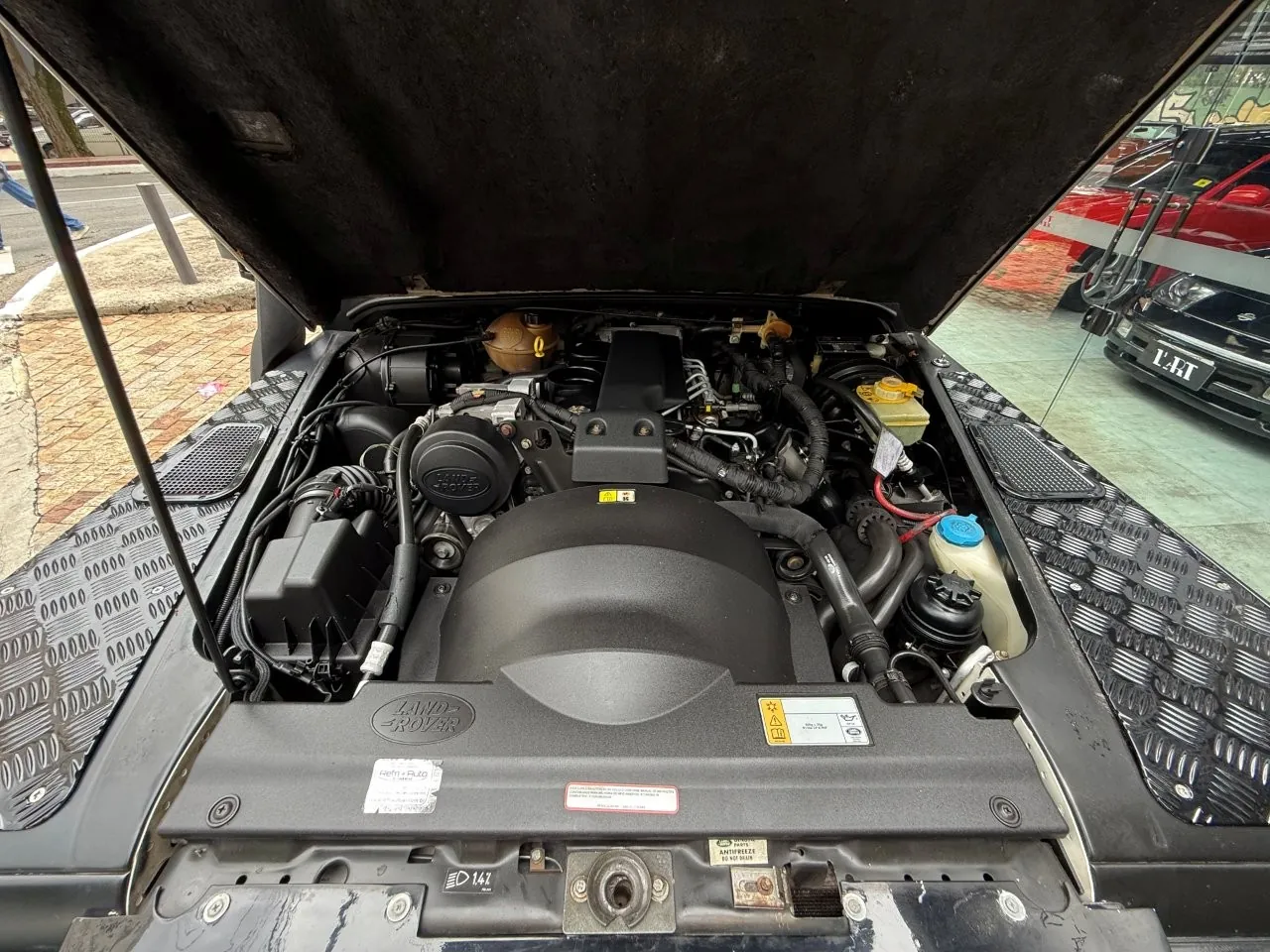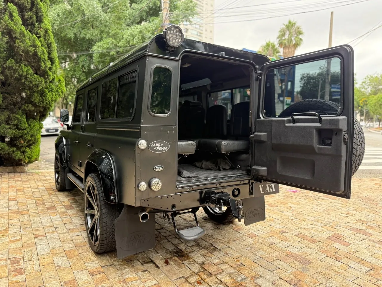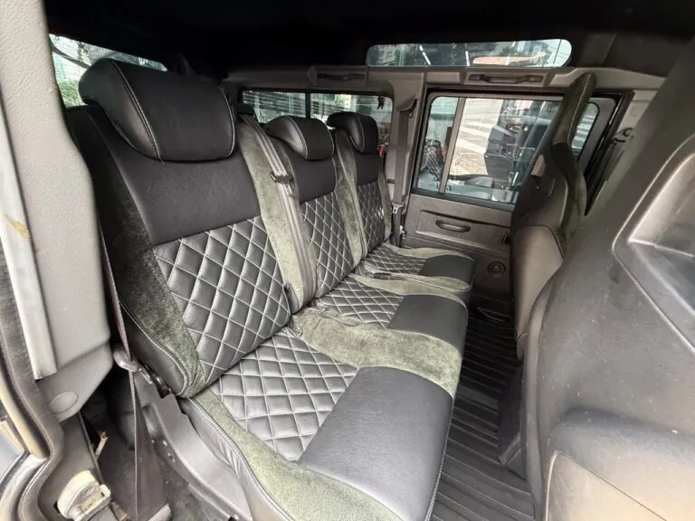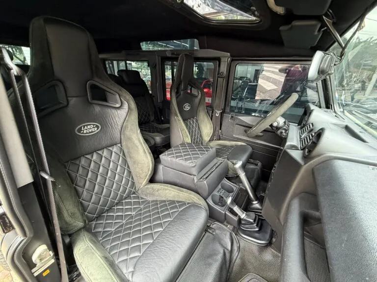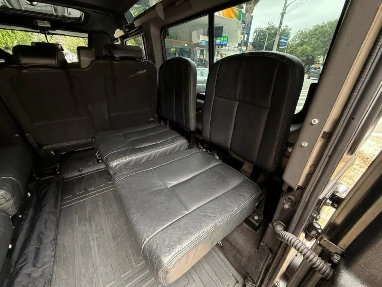 Motor 2.4 turbo diesel, quatro cilindros, 122 cv e câmbio manual de 6 marchas. Está com com 193 mil km. Um clássico utilitário britânico conhecido pela robustez mecânica e construção. Este exemplar recebeu facelift frontal com nova grade e para-choque, além de faróis e milhas atualizados. Os piscas e setas do facelift são em LED. Os fenders originais foram pintados em black piano e o carro recebeu envelopamento completo em adesivo premium Avery Black Satin. Conta ainda com rodas aro 22”, bancos concha originais Land Rover revestidos em Alcântara, volante Land Rover em inox com Alcântara, sistema multimídia Pioneer com espelhamento Apple CarPlay e subwoofer. Todas as peças substituídas são originais Land Rover e as peças originais do carro estão guardadas.