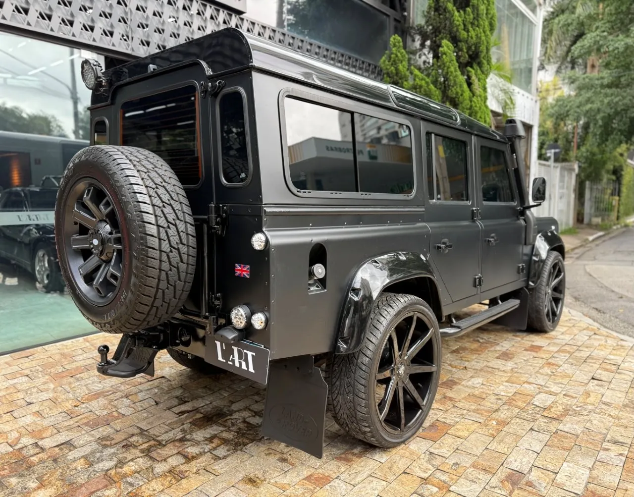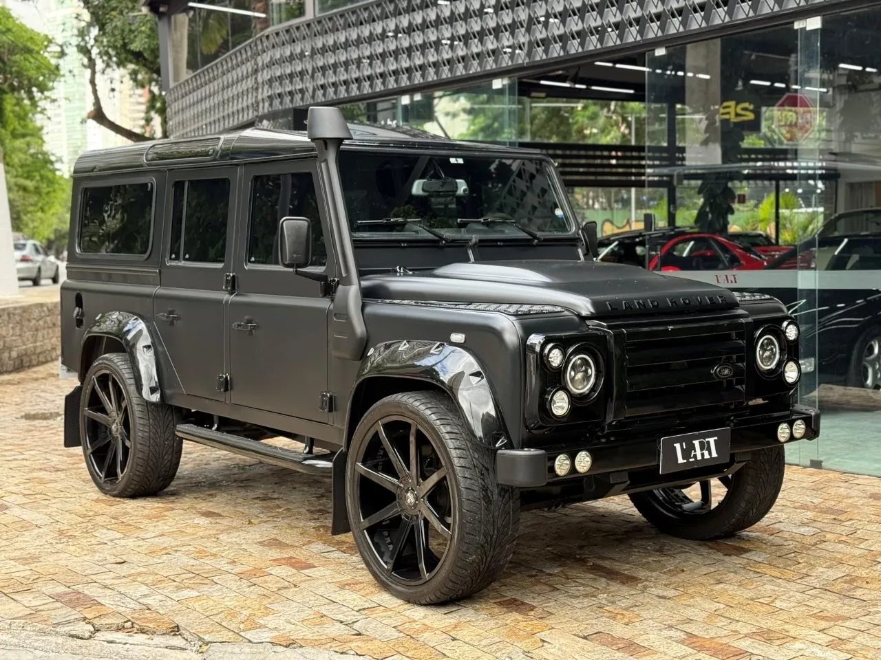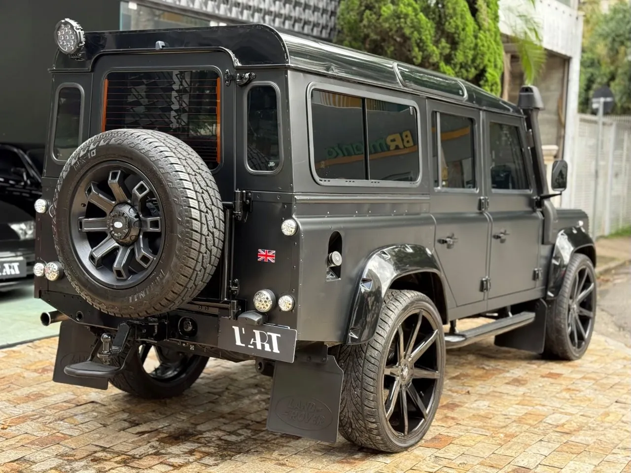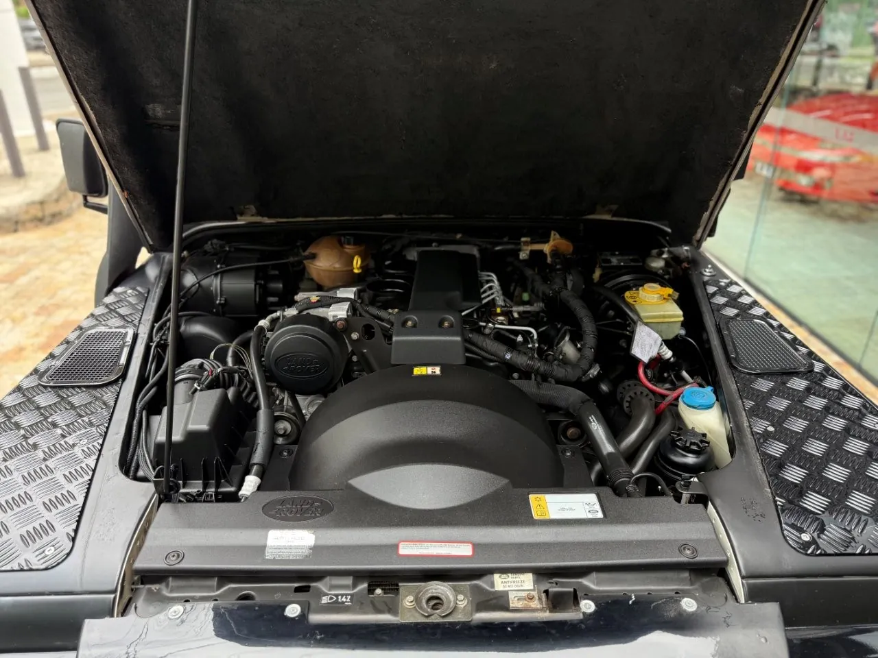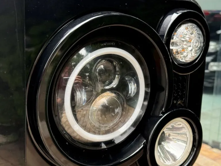 Motor 2.4 turbo diesel, quatro cilindros, 122 cv e câmbio manual de 6 marchas. Está com com 193 mil km. Um clássico utilitário britânico conhecido pela robustez mecânica e construção. Este exemplar recebeu facelift frontal com nova grade e para-choque, além de faróis e milhas atualizados. Os piscas e setas do facelift são em LED. Os fenders originais foram pintados em black piano e o carro recebeu envelopamento completo em adesivo premium Avery Black Satin. Conta ainda com rodas aro 22”, bancos concha originais Land Rover revestidos em Alcântara, volante Land Rover em inox com Alcântara, sistema multimídia Pioneer com espelhamento Apple CarPlay e subwoofer. Todas as peças substituídas são originais Land Rover e as peças originais do carro estão guardadas.