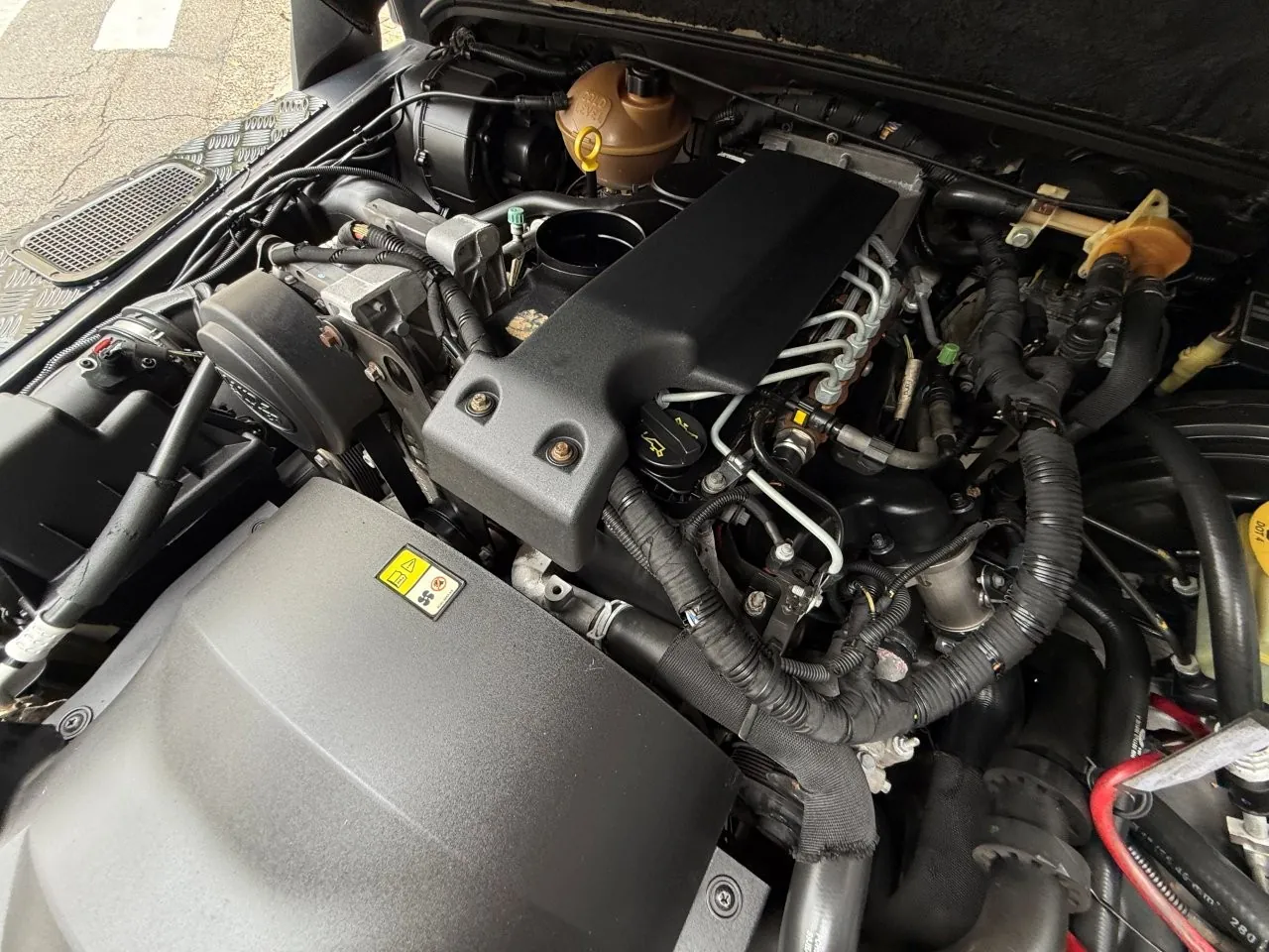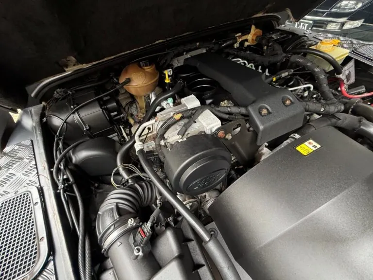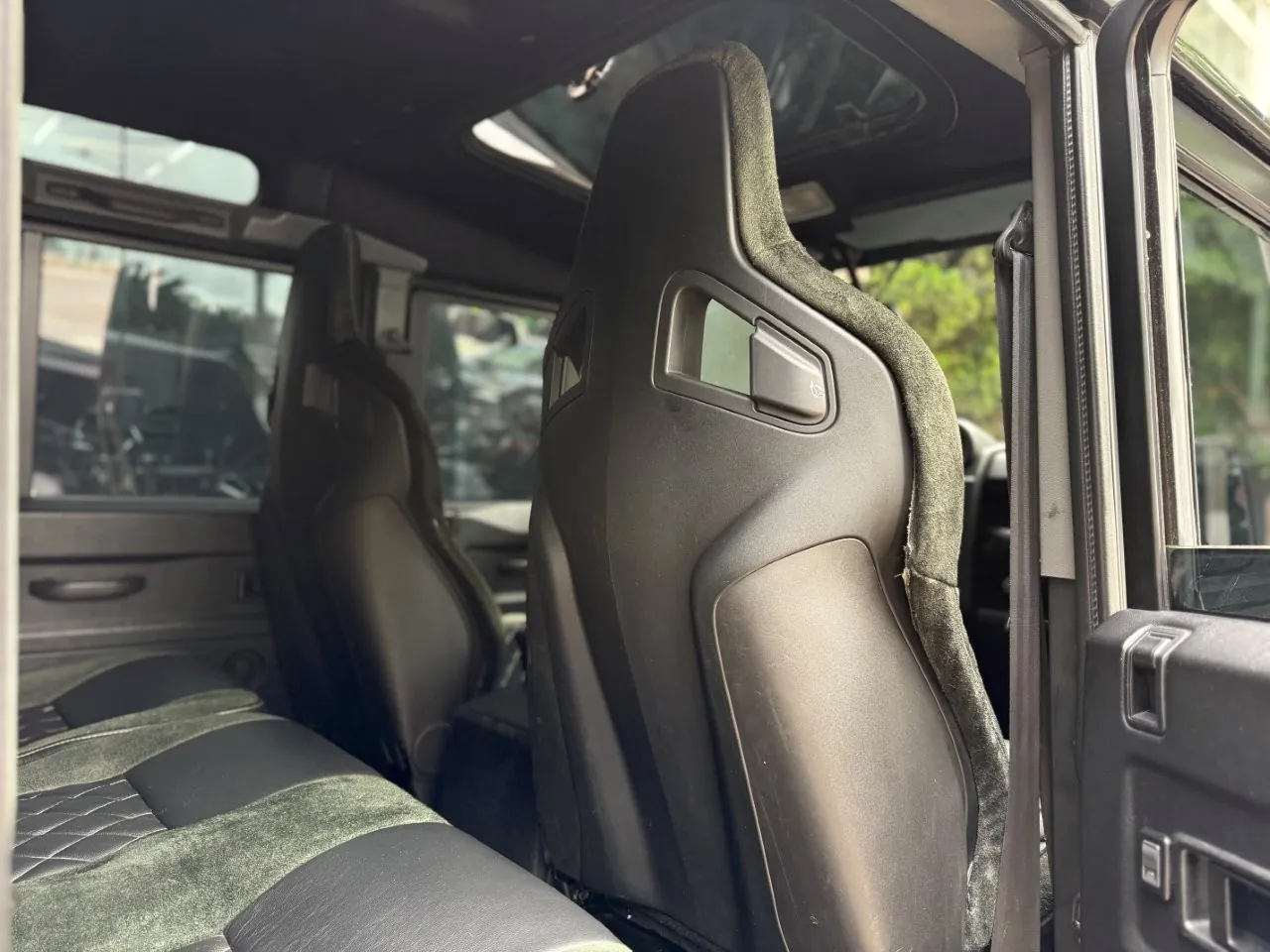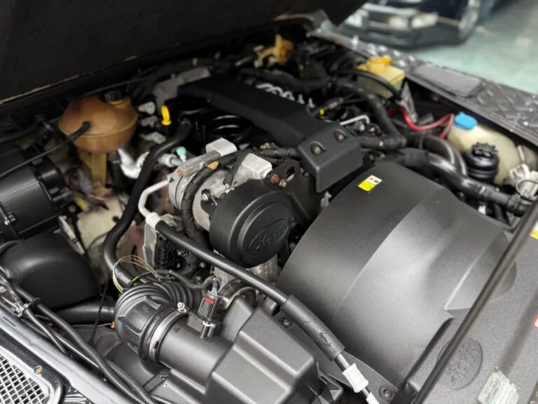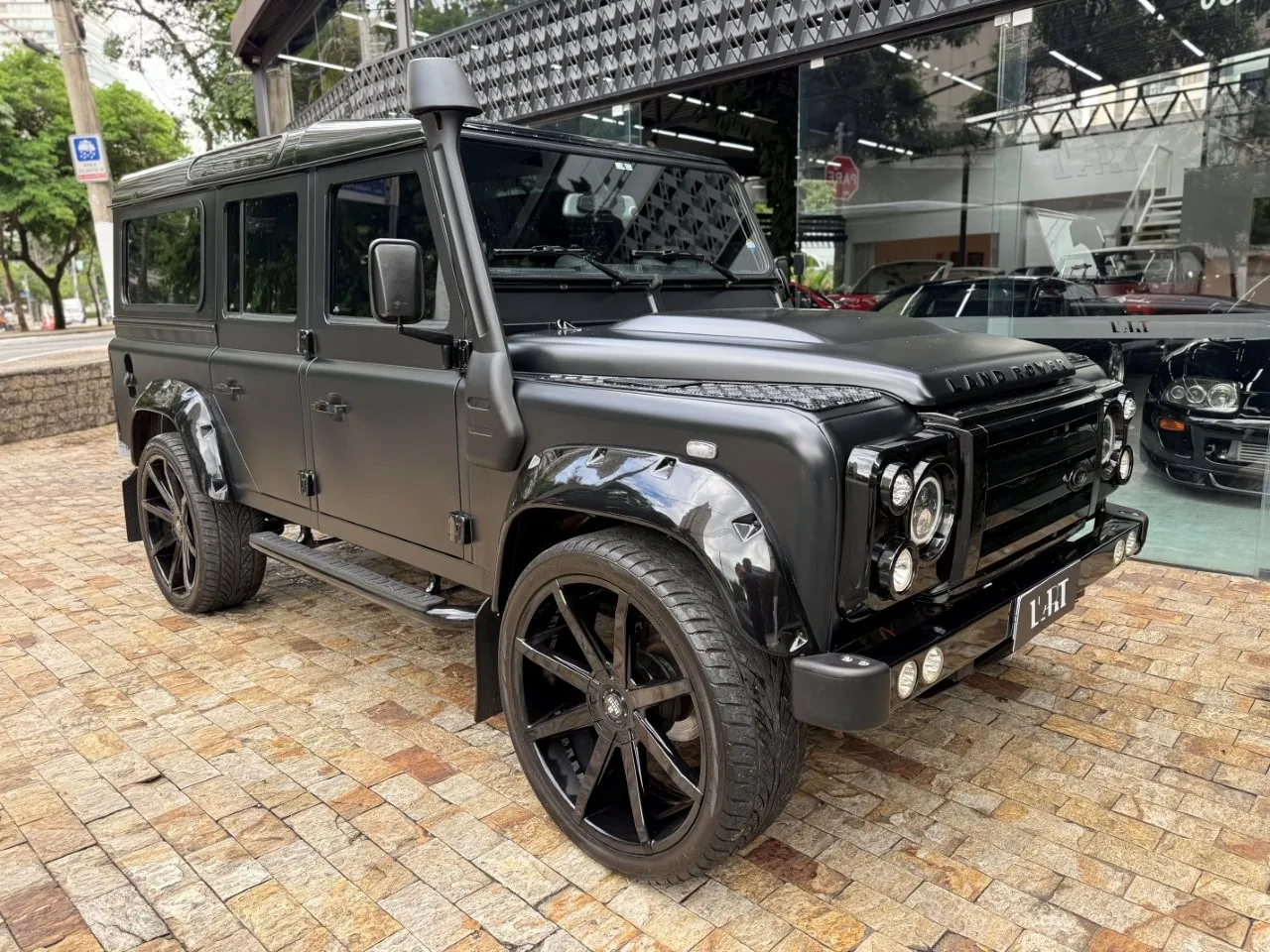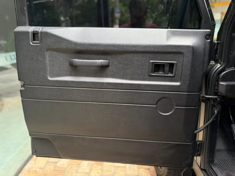 Motor 2.4 turbo diesel, quatro cilindros, 122 cv e câmbio manual de 6 marchas. Está com com 193 mil km. Um clássico utilitário britânico conhecido pela robustez mecânica e construção. Este exemplar recebeu facelift frontal com nova grade e para-choque, além de faróis e milhas atualizados. Os piscas e setas do facelift são em LED. Os fenders originais foram pintados em black piano e o carro recebeu envelopamento completo em adesivo premium Avery Black Satin. Conta ainda com rodas aro 22”, bancos concha originais Land Rover revestidos em Alcântara, volante Land Rover em inox com Alcântara, sistema multimídia Pioneer com espelhamento Apple CarPlay e subwoofer. Todas as peças substituídas são originais Land Rover e as peças originais do carro estão guardadas.