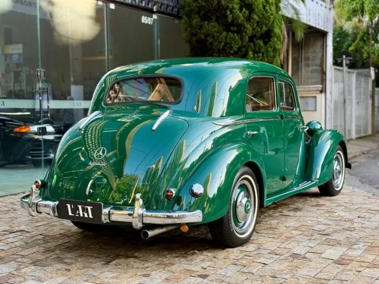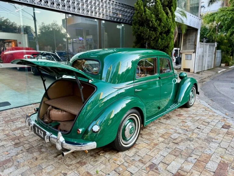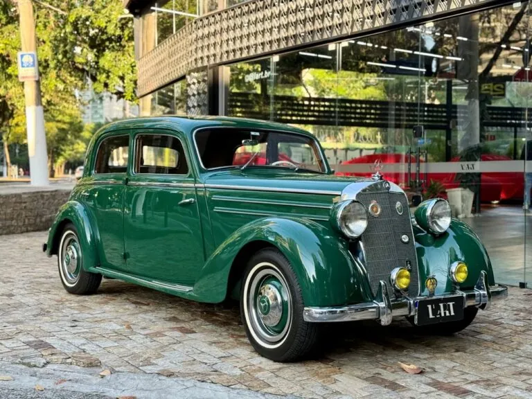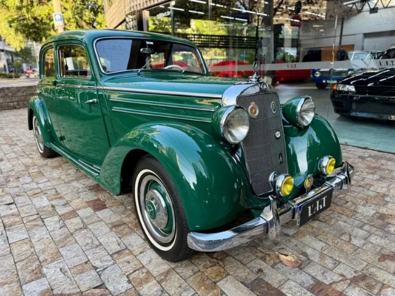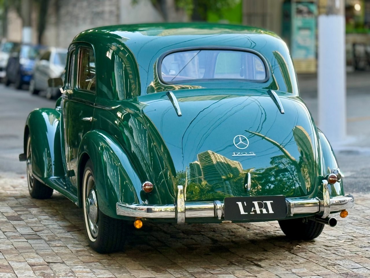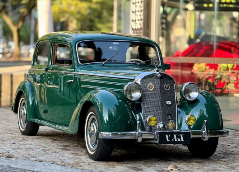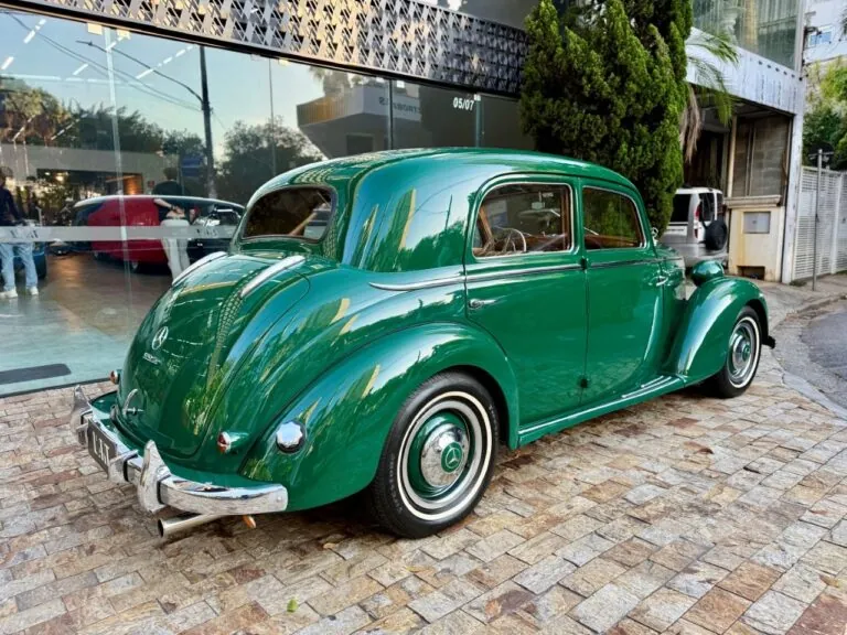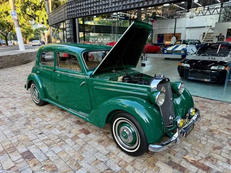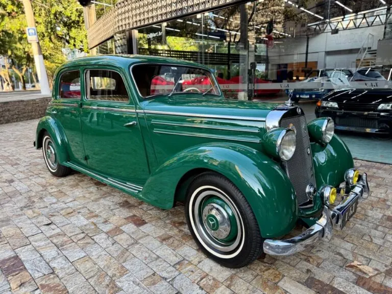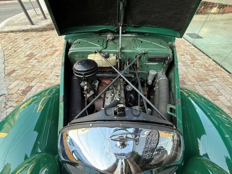 As Mercedes da década de 50 são simplesmente lindas… Motor 4 cilindros em linha de 1.8 litros e 52 HP com velocidade máxima de 122 Km/h. Câmbio mecânico de 4 velocidades e tração traseira. As suspensões dianteira e traseira usam molas helicoidais com barra estabilizadora. Considerado na sua época um carro para diretores de empresa dado a sua elegância e praticidade. Essa Mercedes 170 S está em ótimo estado geral.