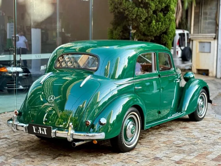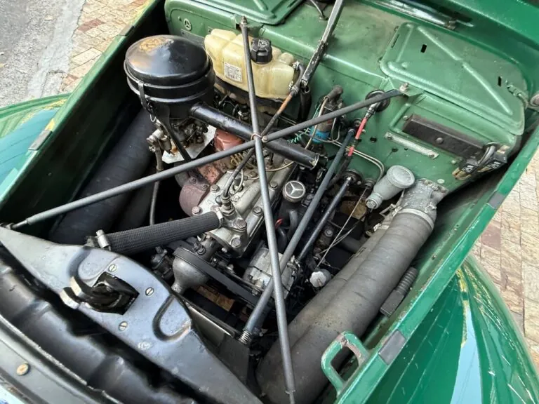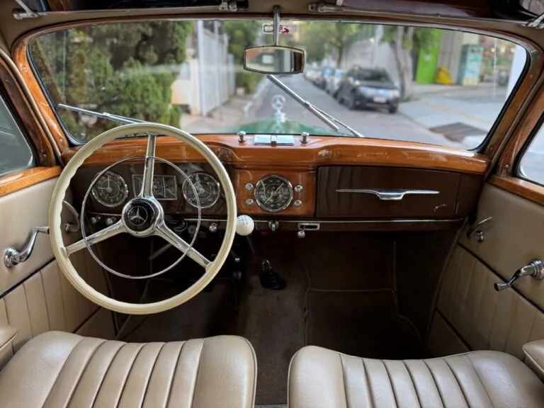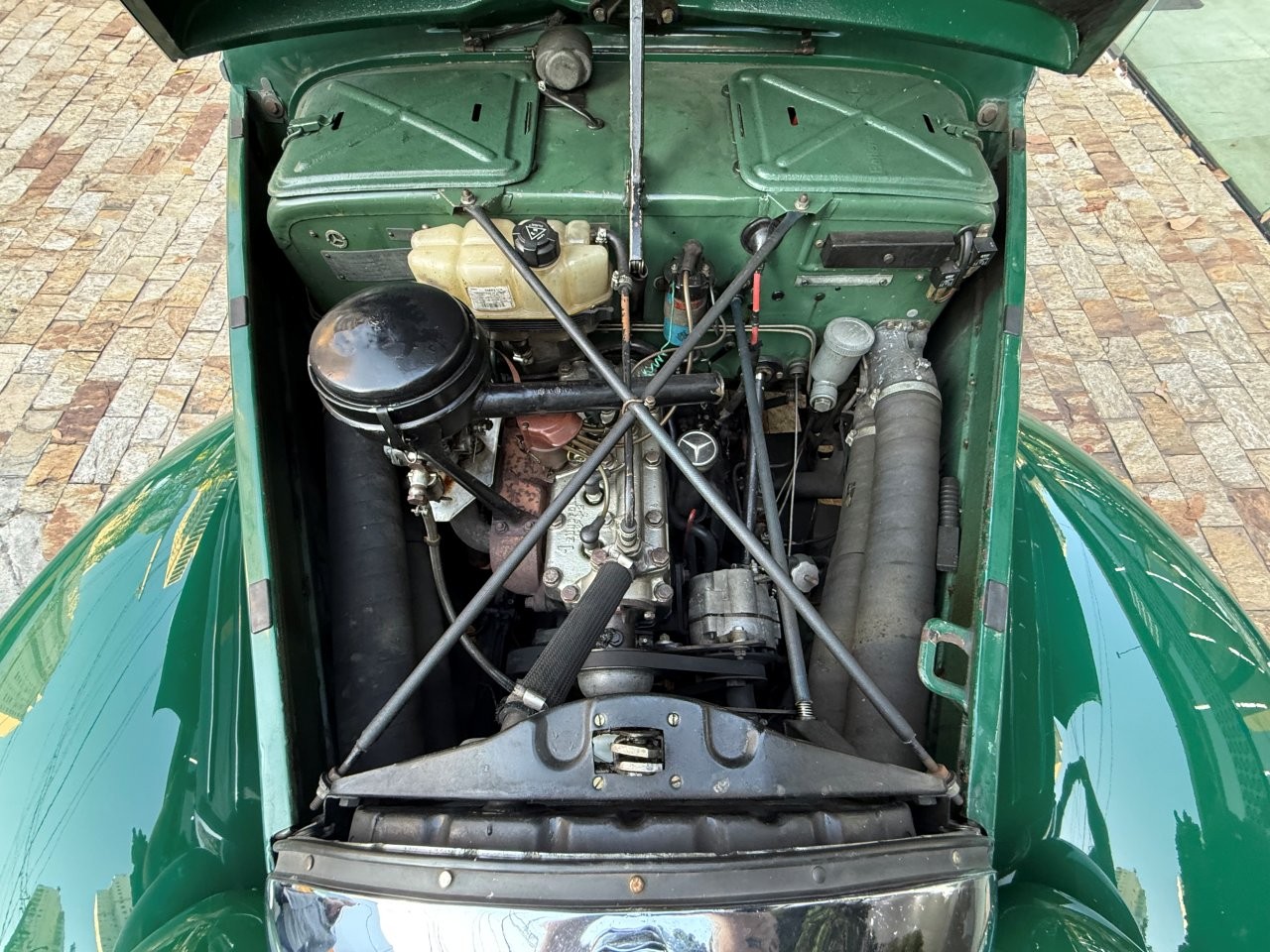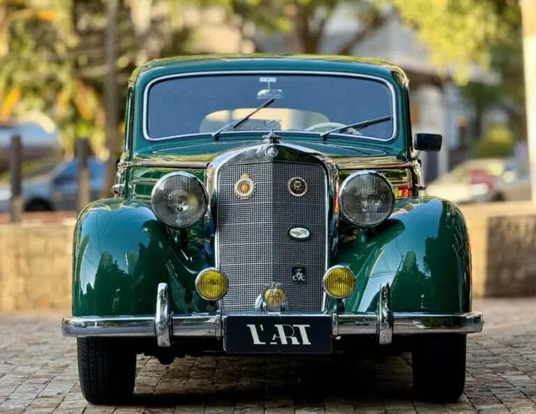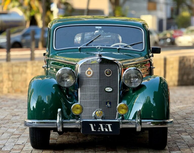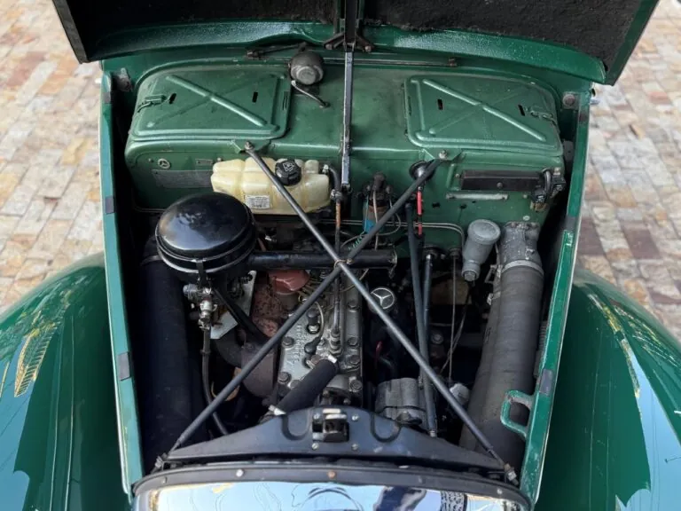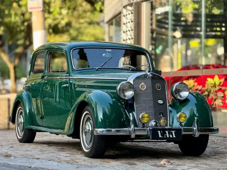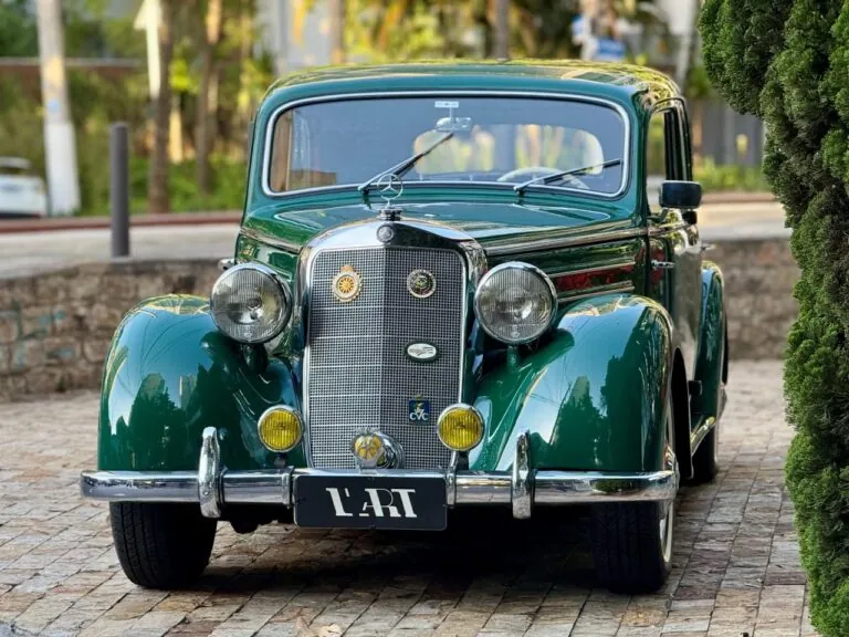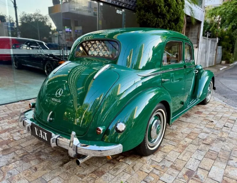 As Mercedes da década de 50 são simplesmente lindas… Motor 4 cilindros em linha de 1.8 litros e 52 HP com velocidade máxima de 122 Km/h. Câmbio mecânico de 4 velocidades e tração traseira. As suspensões dianteira e traseira usam molas helicoidais com barra estabilizadora. Considerado na sua época um carro para diretores de empresa dado a sua elegância e praticidade. Essa Mercedes 170 S está em ótimo estado geral.