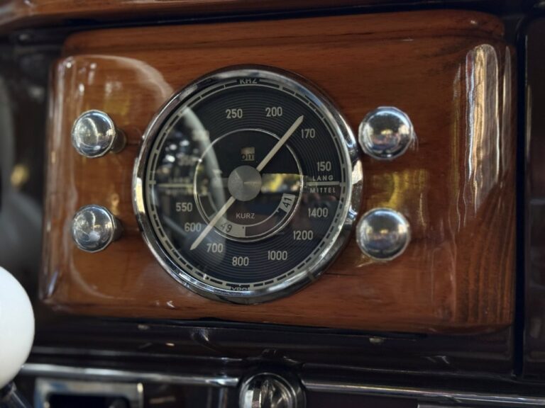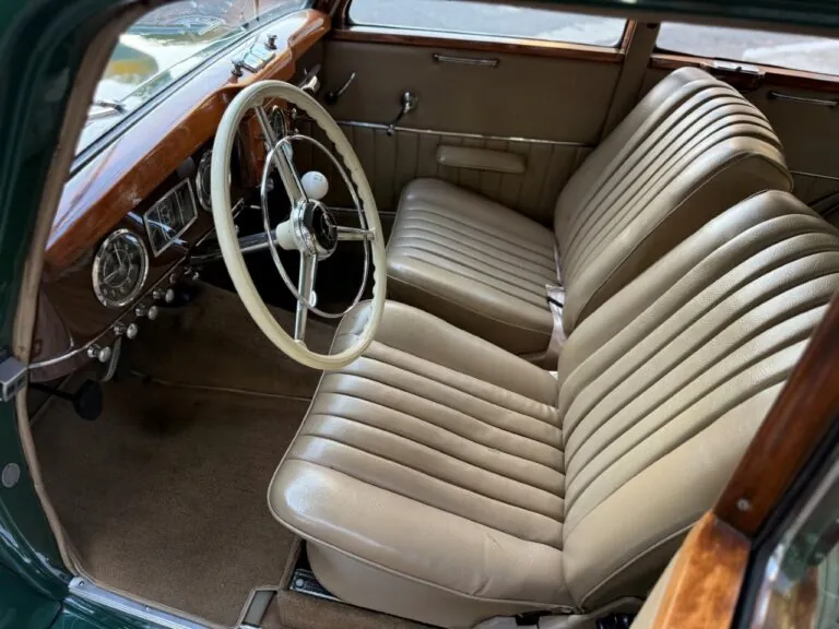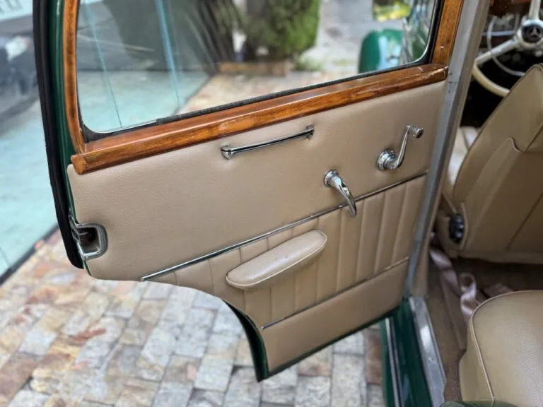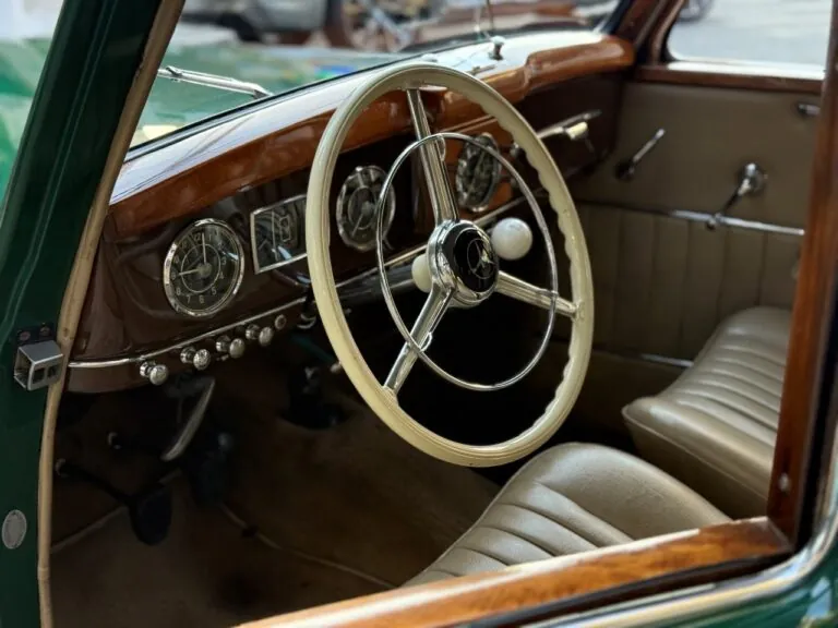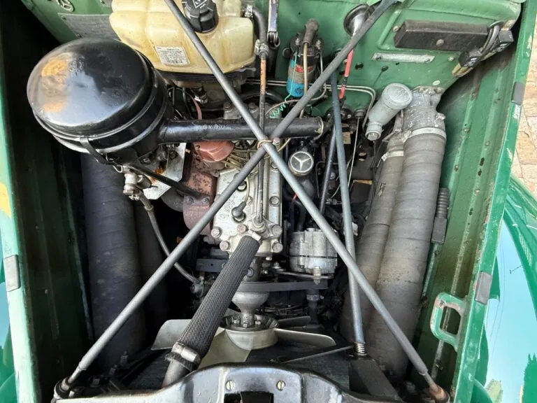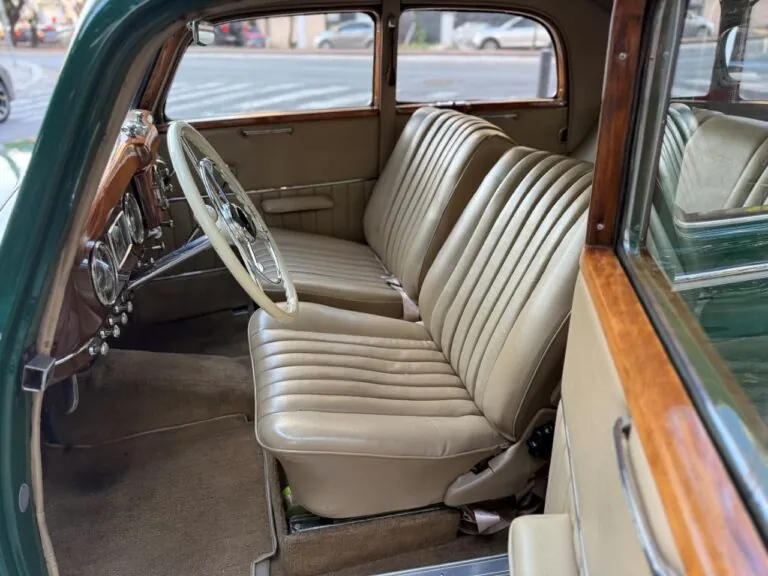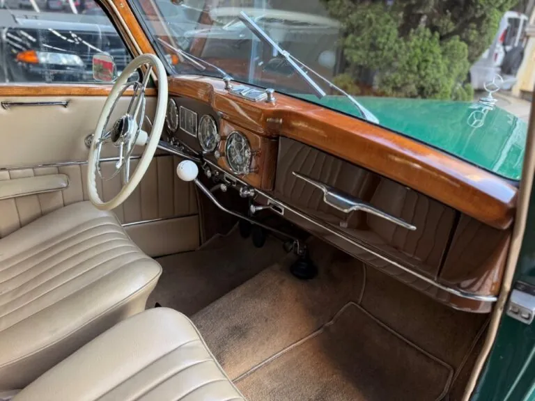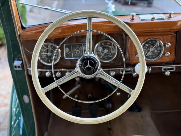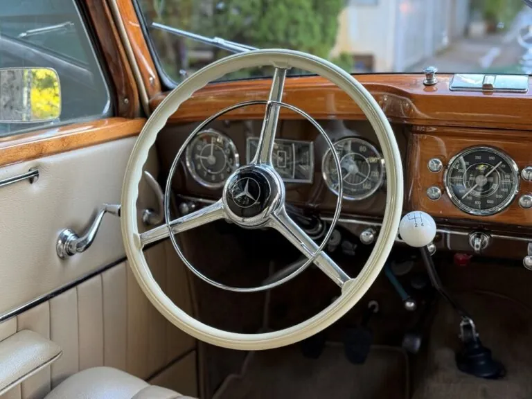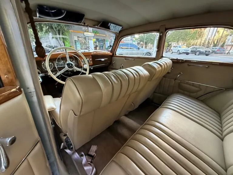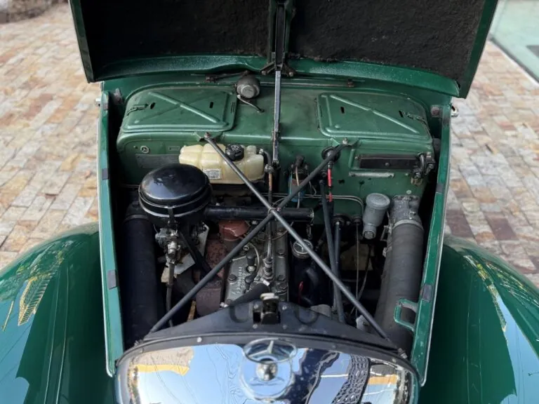 As Mercedes da década de 50 são simplesmente lindas… Motor 4 cilindros em linha de 1.8 litros e 52 HP com velocidade máxima de 122 Km/h. Câmbio mecânico de 4 velocidades e tração traseira. As suspensões dianteira e traseira usam molas helicoidais com barra estabilizadora. Considerado na sua época um carro para diretores de empresa dado a sua elegância e praticidade. Essa Mercedes 170 S está em ótimo estado geral.