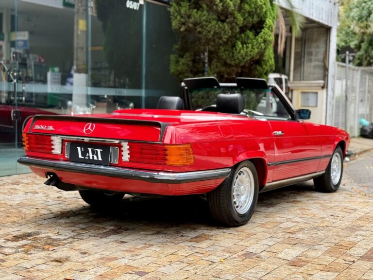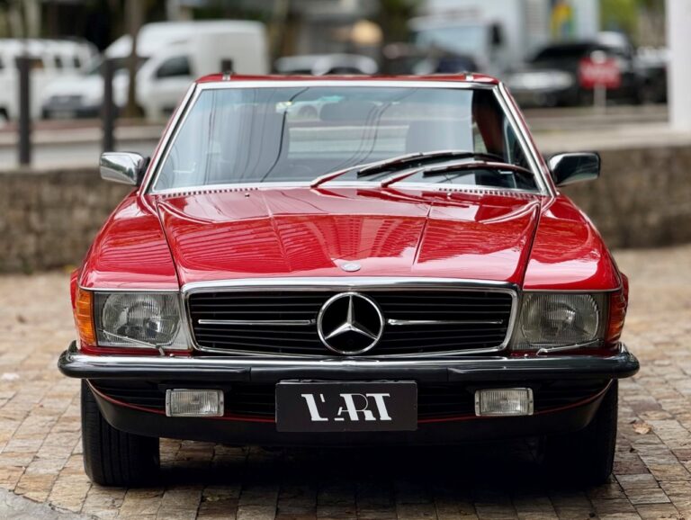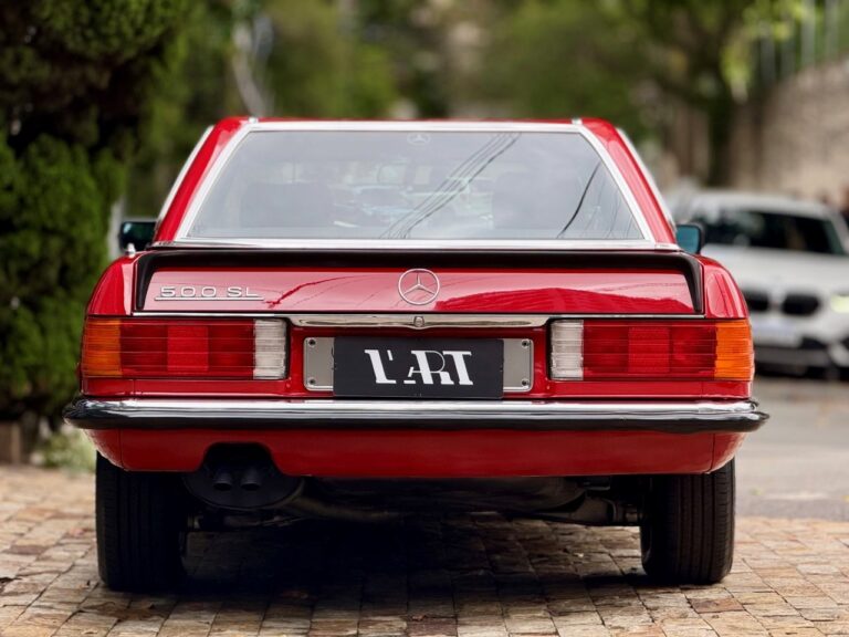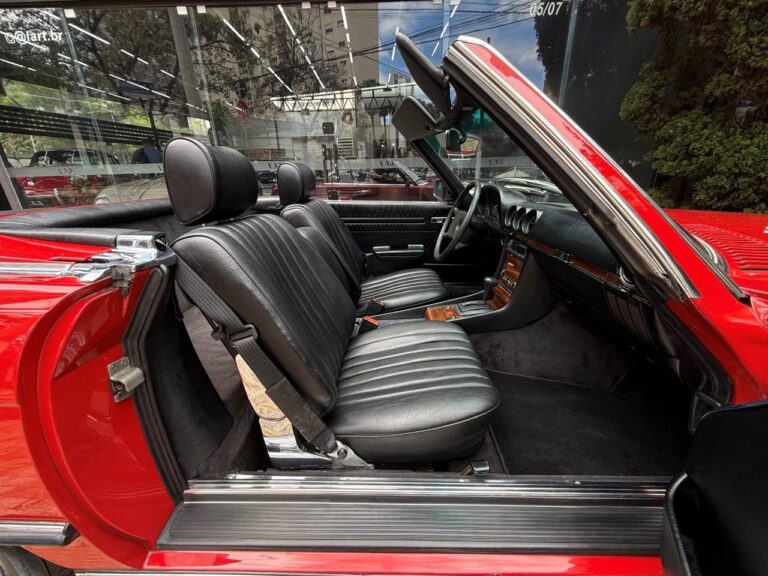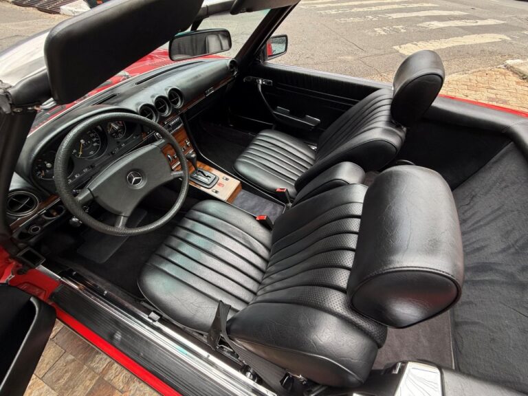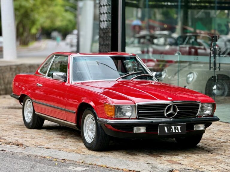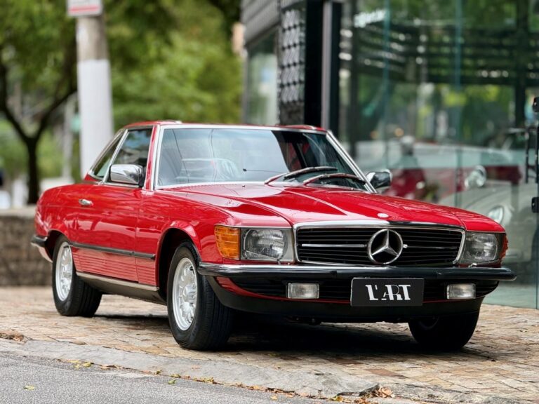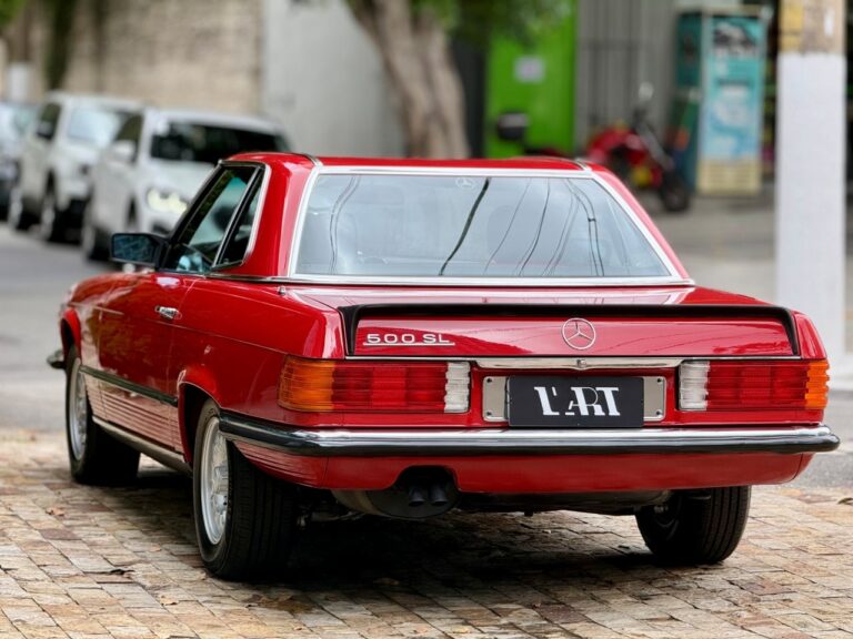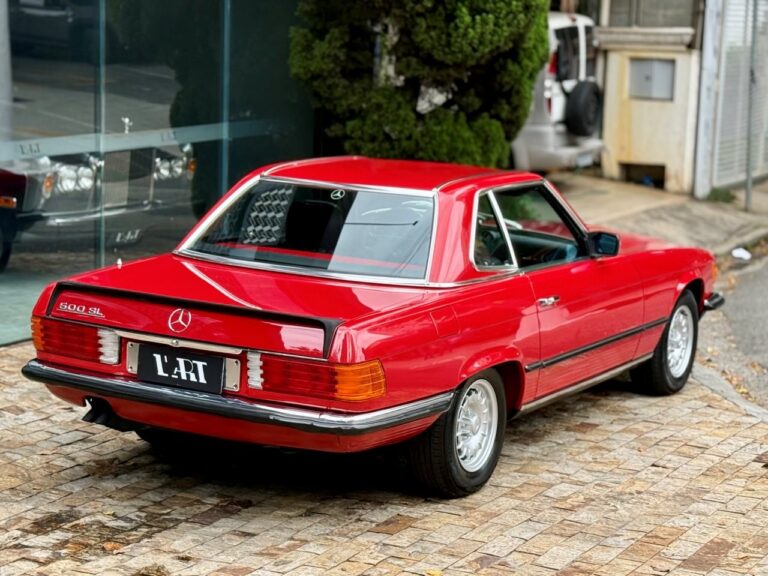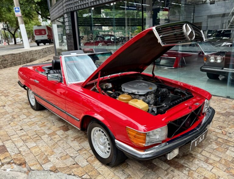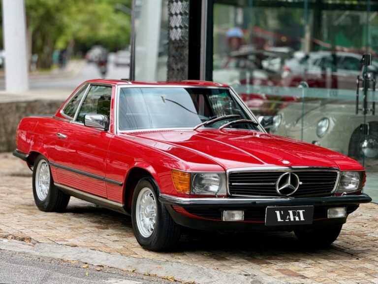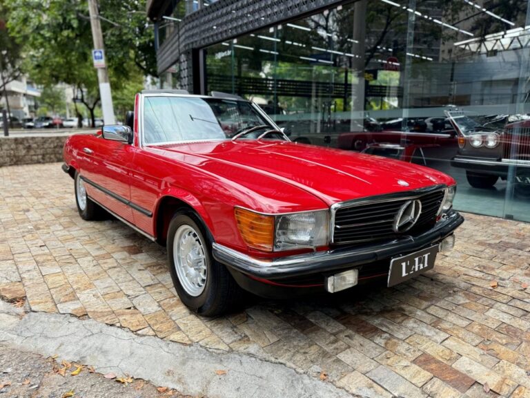 A Mercedes-Benz 500 SL 1982 é um dos roadsters mais marcantes da marca. O nome SL vem de "Sport Leicht" — Esporte Leve, e esse conceito aparece no carro todo. Ela vem com o V8 5.0 em alumínio, 230 cv, um motor conhecido pela força, suavidade e durabilidade. A combinação com o câmbio automático de 4 marchas e a tração traseira entrega exatamente aquilo que se espera de uma R107: acelera fácil, viaja macio e responde do jeito certo. Em curva, é um carro que surpreende pela estabilidade. Os freios a disco nas quatro rodas e as rodas de liga leve completam o conjunto. Essa 500 SL está em ótimo estado geral, alinhada, íntegra e com aquela presença clássica que só uma R107 bem cuidada tem.