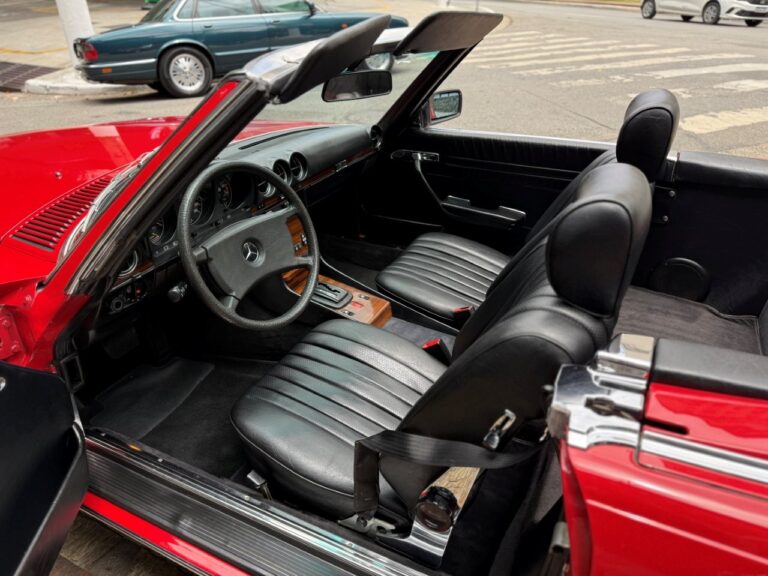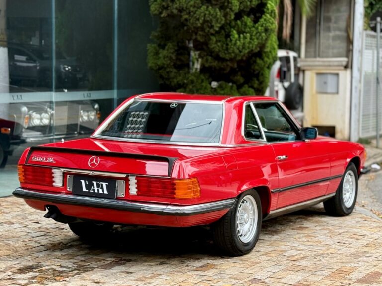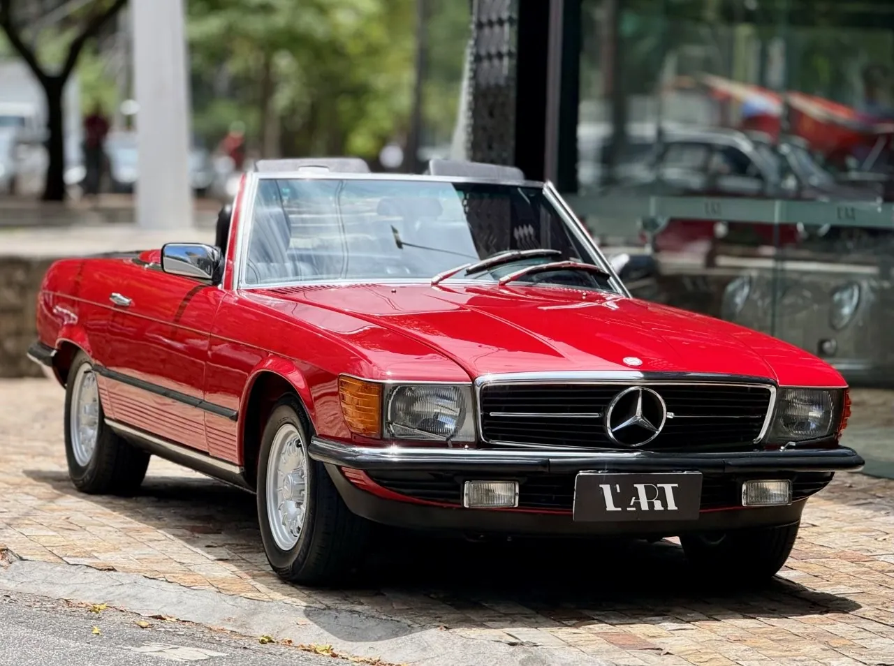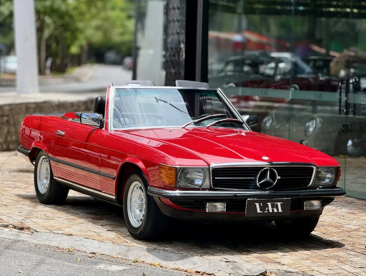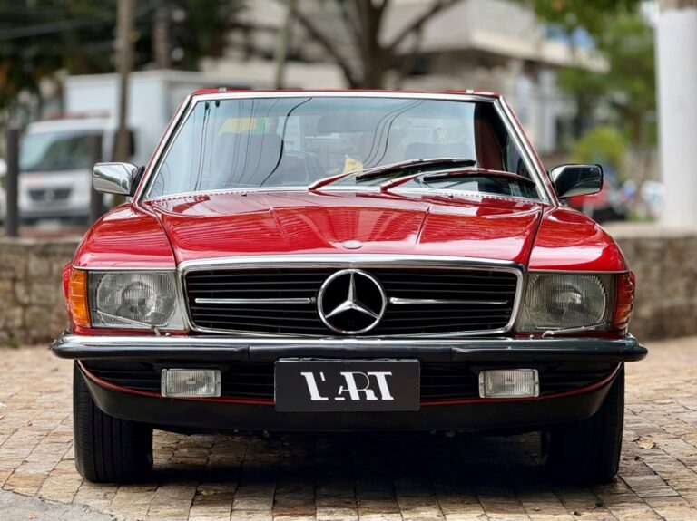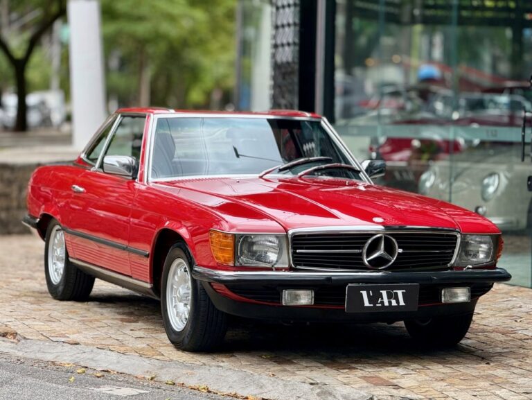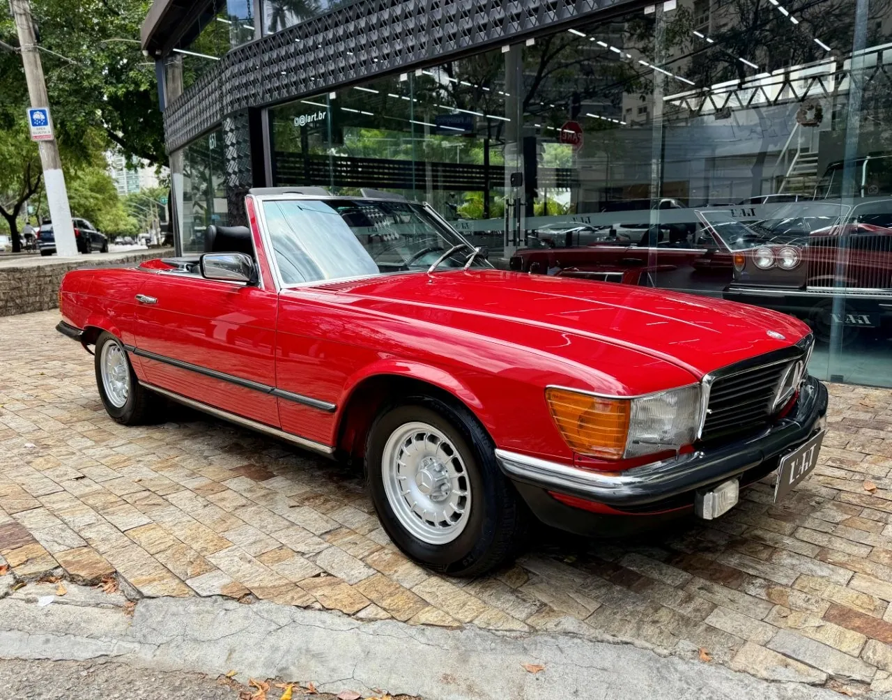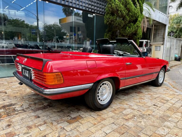 A Mercedes-Benz 500 SL 1982 é um dos roadsters mais marcantes da marca. O nome SL vem de "Sport Leicht" — Esporte Leve, e esse conceito aparece no carro todo. Ela vem com o V8 5.0 em alumínio, 230 cv, um motor conhecido pela força, suavidade e durabilidade. A combinação com o câmbio automático de 4 marchas e a tração traseira entrega exatamente aquilo que se espera de uma R107: acelera fácil, viaja macio e responde do jeito certo. Em curva, é um carro que surpreende pela estabilidade. Os freios a disco nas quatro rodas e as rodas de liga leve completam o conjunto. Essa 500 SL está em ótimo estado geral, alinhada, íntegra e com aquela presença clássica que só uma R107 bem cuidada tem.