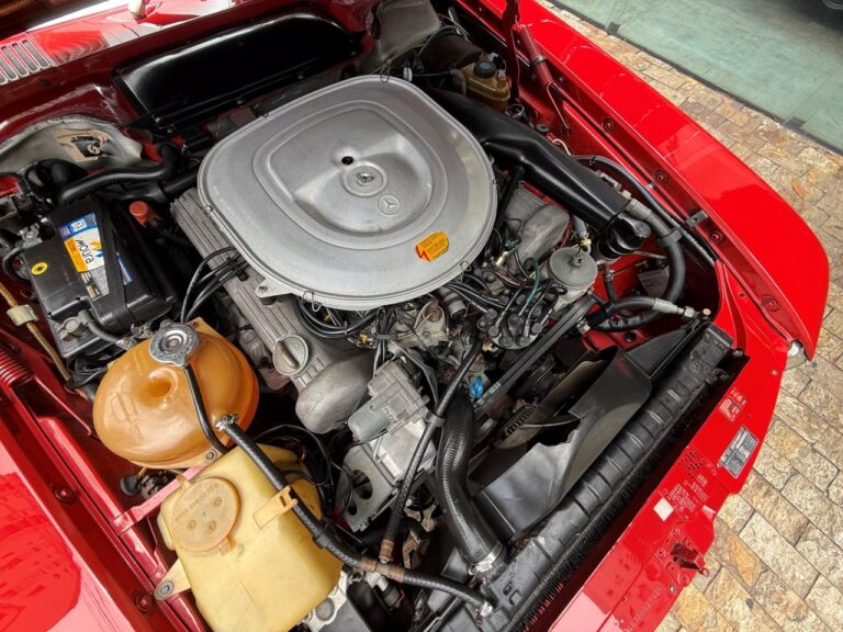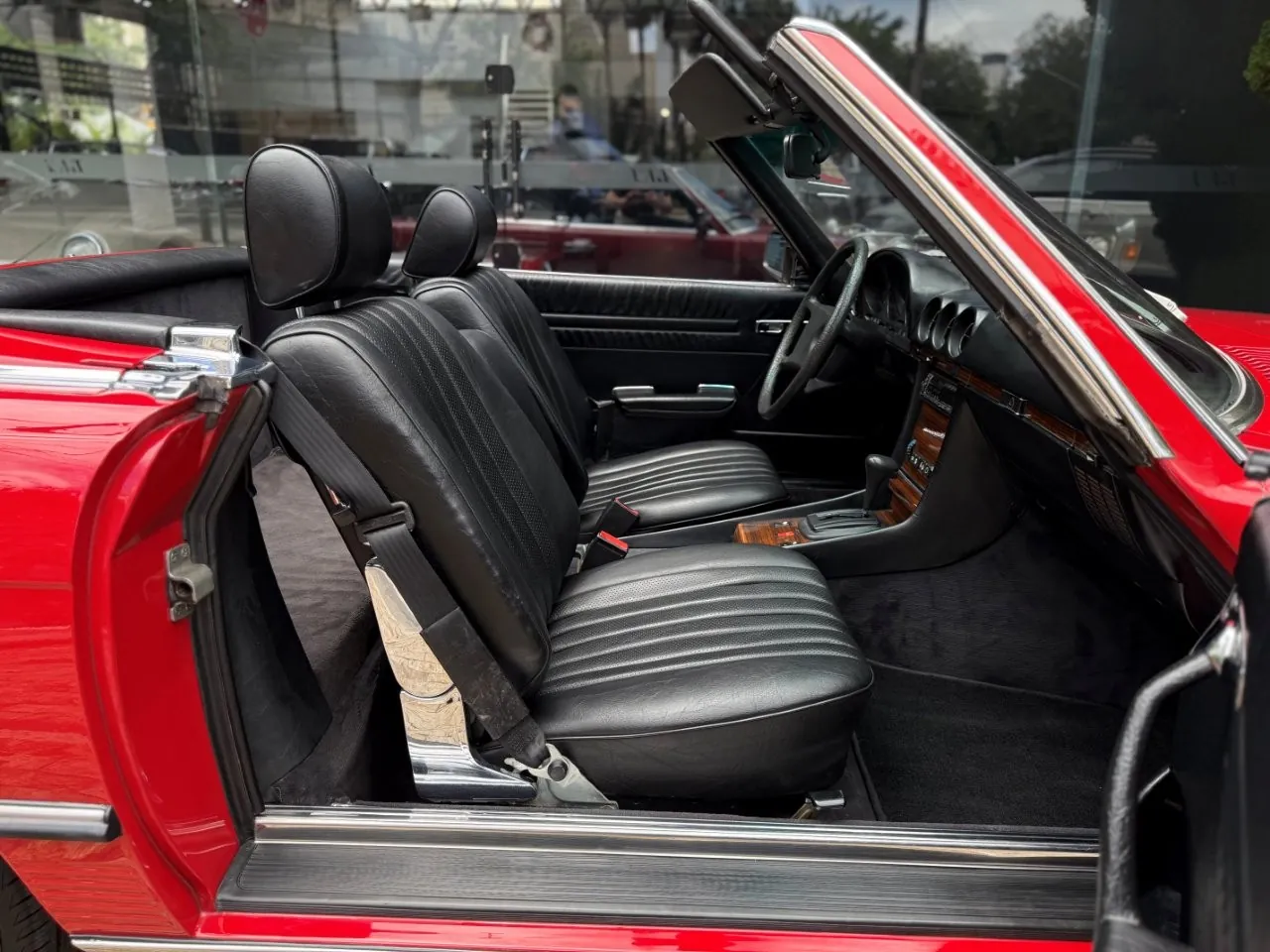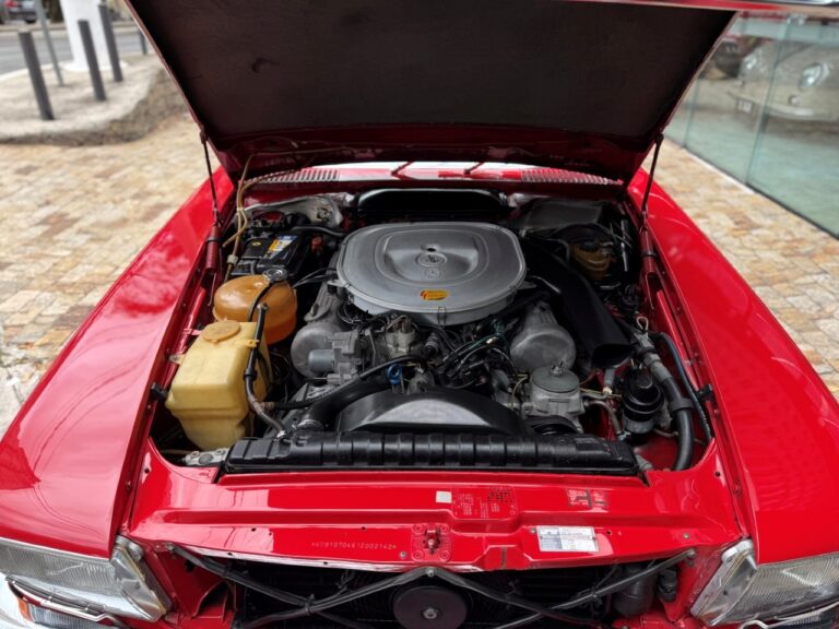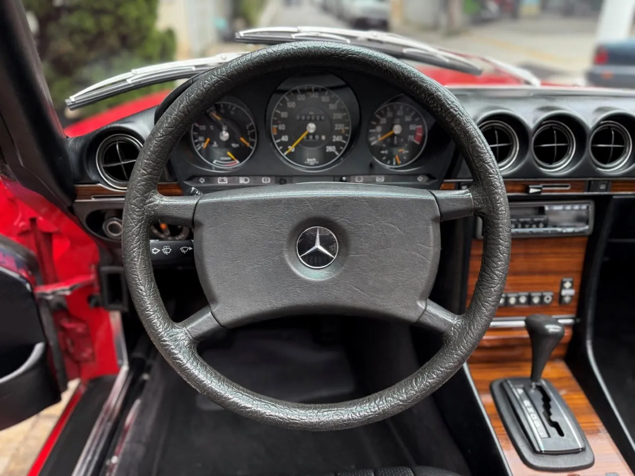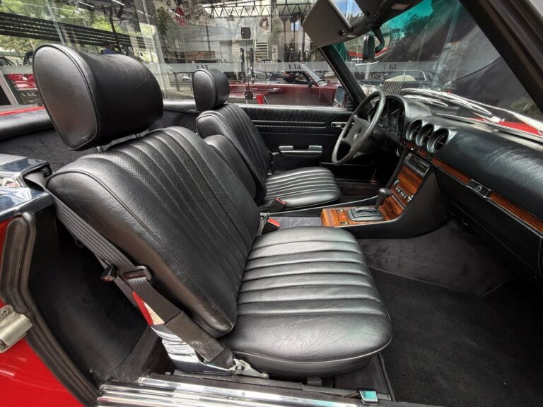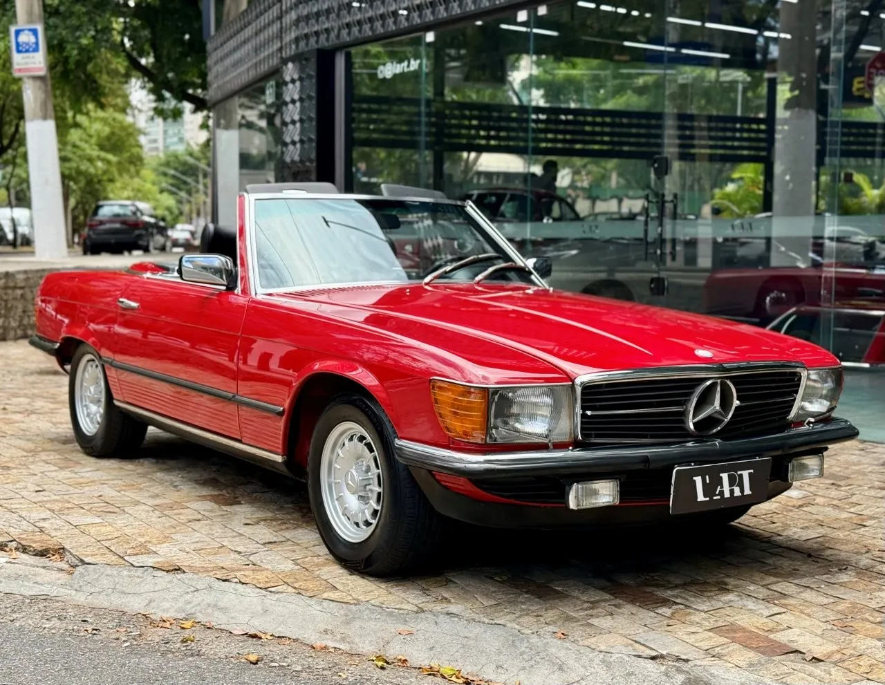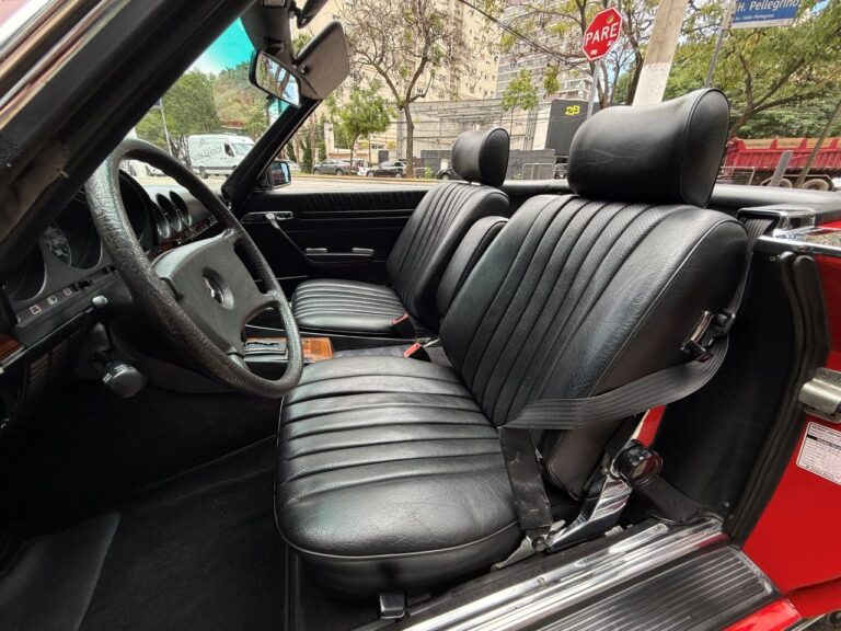 A Mercedes-Benz 500 SL 1982 é um dos roadsters mais marcantes da marca. O nome SL vem de "Sport Leicht" — Esporte Leve, e esse conceito aparece no carro todo. Ela vem com o V8 5.0 em alumínio, 230 cv, um motor conhecido pela força, suavidade e durabilidade. A combinação com o câmbio automático de 4 marchas e a tração traseira entrega exatamente aquilo que se espera de uma R107: acelera fácil, viaja macio e responde do jeito certo. Em curva, é um carro que surpreende pela estabilidade. Os freios a disco nas quatro rodas e as rodas de liga leve completam o conjunto. Essa 500 SL está em ótimo estado geral, alinhada, íntegra e com aquela presença clássica que só uma R107 bem cuidada tem.