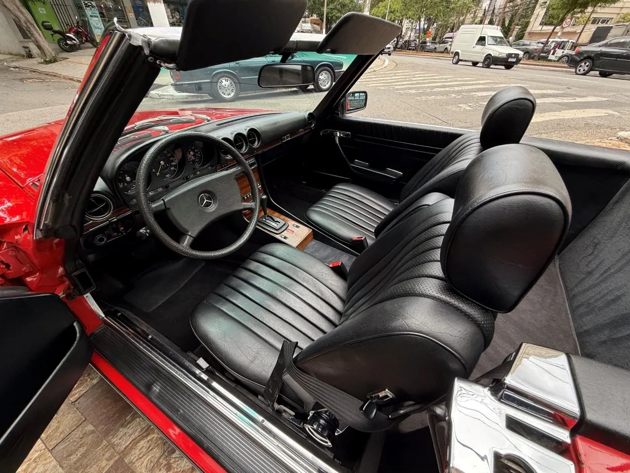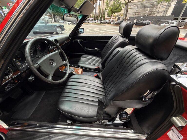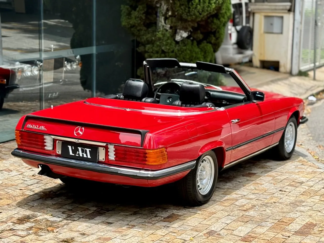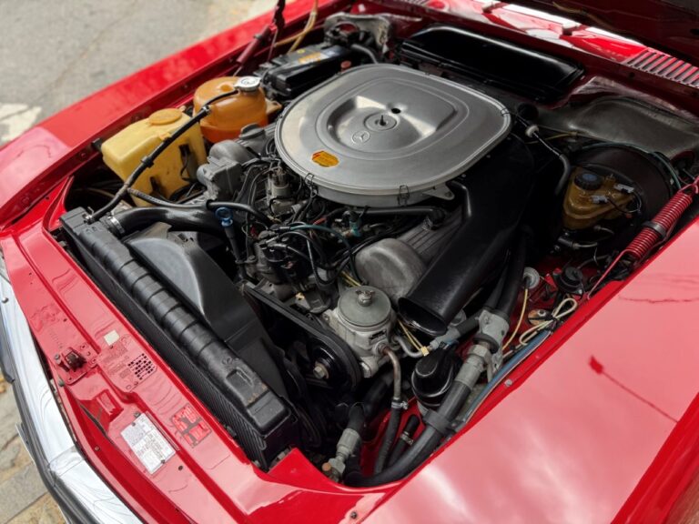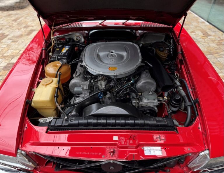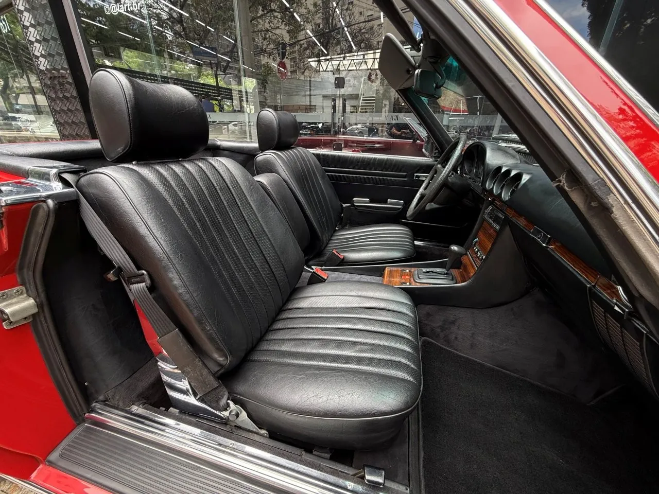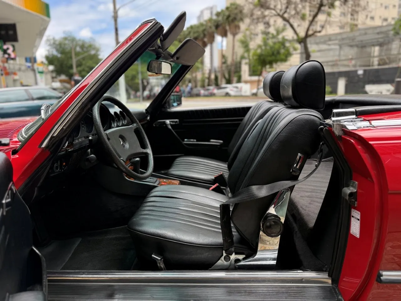 A Mercedes-Benz 500 SL 1982 é um dos roadsters mais marcantes da marca. O nome SL vem de "Sport Leicht" — Esporte Leve, e esse conceito aparece no carro todo. Ela vem com o V8 5.0 em alumínio, 230 cv, um motor conhecido pela força, suavidade e durabilidade. A combinação com o câmbio automático de 4 marchas e a tração traseira entrega exatamente aquilo que se espera de uma R107: acelera fácil, viaja macio e responde do jeito certo. Em curva, é um carro que surpreende pela estabilidade. Os freios a disco nas quatro rodas e as rodas de liga leve completam o conjunto. Essa 500 SL está em ótimo estado geral, alinhada, íntegra e com aquela presença clássica que só uma R107 bem cuidada tem.