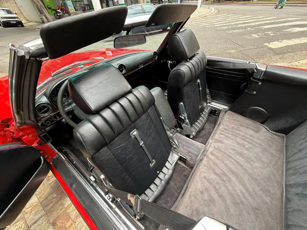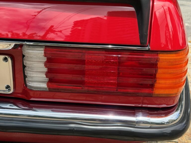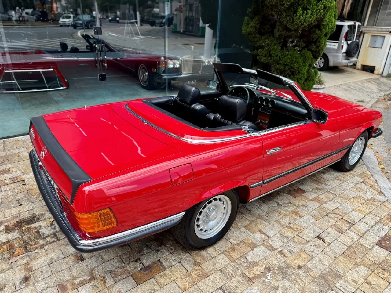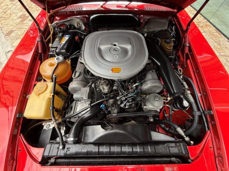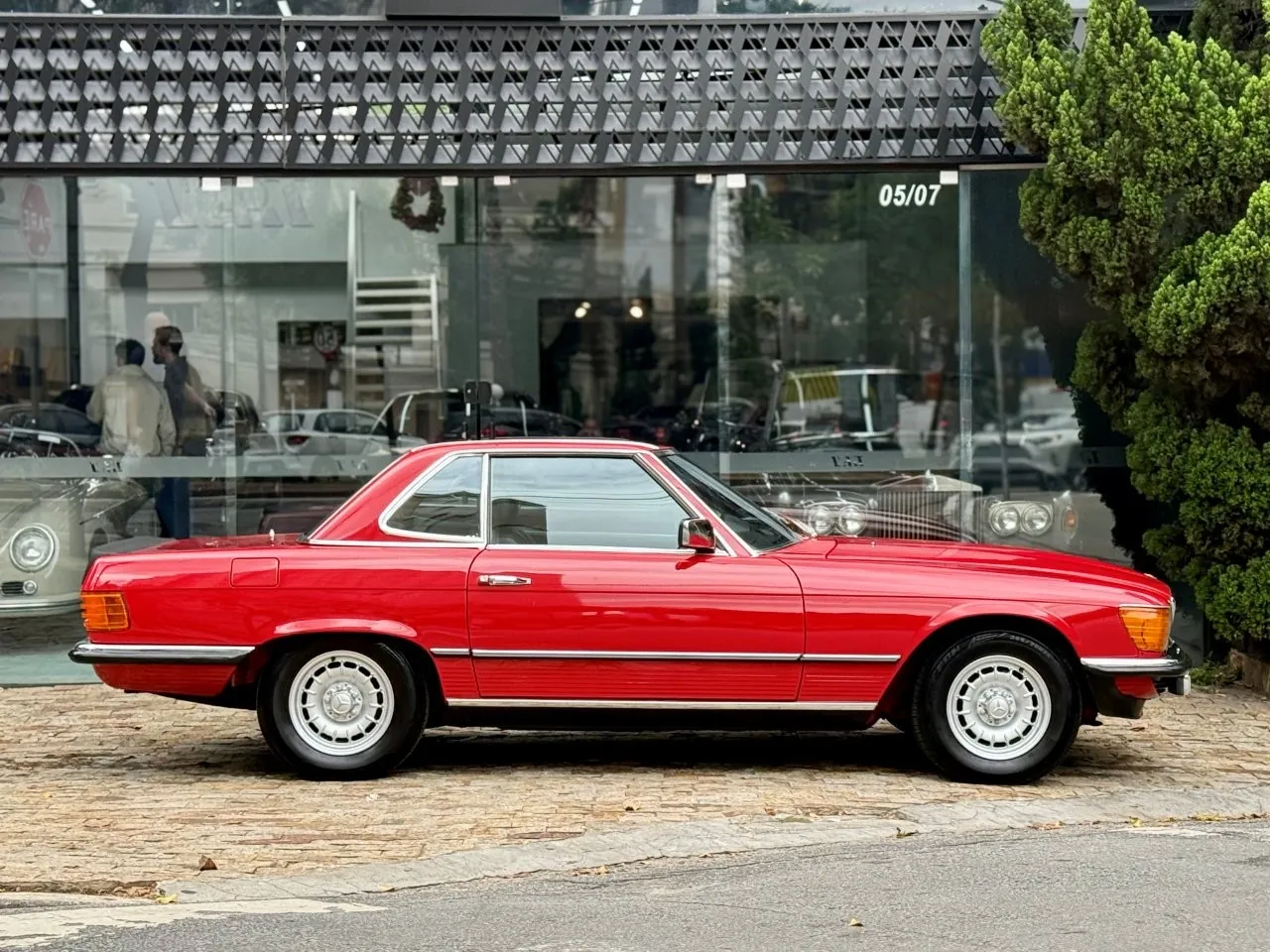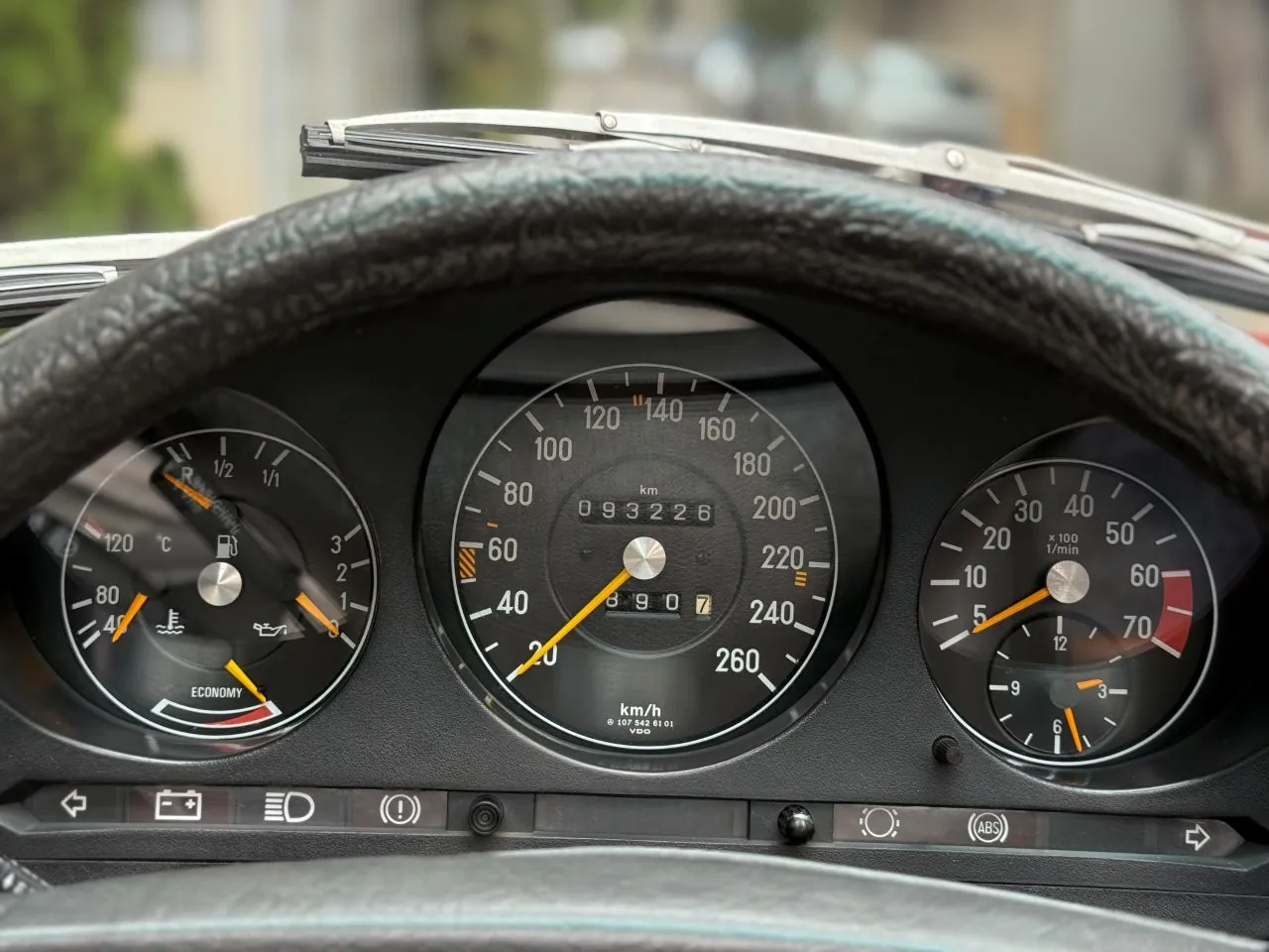 A Mercedes-Benz 500 SL 1982 é um dos roadsters mais marcantes da marca. O nome SL vem de "Sport Leicht" — Esporte Leve, e esse conceito aparece no carro todo. Ela vem com o V8 5.0 em alumínio, 230 cv, um motor conhecido pela força, suavidade e durabilidade. A combinação com o câmbio automático de 4 marchas e a tração traseira entrega exatamente aquilo que se espera de uma R107: acelera fácil, viaja macio e responde do jeito certo. Em curva, é um carro que surpreende pela estabilidade. Os freios a disco nas quatro rodas e as rodas de liga leve completam o conjunto. Essa 500 SL está em ótimo estado geral, alinhada, íntegra e com aquela presença clássica que só uma R107 bem cuidada tem.