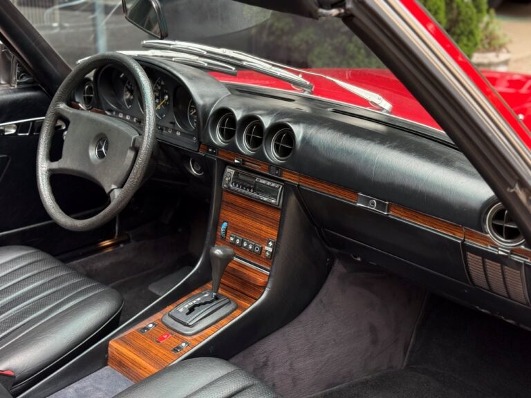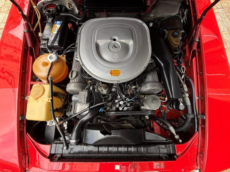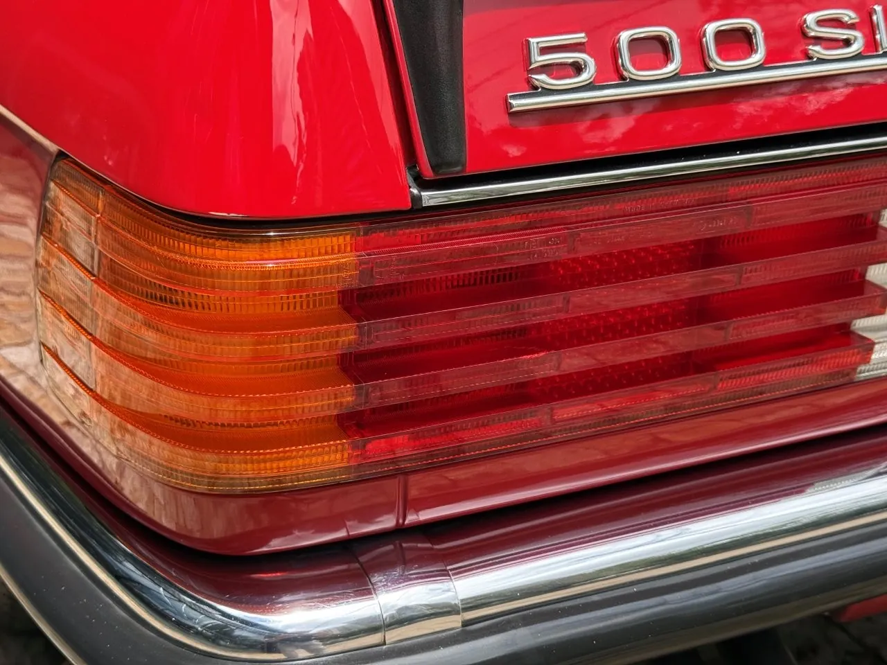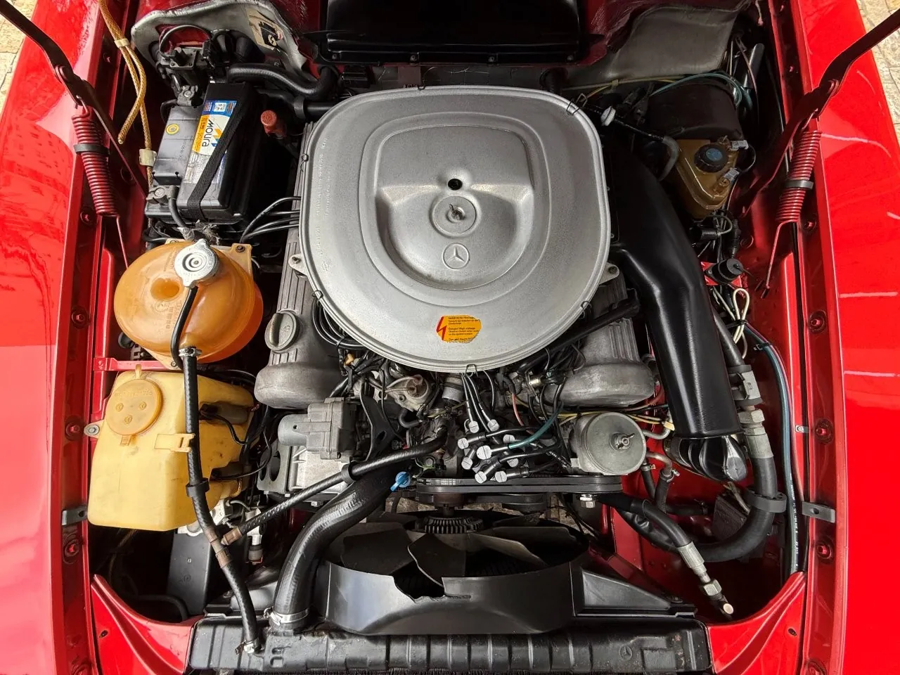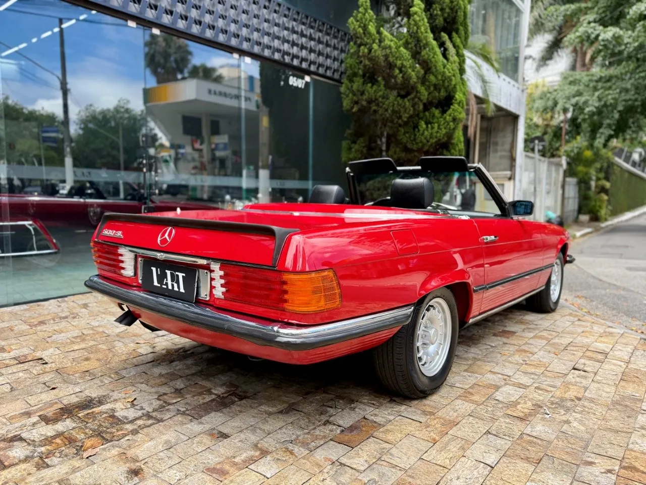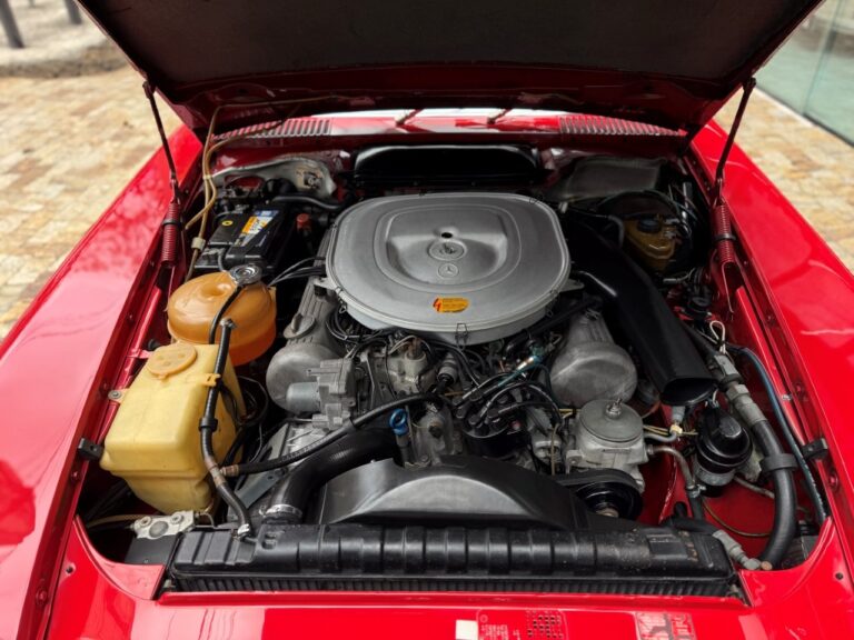 A Mercedes-Benz 500 SL 1982 é um dos roadsters mais marcantes da marca. O nome SL vem de "Sport Leicht" — Esporte Leve, e esse conceito aparece no carro todo. Ela vem com o V8 5.0 em alumínio, 230 cv, um motor conhecido pela força, suavidade e durabilidade. A combinação com o câmbio automático de 4 marchas e a tração traseira entrega exatamente aquilo que se espera de uma R107: acelera fácil, viaja macio e responde do jeito certo. Em curva, é um carro que surpreende pela estabilidade. Os freios a disco nas quatro rodas e as rodas de liga leve completam o conjunto. Essa 500 SL está em ótimo estado geral, alinhada, íntegra e com aquela presença clássica que só uma R107 bem cuidada tem.