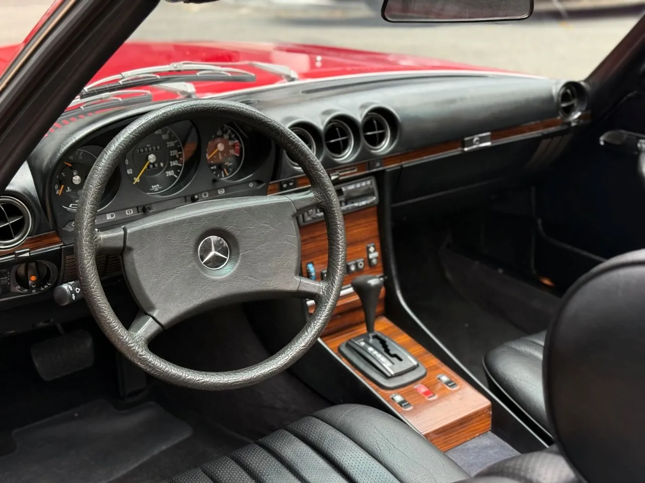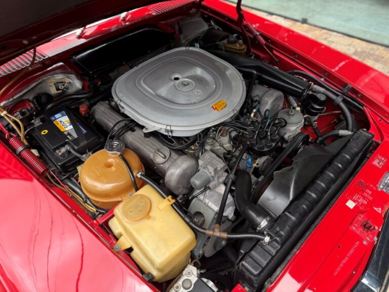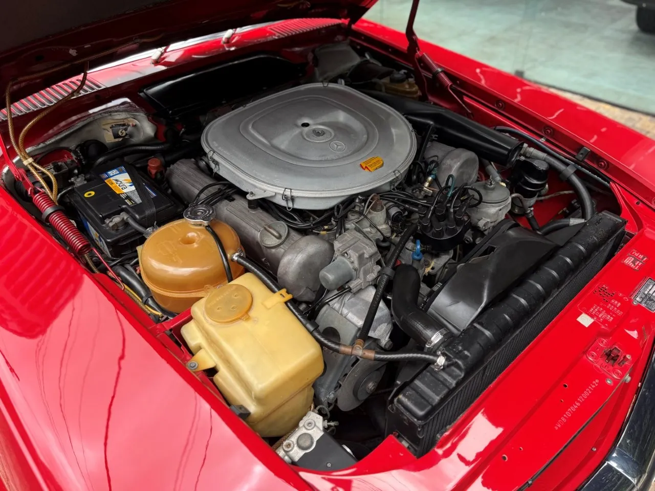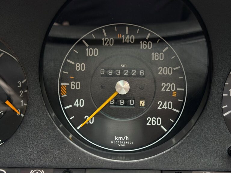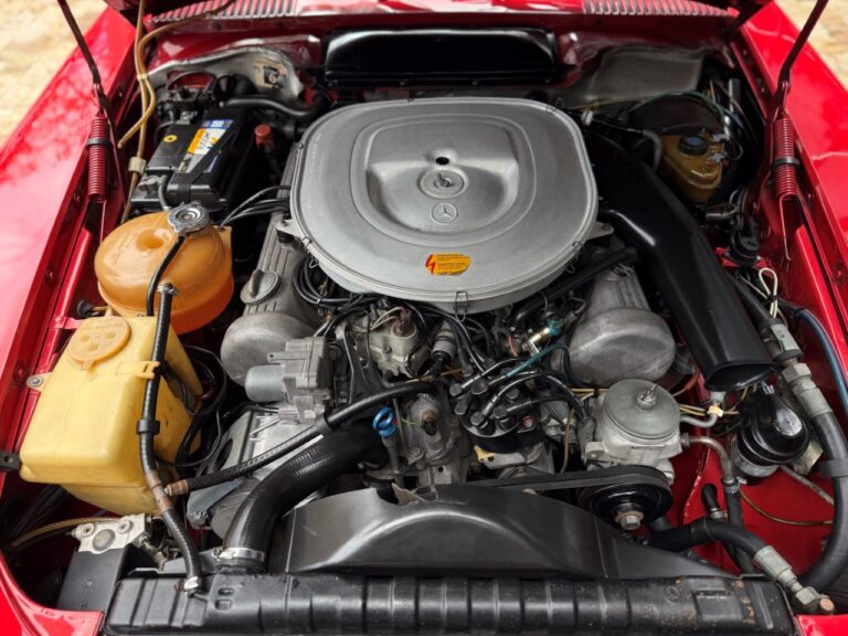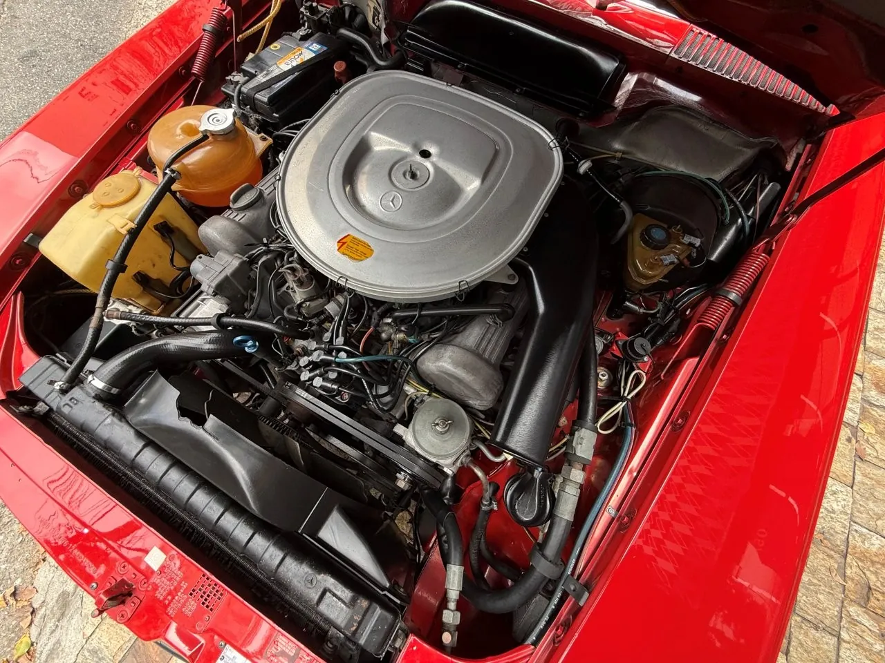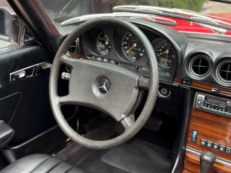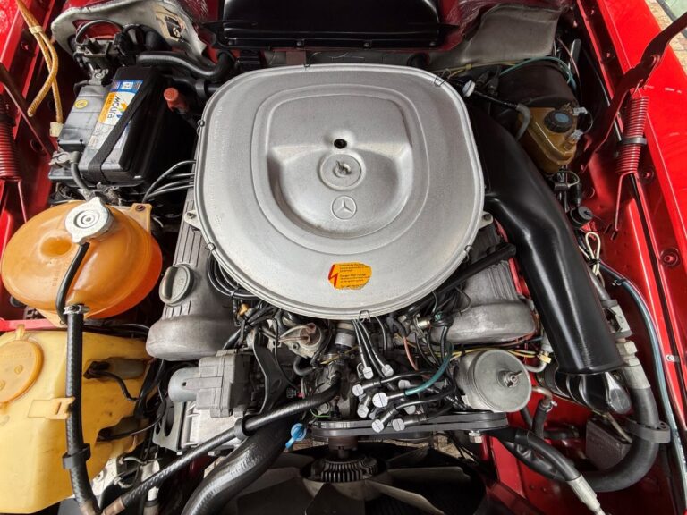 A Mercedes-Benz 500 SL 1982 é um dos roadsters mais marcantes da marca. O nome SL vem de "Sport Leicht" — Esporte Leve, e esse conceito aparece no carro todo. Ela vem com o V8 5.0 em alumínio, 230 cv, um motor conhecido pela força, suavidade e durabilidade. A combinação com o câmbio automático de 4 marchas e a tração traseira entrega exatamente aquilo que se espera de uma R107: acelera fácil, viaja macio e responde do jeito certo. Em curva, é um carro que surpreende pela estabilidade. Os freios a disco nas quatro rodas e as rodas de liga leve completam o conjunto. Essa 500 SL está em ótimo estado geral, alinhada, íntegra e com aquela presença clássica que só uma R107 bem cuidada tem.
