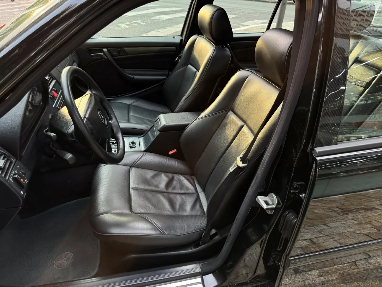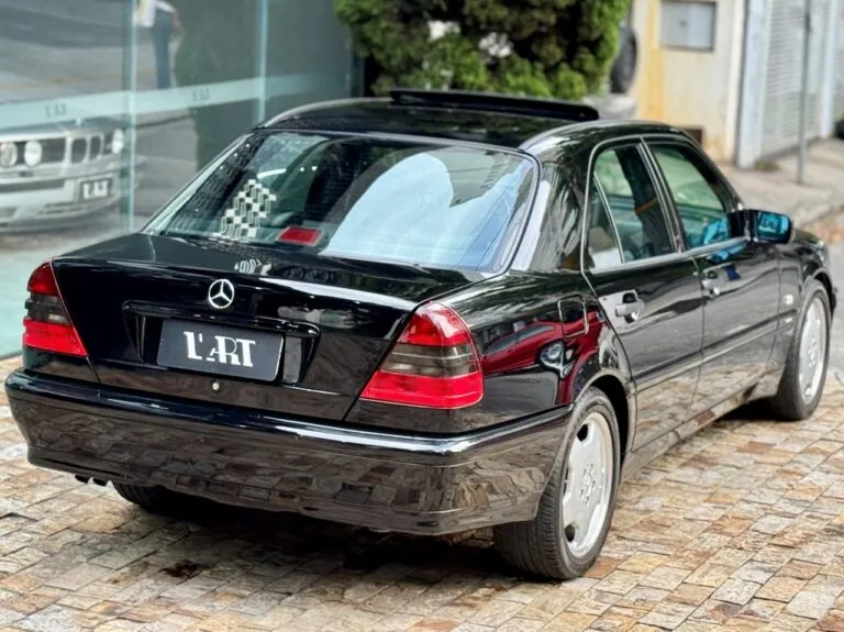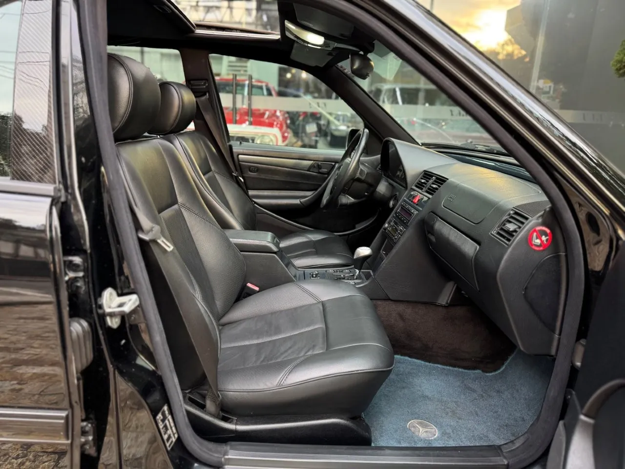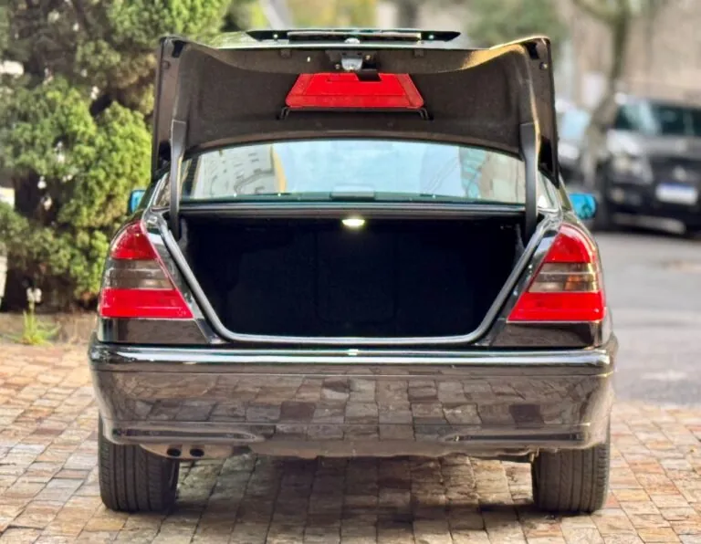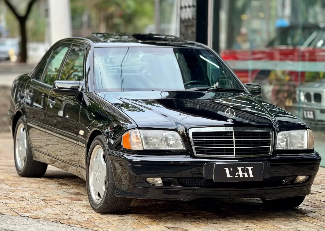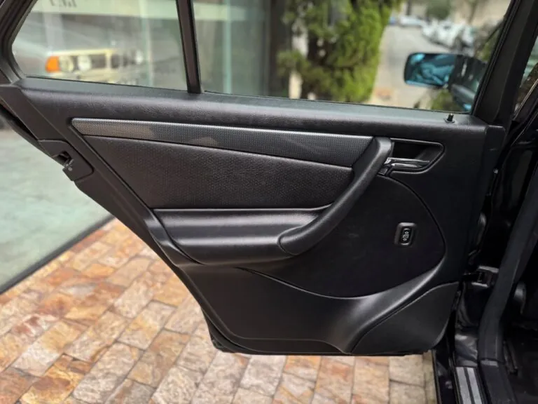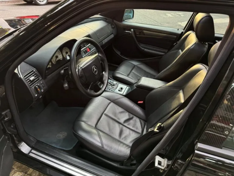 Preto no preto, rodas Monoblock aro 17, teto solar e detalhes da versão Sport, incluindo os acabamentos internos com visual de carbono e o painel de fundo branco original. Por dentro, está inteira: bancos elétricos, som original já com bluetooth integrado e acabamento muito bem preservado. Câmbio automático de 5 marchas, motor 2.3 de 193 cv e mecânica revisada. Um W202 no ponto, com presença, estilo e aquele charme clássico dos anos 90 que só melhora com o tempo.