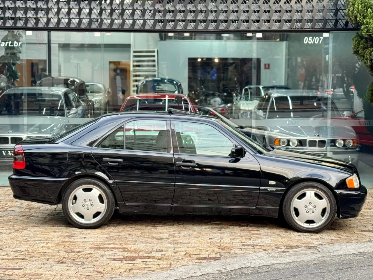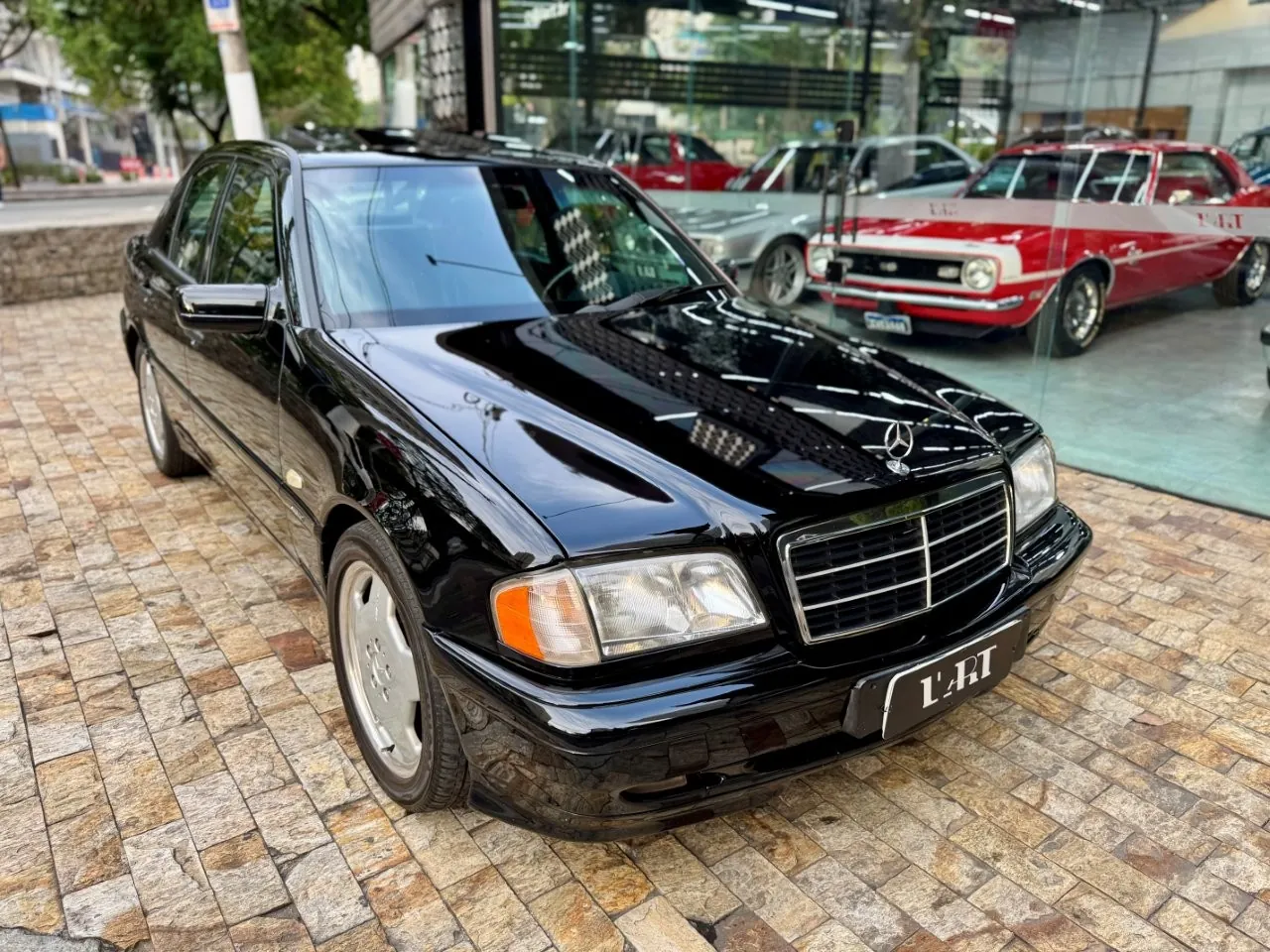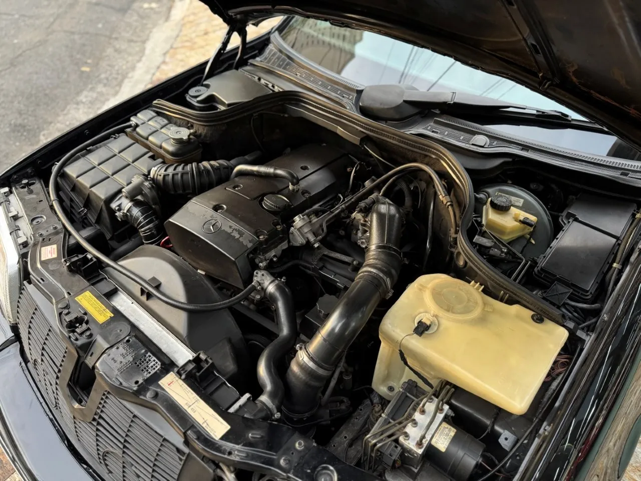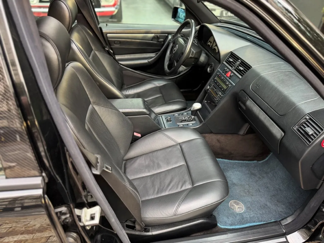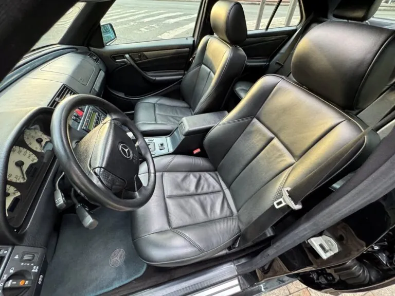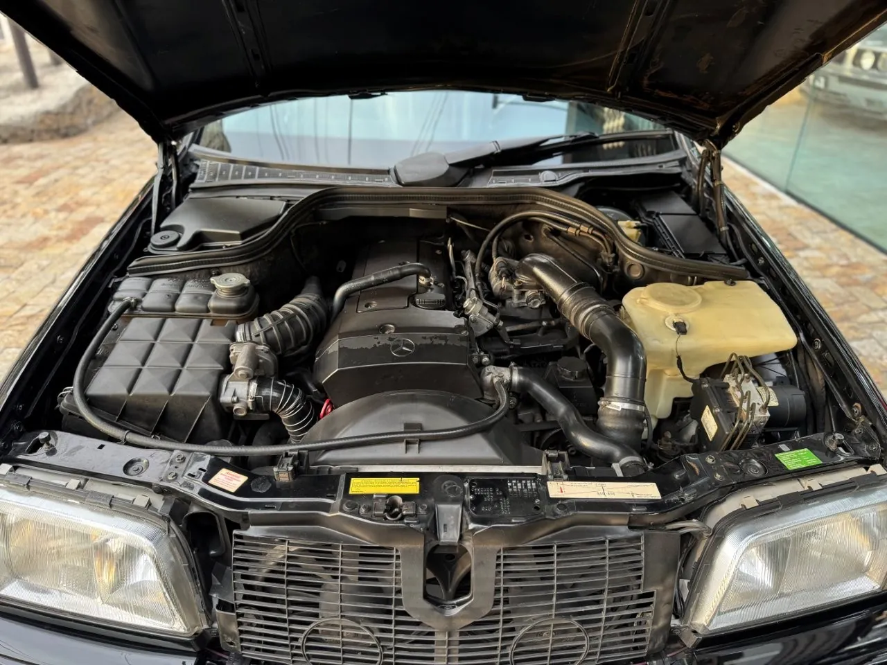 Preto no preto, rodas Monoblock aro 17, teto solar e detalhes da versão Sport, incluindo os acabamentos internos com visual de carbono e o painel de fundo branco original. Por dentro, está inteira: bancos elétricos, som original já com bluetooth integrado e acabamento muito bem preservado. Câmbio automático de 5 marchas, motor 2.3 de 193 cv e mecânica revisada. Um W202 no ponto, com presença, estilo e aquele charme clássico dos anos 90 que só melhora com o tempo.
