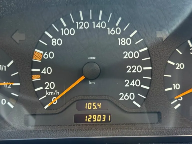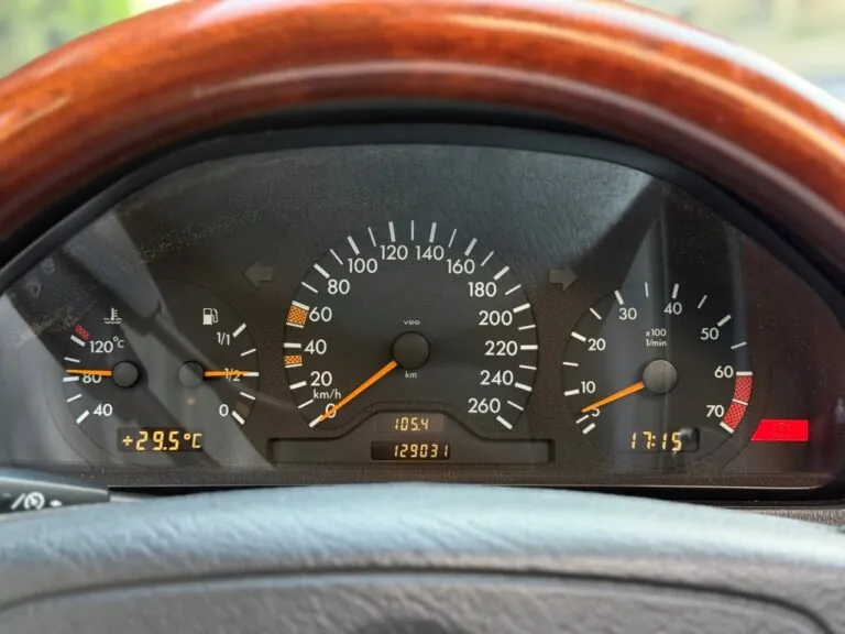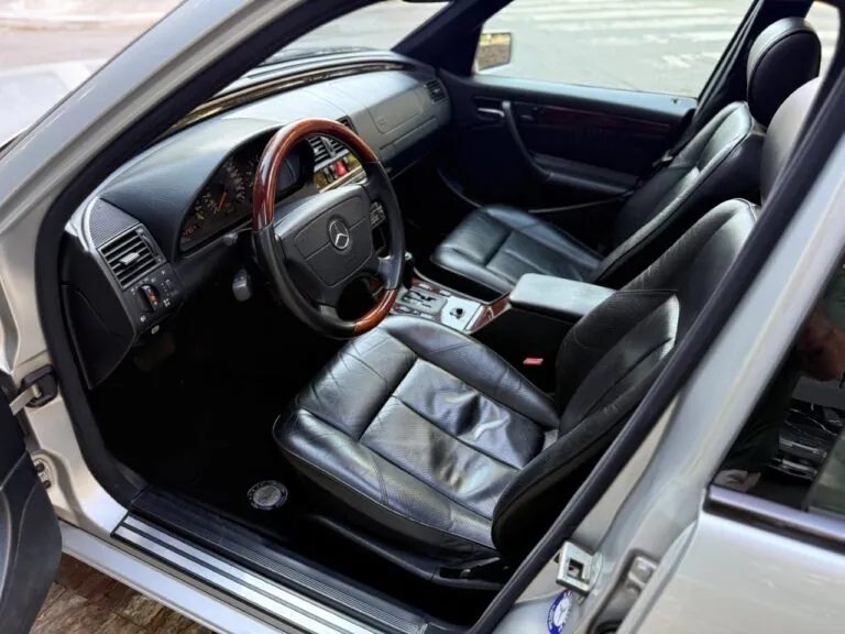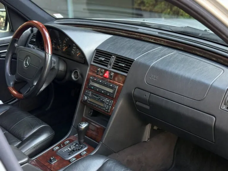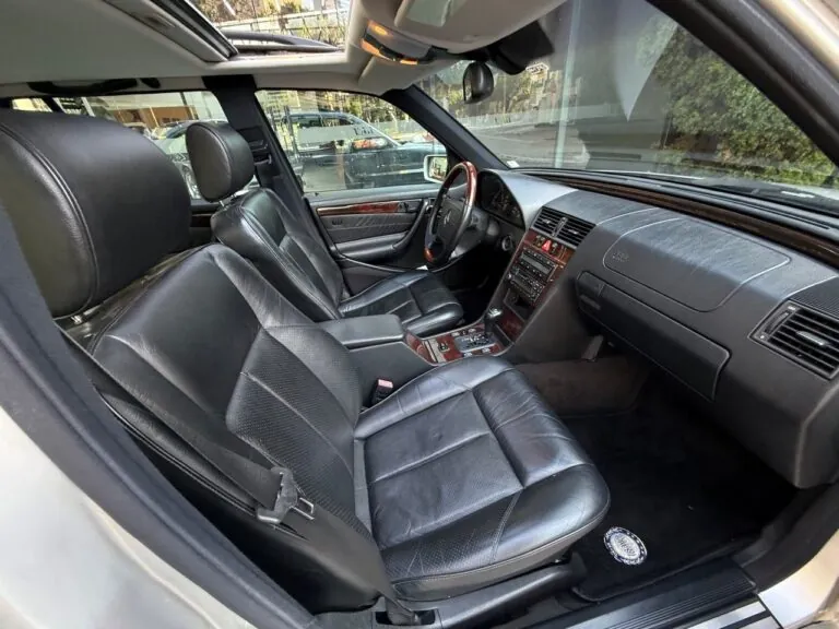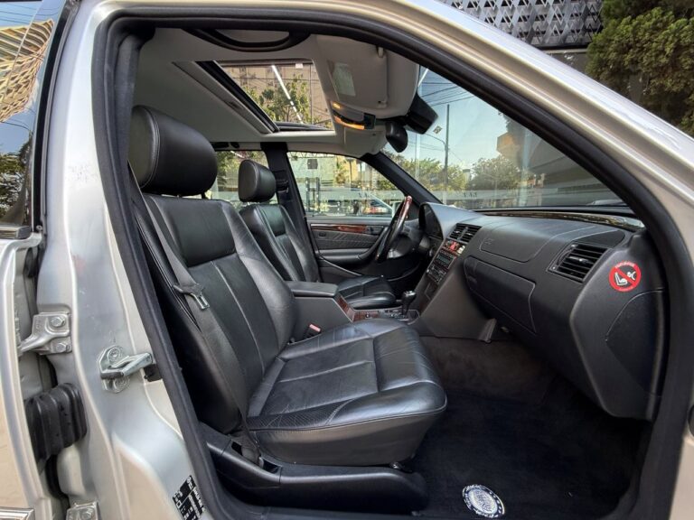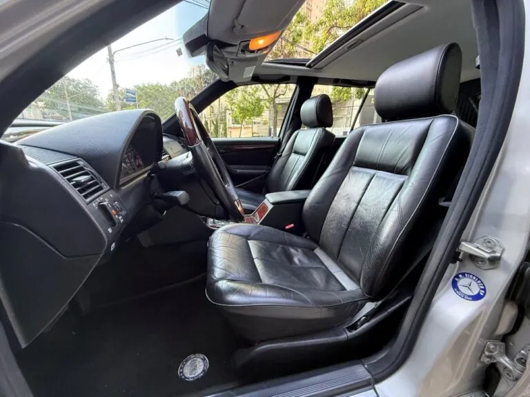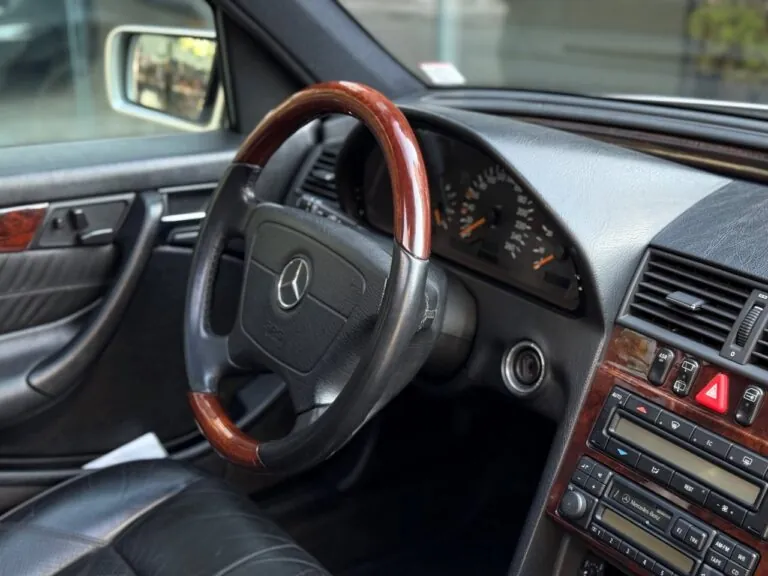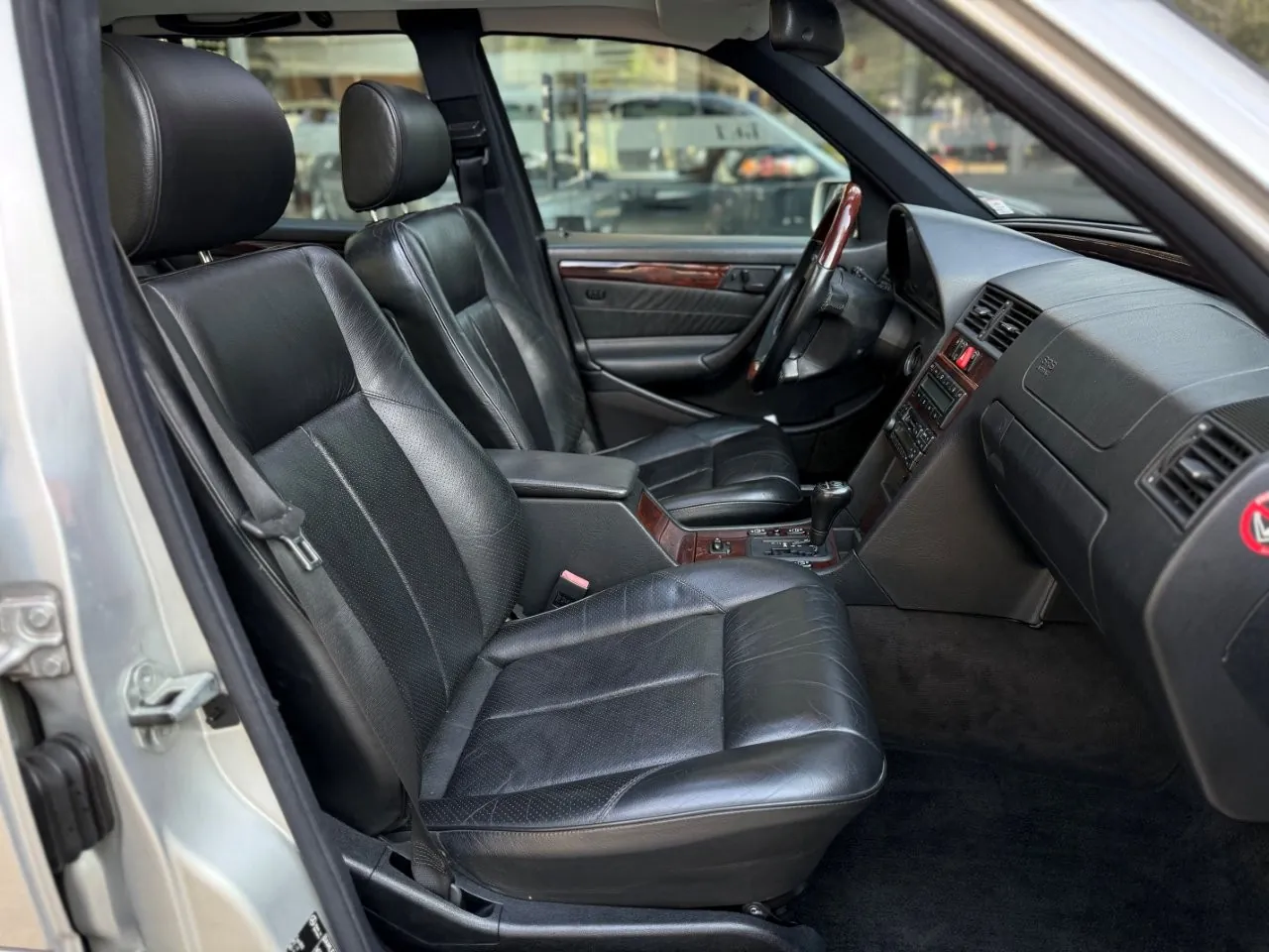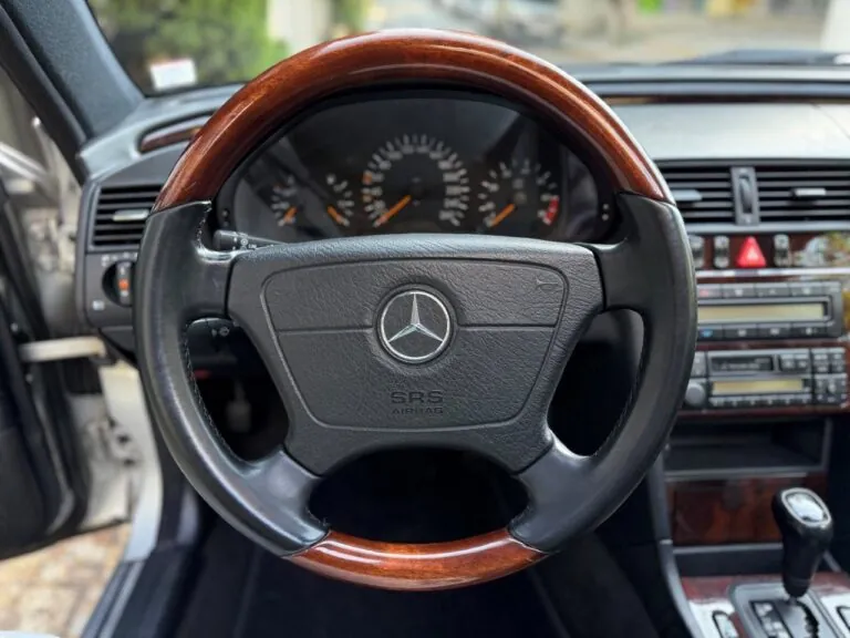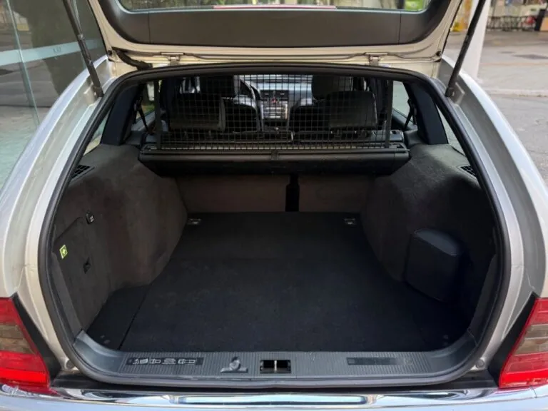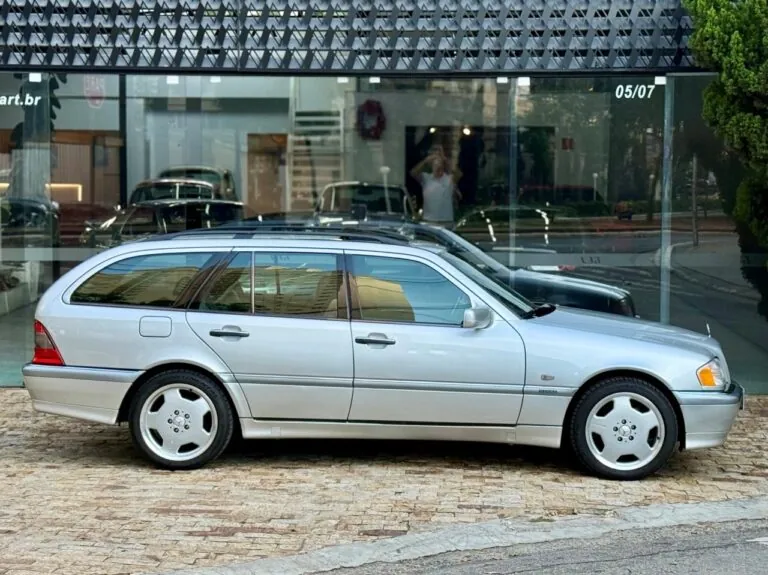Essa C280 Touring S202 é um ótimo exemplo da Mercedes-Benz dos anos 90. Equipada com motor 2.8 V6 (M112) de 197 cv e câmbio automático 5G-Tronic, entrega rodar macio, silencioso e muito confortável. O carro é prata com interior preto, está com 129 mil km e se apresenta muito bem conservado. Conta com teto solar, piloto automático Tempomat, bancos elétricos, volante em madeira, som original com Bluetooth e subwoofer, além de tela divisória de carga e tampa do porta-malas. As rodas monoblock aro 17”, adicionam ainda mais elegância ao conjunto, valorizando o visual clássico da perua.