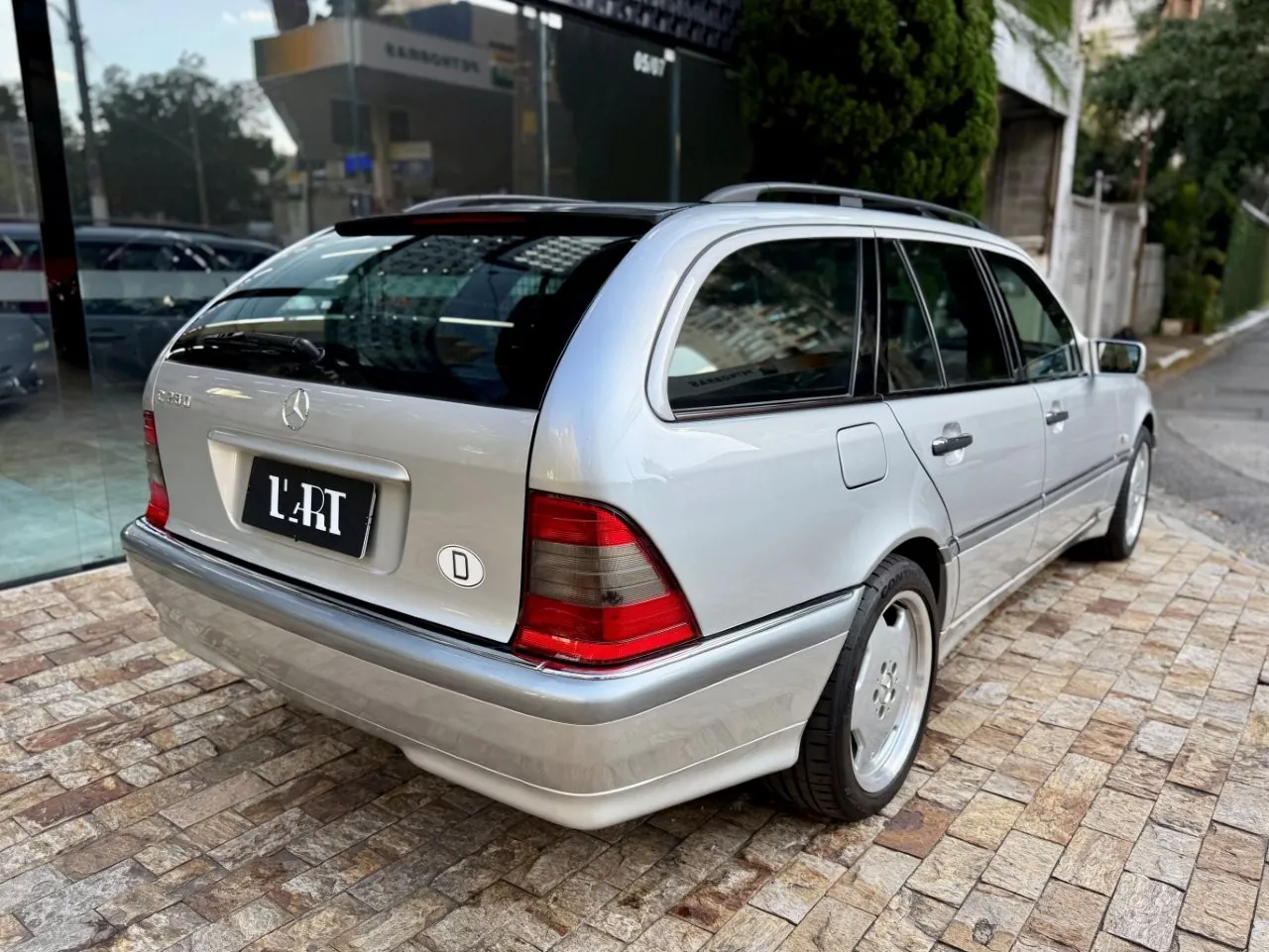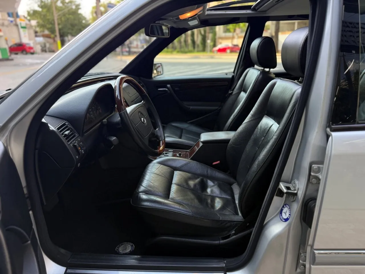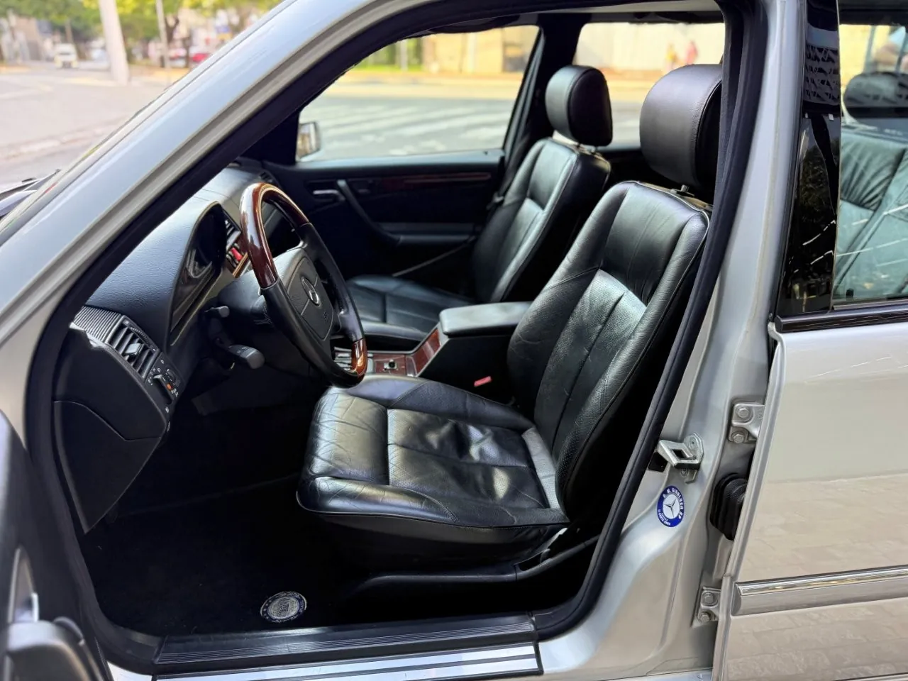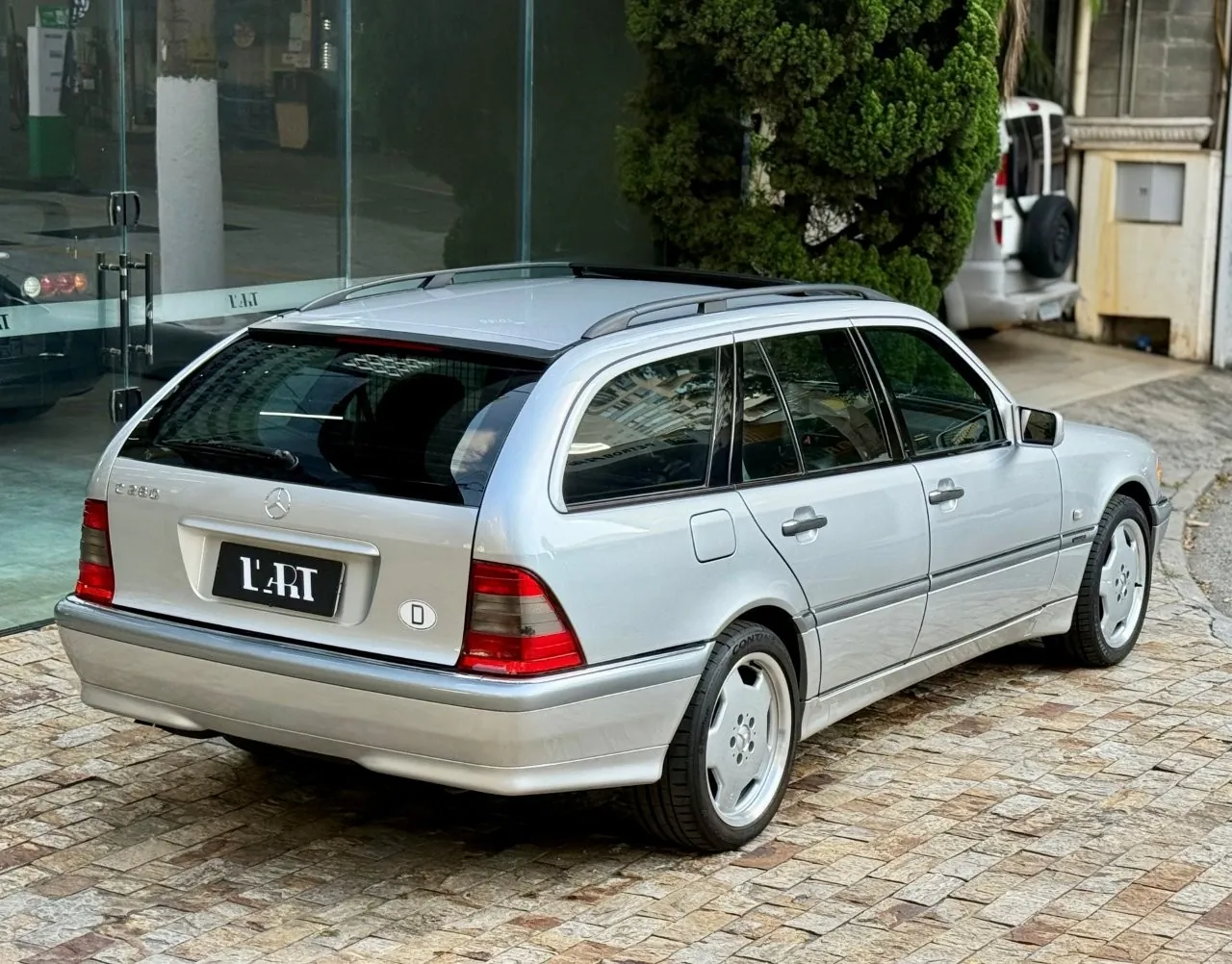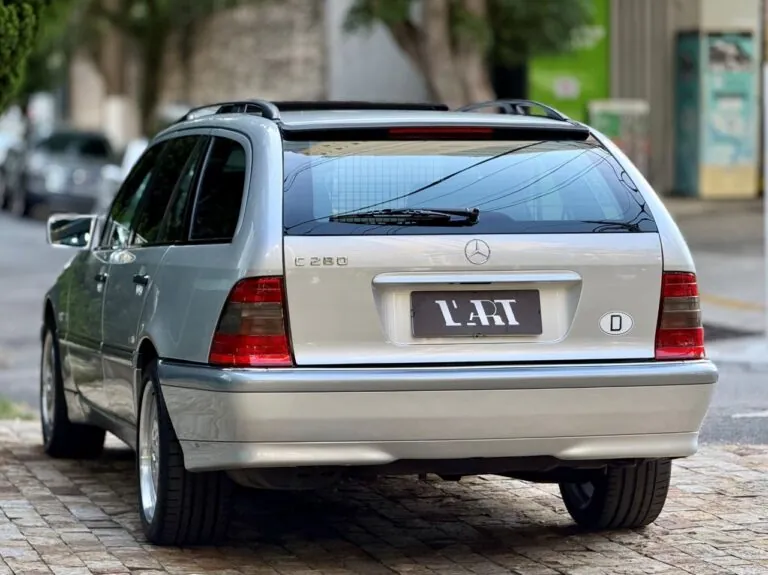 Essa C280 Touring S202 é um ótimo exemplo da Mercedes-Benz dos anos 90. Equipada com motor 2.8 V6 (M112) de 197 cv e câmbio automático 5G-Tronic, entrega rodar macio, silencioso e muito confortável. O carro é prata com interior preto, está com 129 mil km e se apresenta muito bem conservado. Conta com teto solar, piloto automático Tempomat, bancos elétricos, volante em madeira, som original com Bluetooth e subwoofer, além de tela divisória de carga e tampa do porta-malas. As rodas monoblock aro 17", adicionam ainda mais elegância ao conjunto, valorizando o visual clássico da perua.
