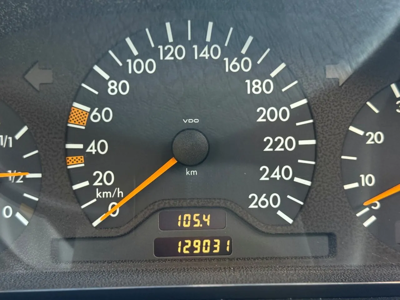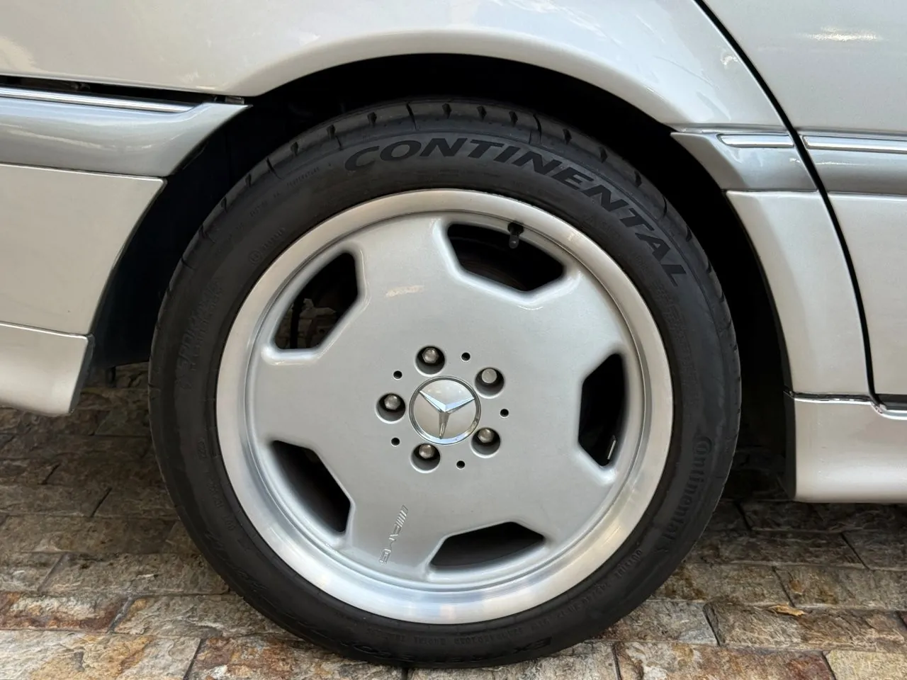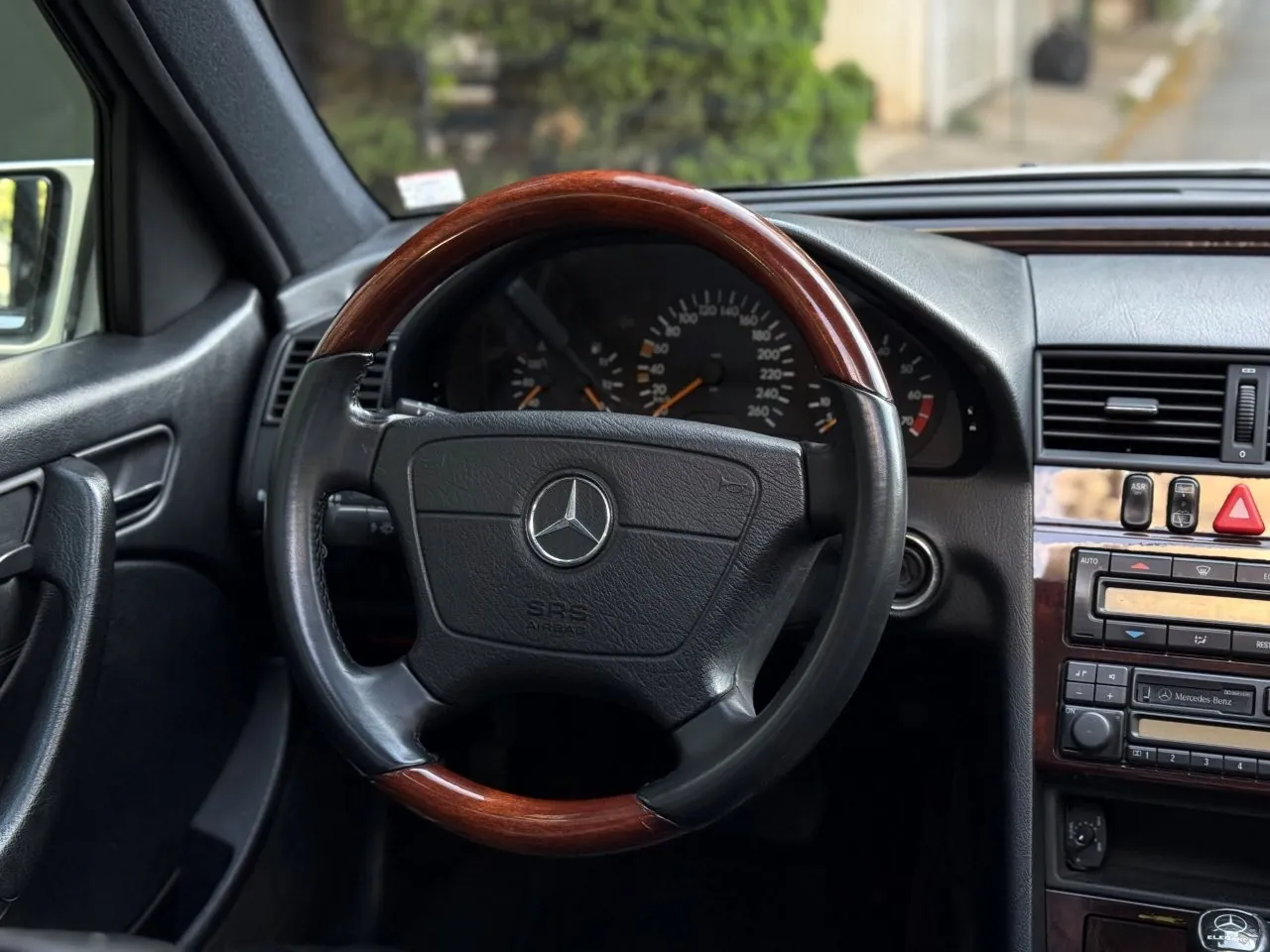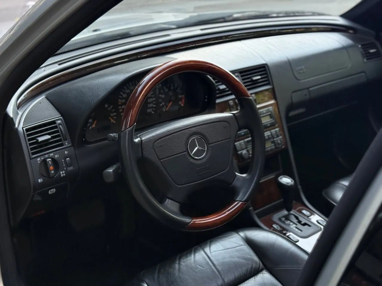 Essa C280 Touring S202 é um ótimo exemplo da Mercedes-Benz dos anos 90. Equipada com motor 2.8 V6 (M112) de 197 cv e câmbio automático 5G-Tronic, entrega rodar macio, silencioso e muito confortável. O carro é prata com interior preto, está com 129 mil km e se apresenta muito bem conservado. Conta com teto solar, piloto automático Tempomat, bancos elétricos, volante em madeira, som original com Bluetooth e subwoofer, além de tela divisória de carga e tampa do porta-malas. As rodas monoblock aro 17", adicionam ainda mais elegância ao conjunto, valorizando o visual clássico da perua.