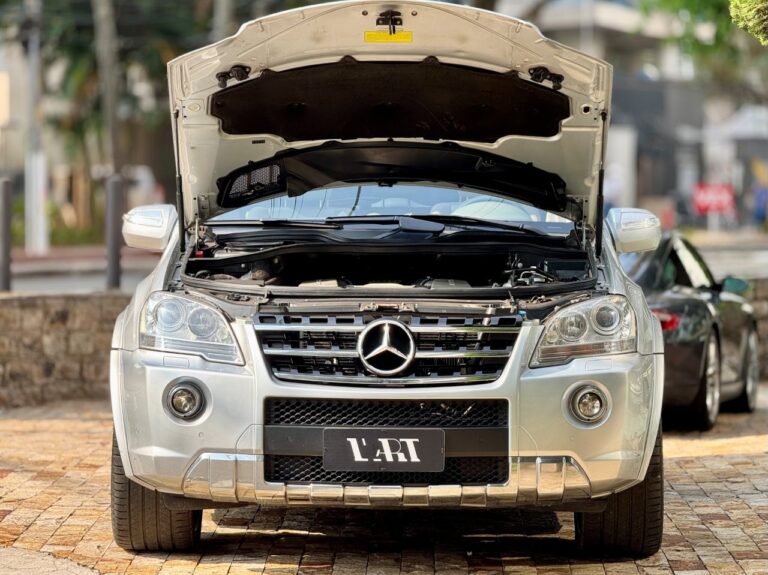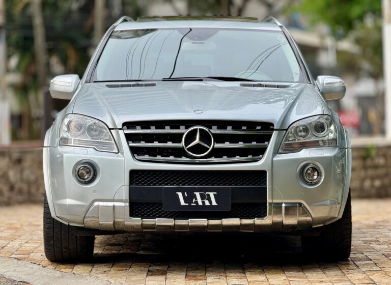 A ML 63 AMG é a combinação da versatilidade de um SUV com a performance de um esportivo legítimo. Traz o renomado motor M156, um V8 aspirado de 6,2 litros desenvolvido pela AMG, que entrega 510 cv e 64,2 kgfm de torque, acoplado ao câmbio automático 7G-Tronic. O desempenho impressiona: 0 a 100 km/h em apenas 4,9 segundos, com tração integral permanente 4MATIC. Esta unidade se destaca por não ser blindada e também pela combinação de cores rara: pintura externa prata com interior cinza, elegante e pouco comum nesse modelo. Com 83  mil km, revisado mecanicamente, com todos os sistemas de suspensão e motorização em pleno funcionamento.