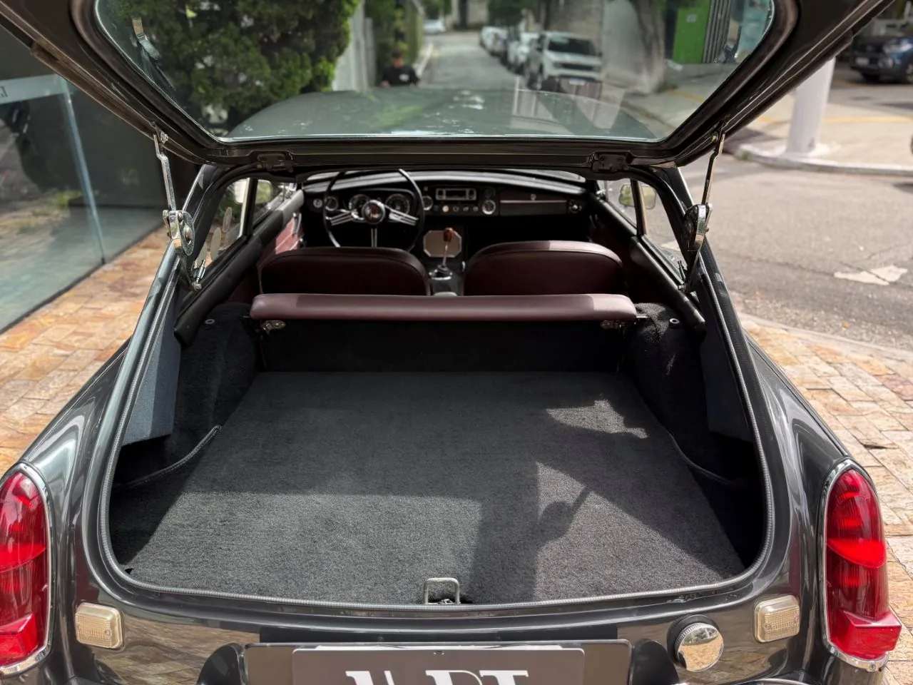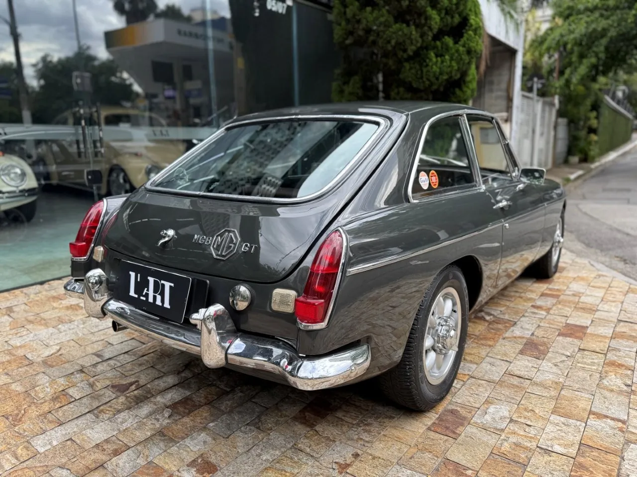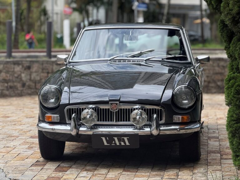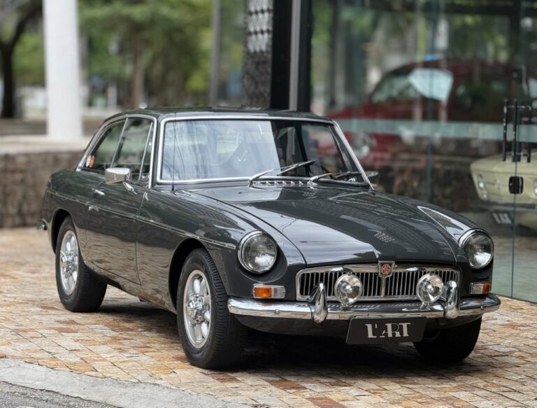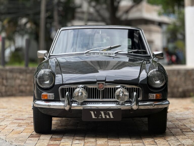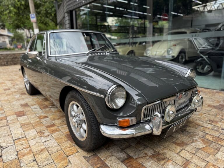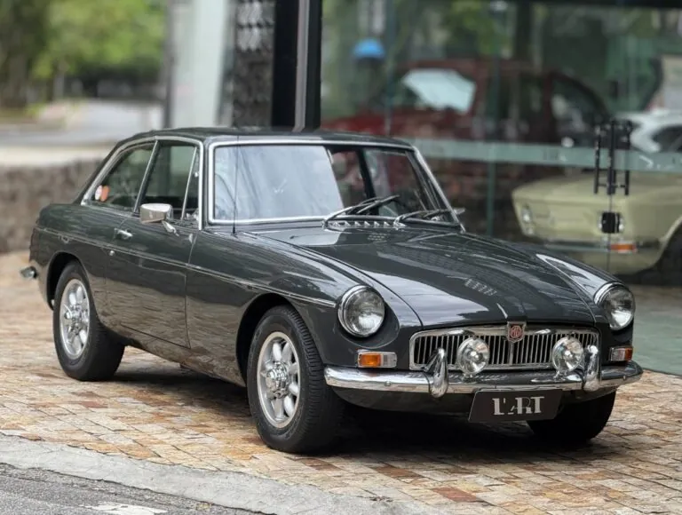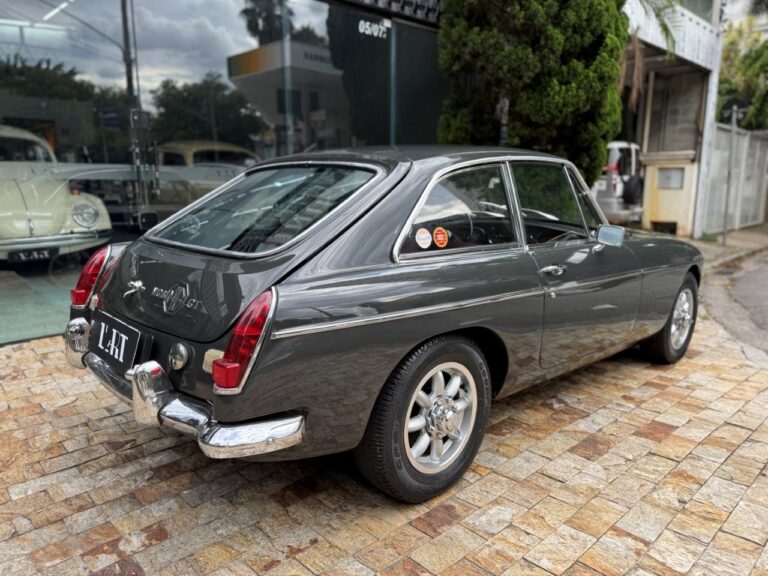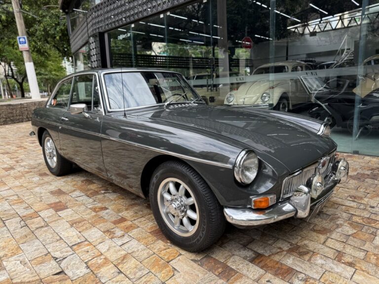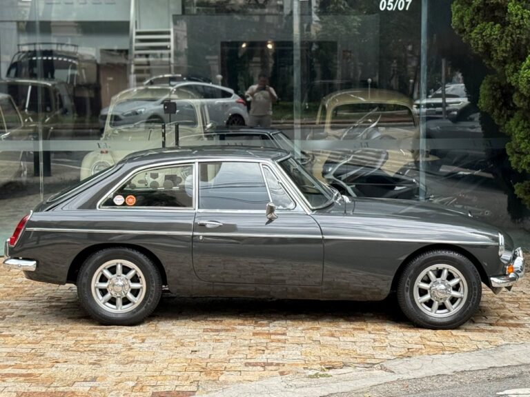 Na cor cinza rato com interior bordô, exclusivo fastback inglês 2+2 de baixa produção, com desenho assinado pela Pininfarina. Este exemplar pertenceu ao ex-presidente do MG Clube do Brasil e proprietário da R&E Restaurações, responsável por uma restauração completa realizada há muitos anos, abrangendo pintura, tapeçaria, mecânica, suspensão, câmbio, embreagem e parte elétrica, já com alternador no lugar do dínamo original. Equipado com câmbio manual de 4 marchas com overdrive Laycock curto, luz de mapa, instrumentação Smiths completa com conta-giros e indicadores de combustível, pressão do óleo e temperatura da água, motor 1.8 com válvulas no cabeçote entregando 95 cv, rodas de liga leve inglesas de oito gomos, faróis e milhas Lucas, adesivos no vidro lateral e placa preta do ano com final 7. Um MGB GT extremamente correto, bem acertado e com histórico relevante, reunindo elegância, dirigibilidade e autenticidade.